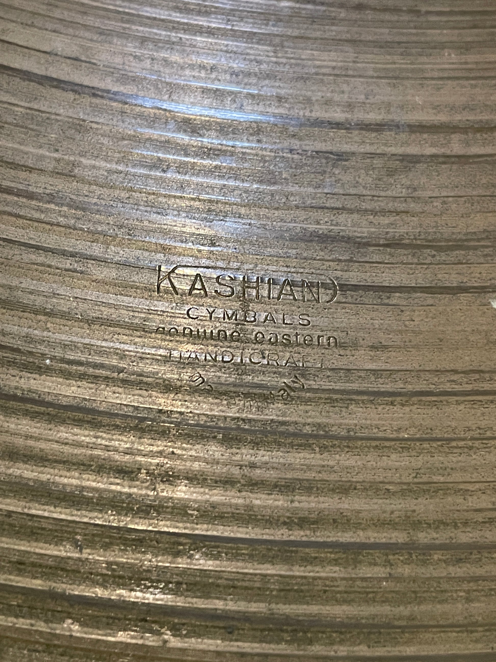For your kind consideration is this vintage 22" Kashian ride cymbal. It's in good condition and has a lovely, dark tone. No cracks, bends, or keyhole, a few flea bites and some edge roughness. Weighs in at 2946 grams. Enjoy!