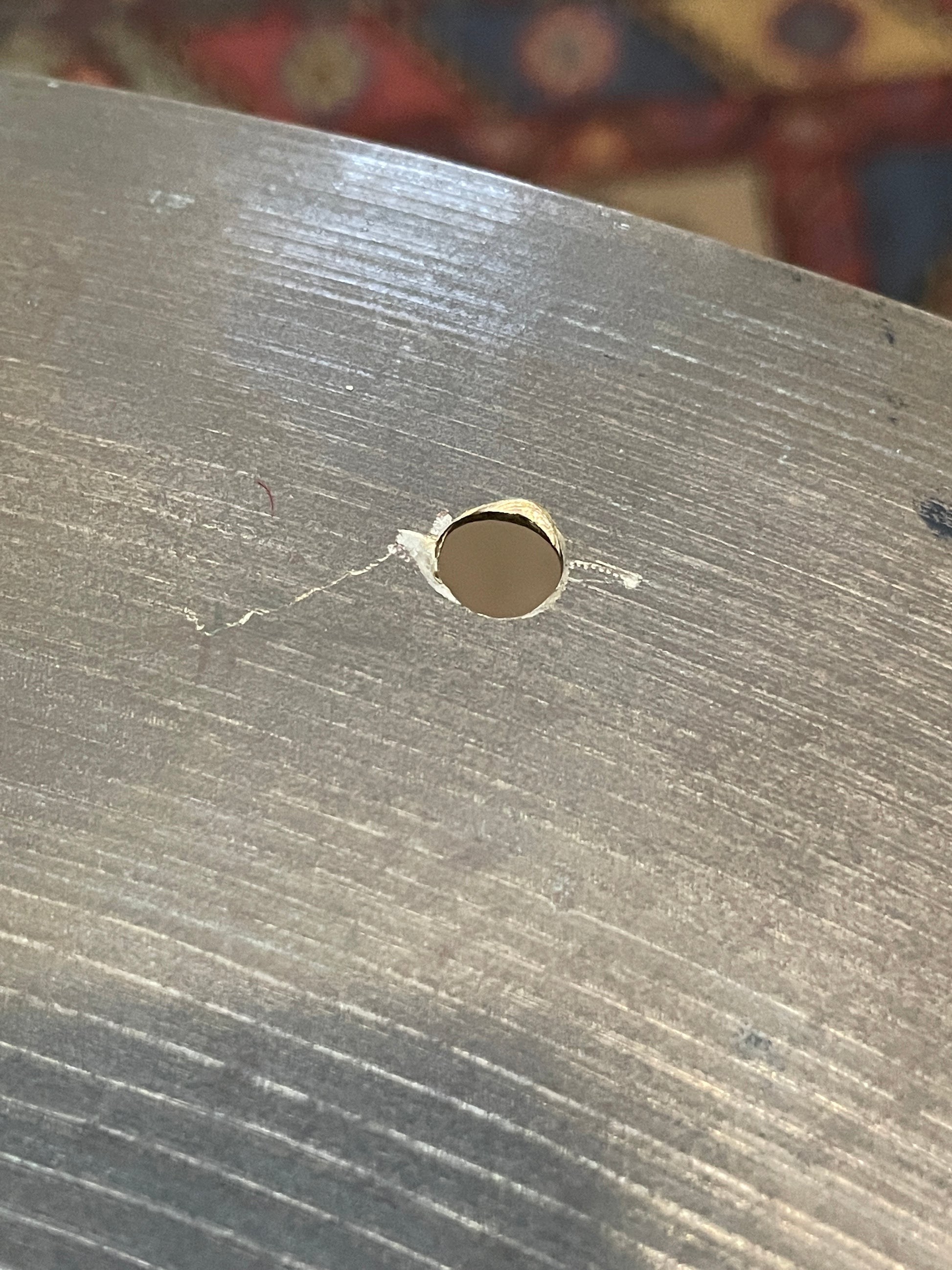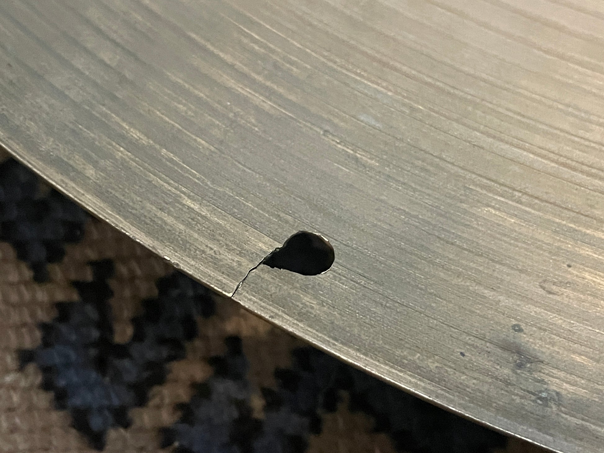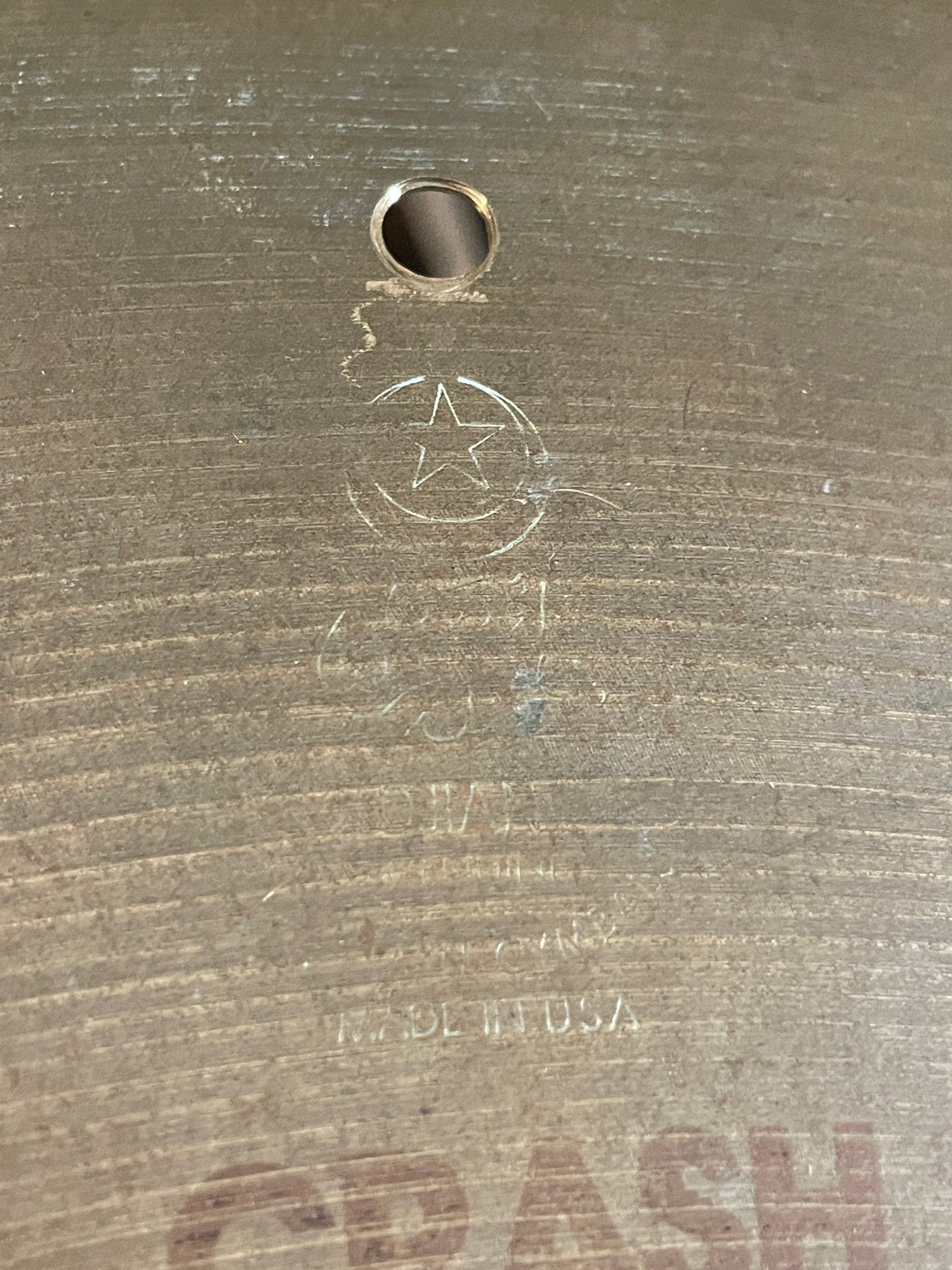 For your kind consideration is this vintage 22" Zildjian K Crash Ride cymbal. This is an EAK cymbal and would be worth a lot more if there weren't rivet holes added, hence the lower price. Absolutely fantastic sounding dark cymbal with loads of character. No bends, flea bites, or keyhole, one small crack radiating outward from one of the rivet holes. Weighs in at 2764 grams. Enjoy!