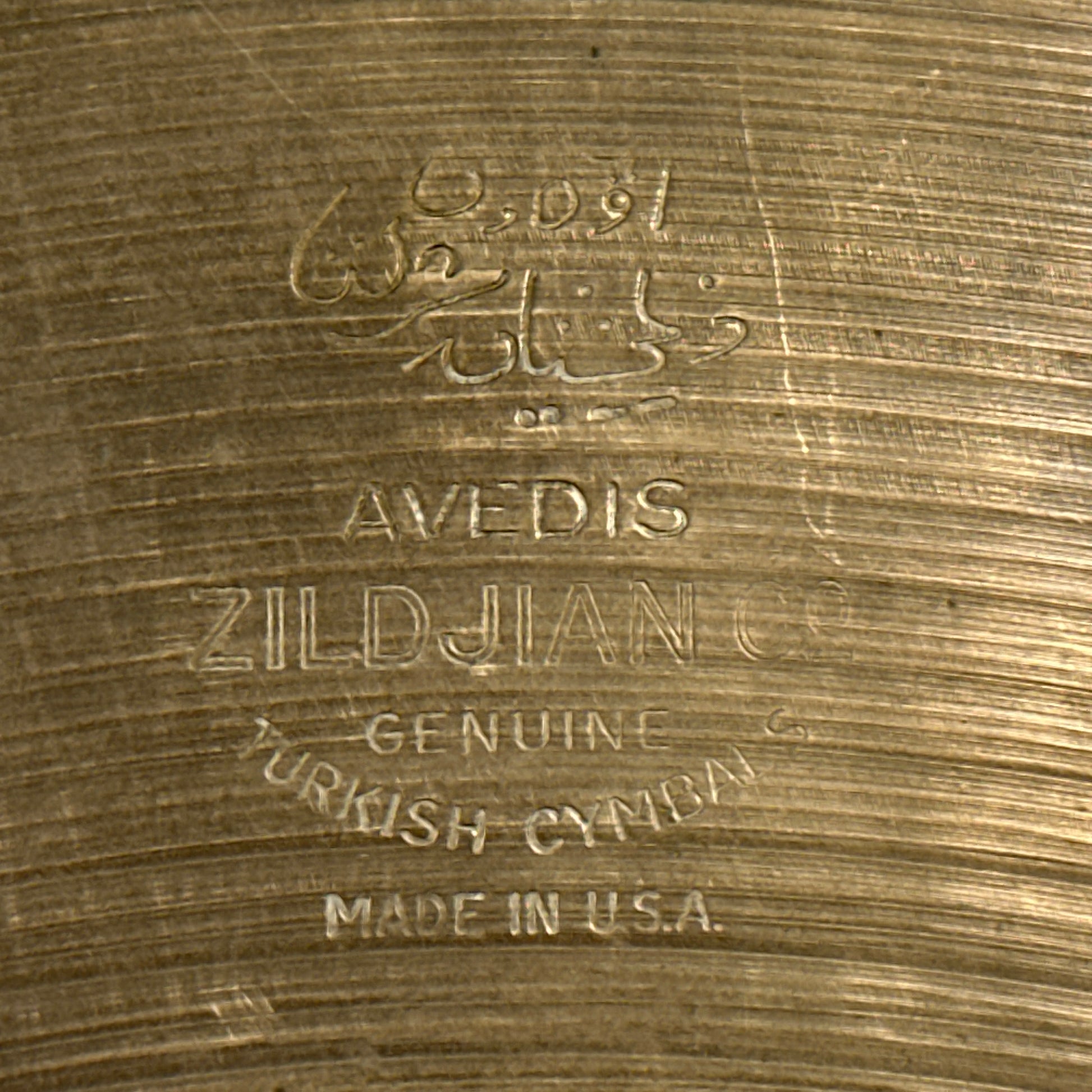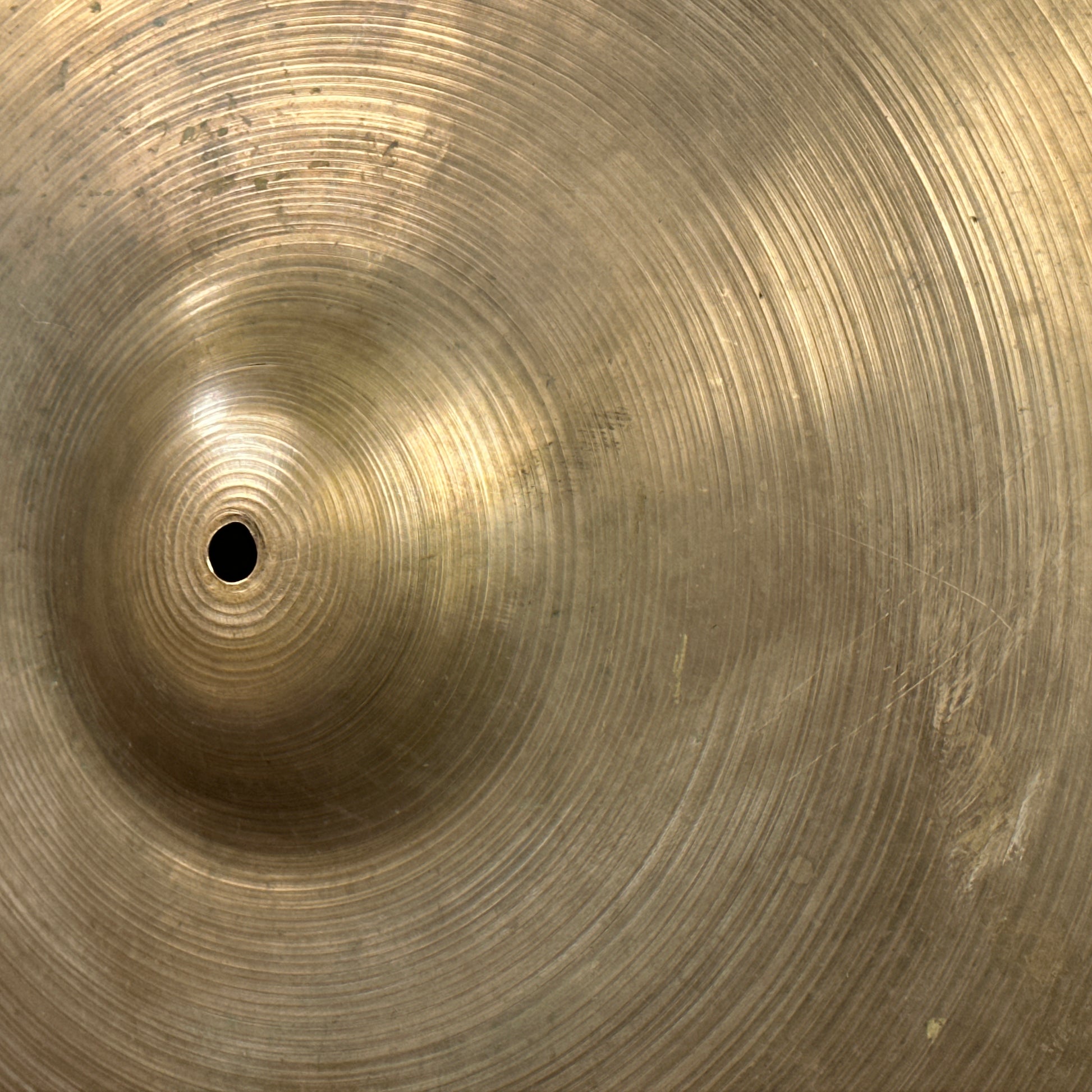 For your viewing and listening pleasure is this beautiful rare vintage 24" Zildjian A ride cymbal from 1954-56. It's in great condition with a strong patina and all of the beautiful lathing and hammering you'd expect from a cymbal from Zildjian's golden era. This great sounding cymbal has a buttery woody stick definition, and a gorgeous wash that's very controllable. The bell is extremely musical, and it crashes with a wonderfully full and ominous tone. It's been well cared for, and still retains the "24" Concert Band" ink stamp still visible on the underside. The thin edges have some typical roughness and a couple minuscule flea bites that can be felt more than seen. No cracks or bends, and a near perfect hole. It weighs in at an extremely useable and light 3372 grams. Enjoy!