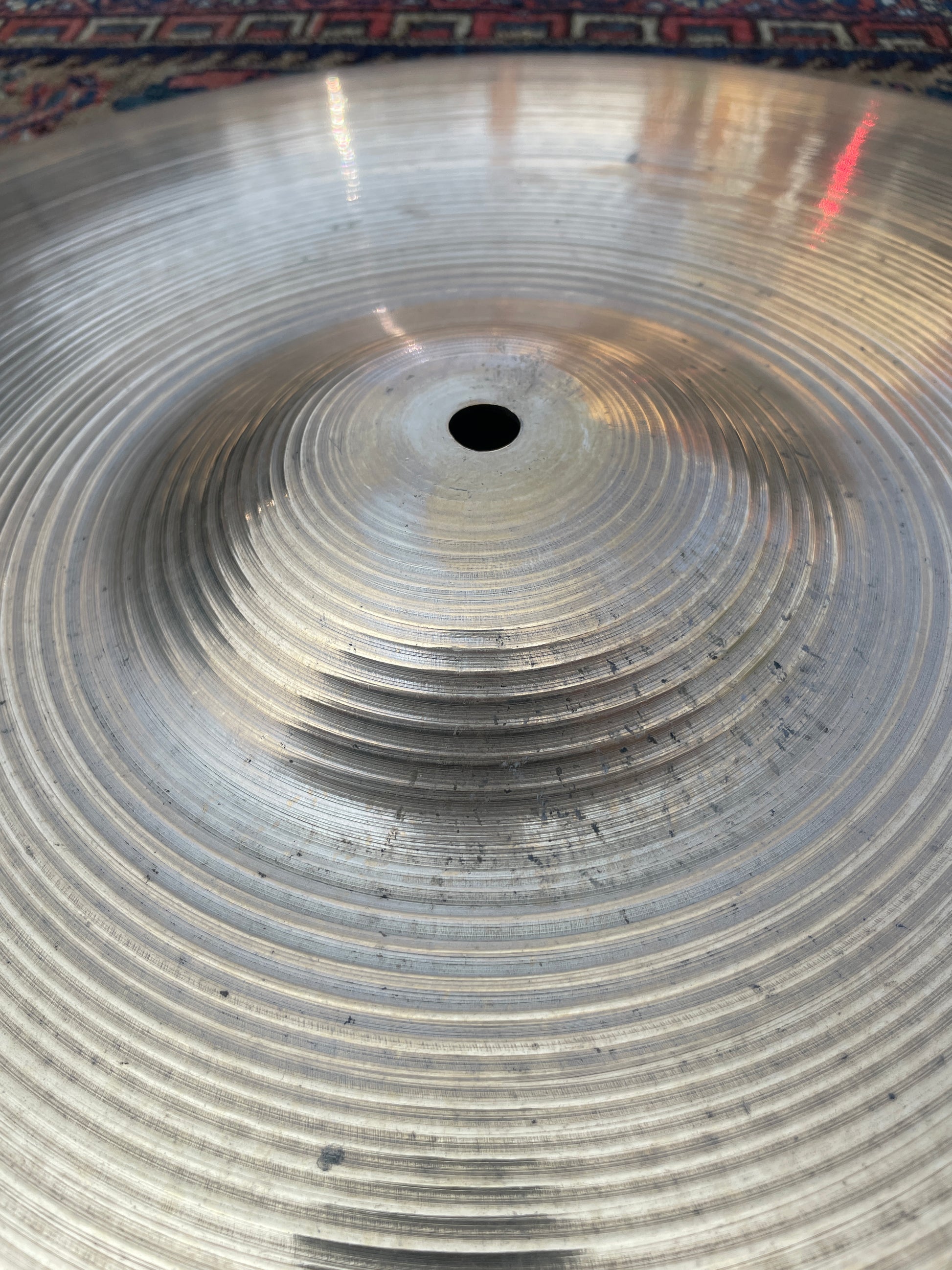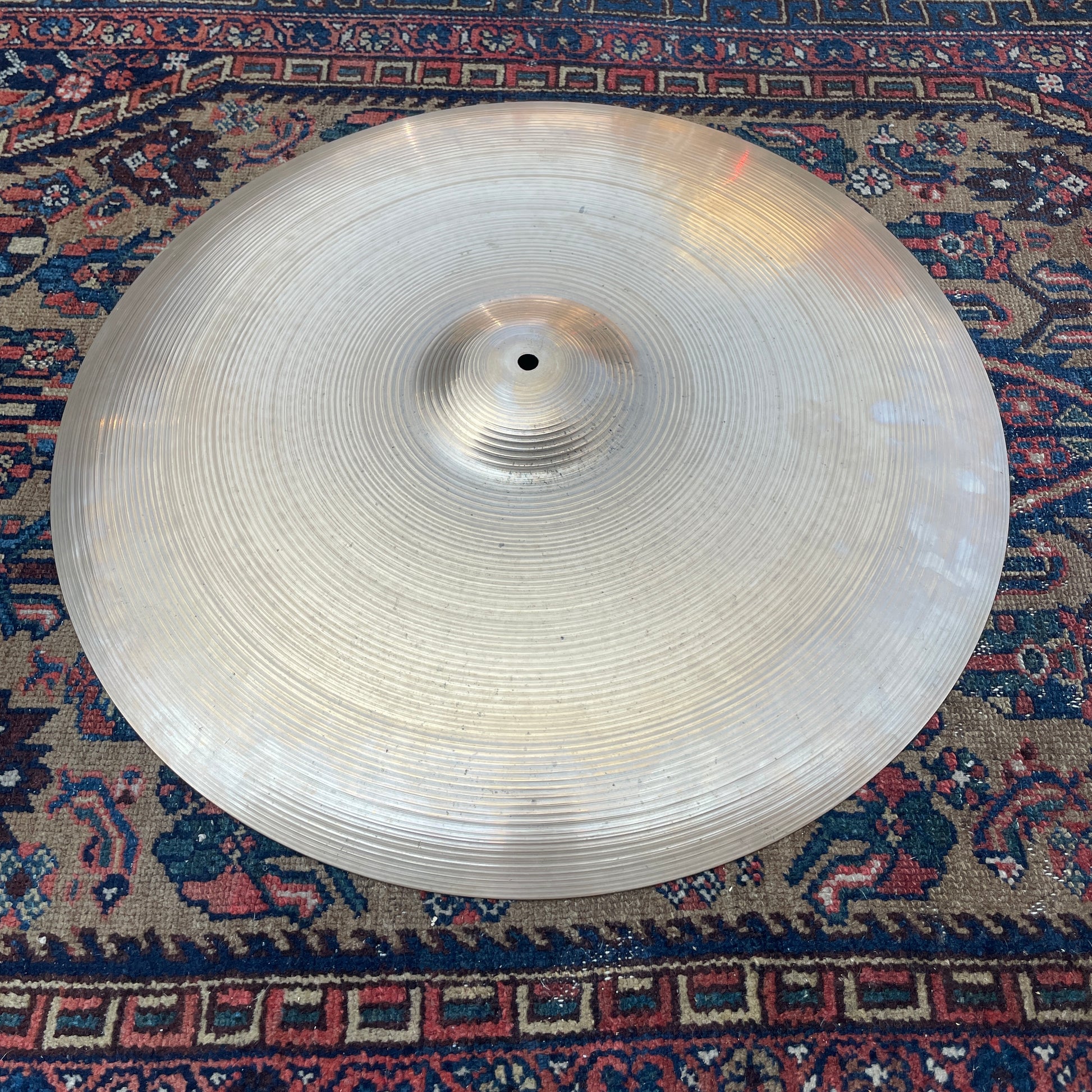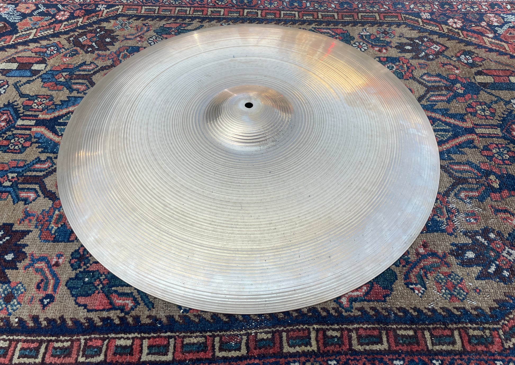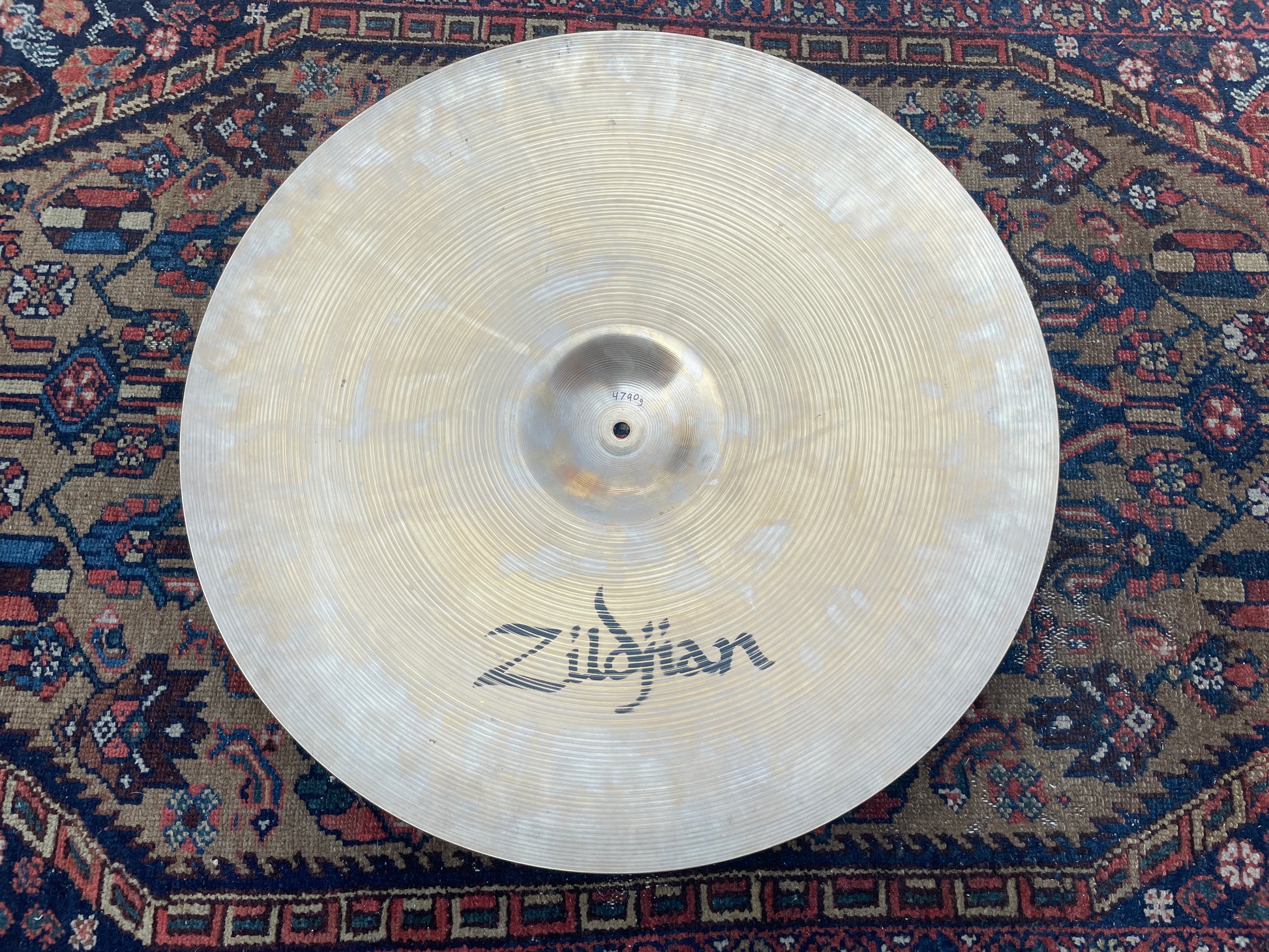 For your kind consideration is this vintage 24" Zildjian A Ride cymbal from the 80s. It's in excellent condition with the ink stamp still present on the underside and sounds awesome. This heavy weight cymbal has a bold, authoritative tone that cuts beautifully through the mix. No cracks, bends, flea bites, and a near perfect hole. Weighs in at 4790 grams. Enjoy!
