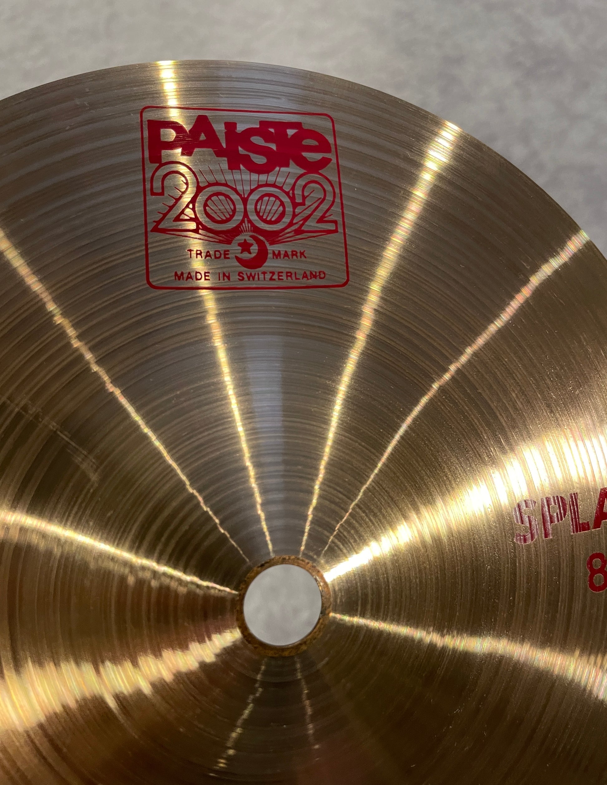For your kind consideration is this 8" Paiste 2002 Splash cymbal in nearly new condition. Warm, full, bright. Fairly narrow range, clean mix. Responsive, explosive, full sounding splash. The definitive, classic rock splash sound. Weighs in at 132 grams. Enjoy!