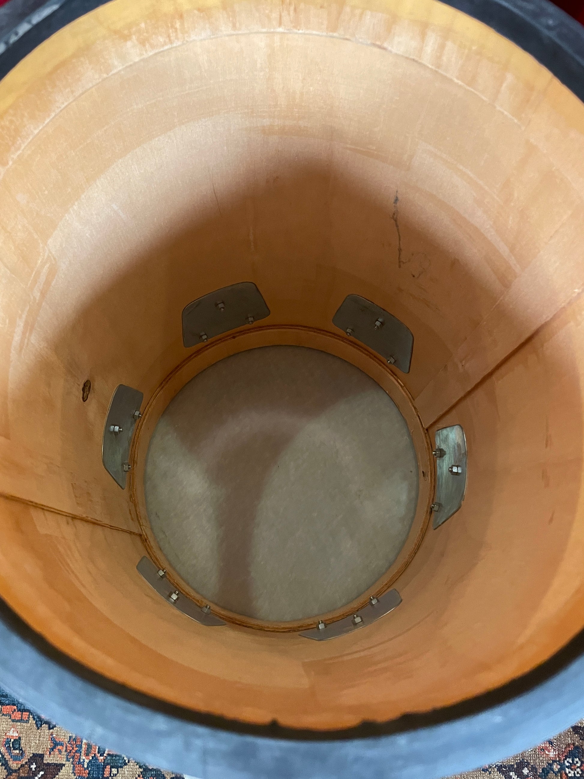For your kind consideration is this 12" Bauer Percussion rebolo. This Brazilian samba & pagode ensemble drum is in very good condition with a few scuffs as shown and the sticker badge has been removed. The bottom of the shell is out of round as shown in the last photos which does not affect the sound. It has the original head, rim, and lugs and sounds fantastic with a low, deep tone. It has a sling attached and is ready to party. Enjoy!