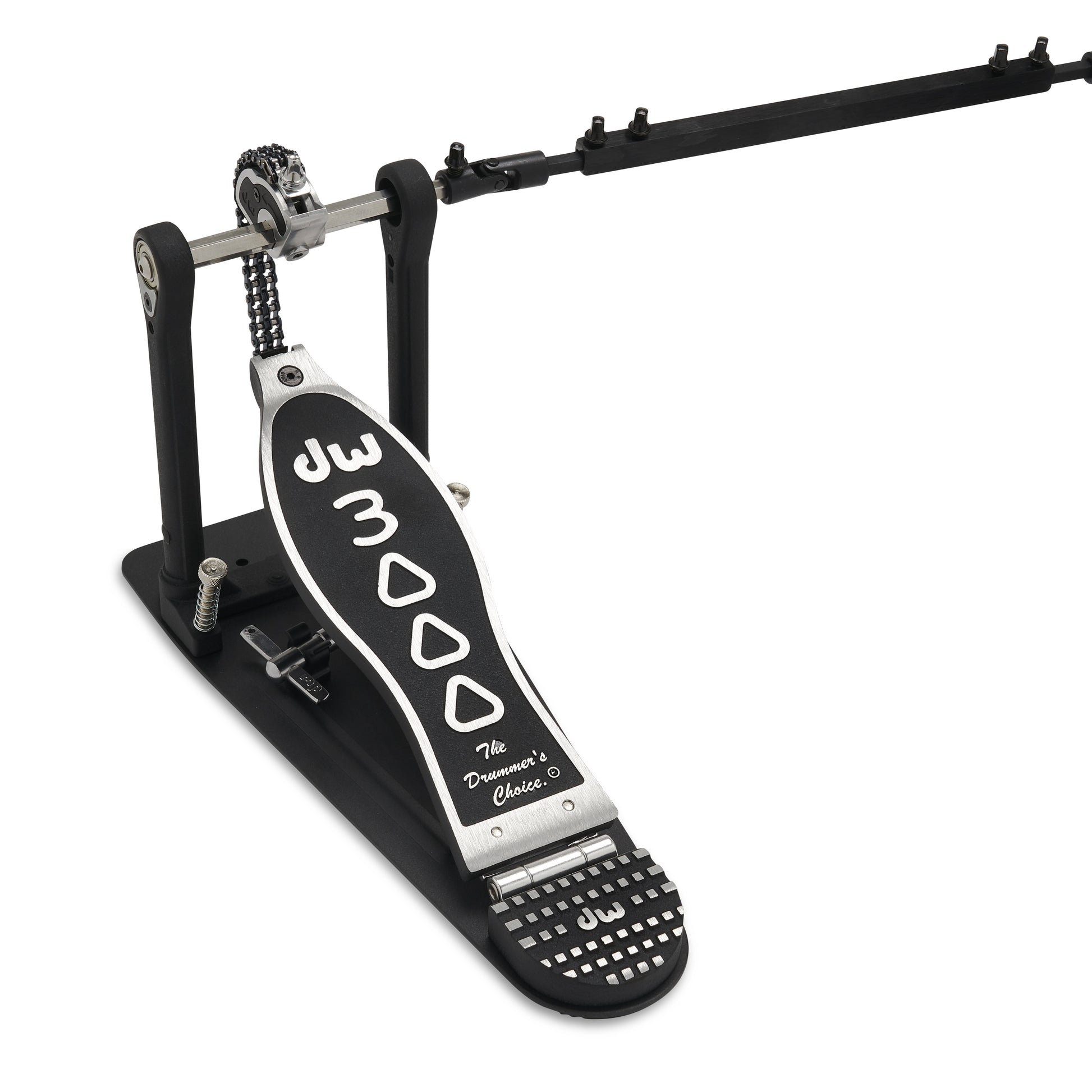 For over 50 years, DW has been the worldwide leader in hardware innovation. Every DW product launch has been followed with tireless innovation and the 3000 Series is no exception. The 3000 Series double bass pedal offers innovative features and enhanced player functionality making it a smart, versatile choice for drummers of all skill levels and playing styles. Enjoy more features in the 3000 Series pedals than ever before. This all-metal, dual-chain double pedal has been updated with an Accelerator cam, adjustable footboard angle, and swivel toe clamp. The steel base plate also now features an anti-skid rubber mat for greater stability.