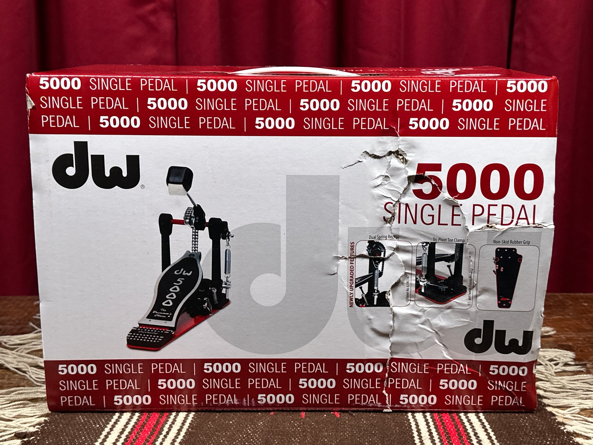 For your kind consideration is this brand new DW 5000 Accelerator bass drum pedal. The DW 5000AD4 single pedal is now fitted with more features and upgrades than ever before. It still uses the lightweight, aluminum Delta ball-bearing hinge and dual-bearing spring rocker, and now sports the new Tri-Pivot toe clamp making this legendary pedal even better. This particular pedal was on display at PASIC. While the pedal is in new condition, the box shows some damage. Enjoy!