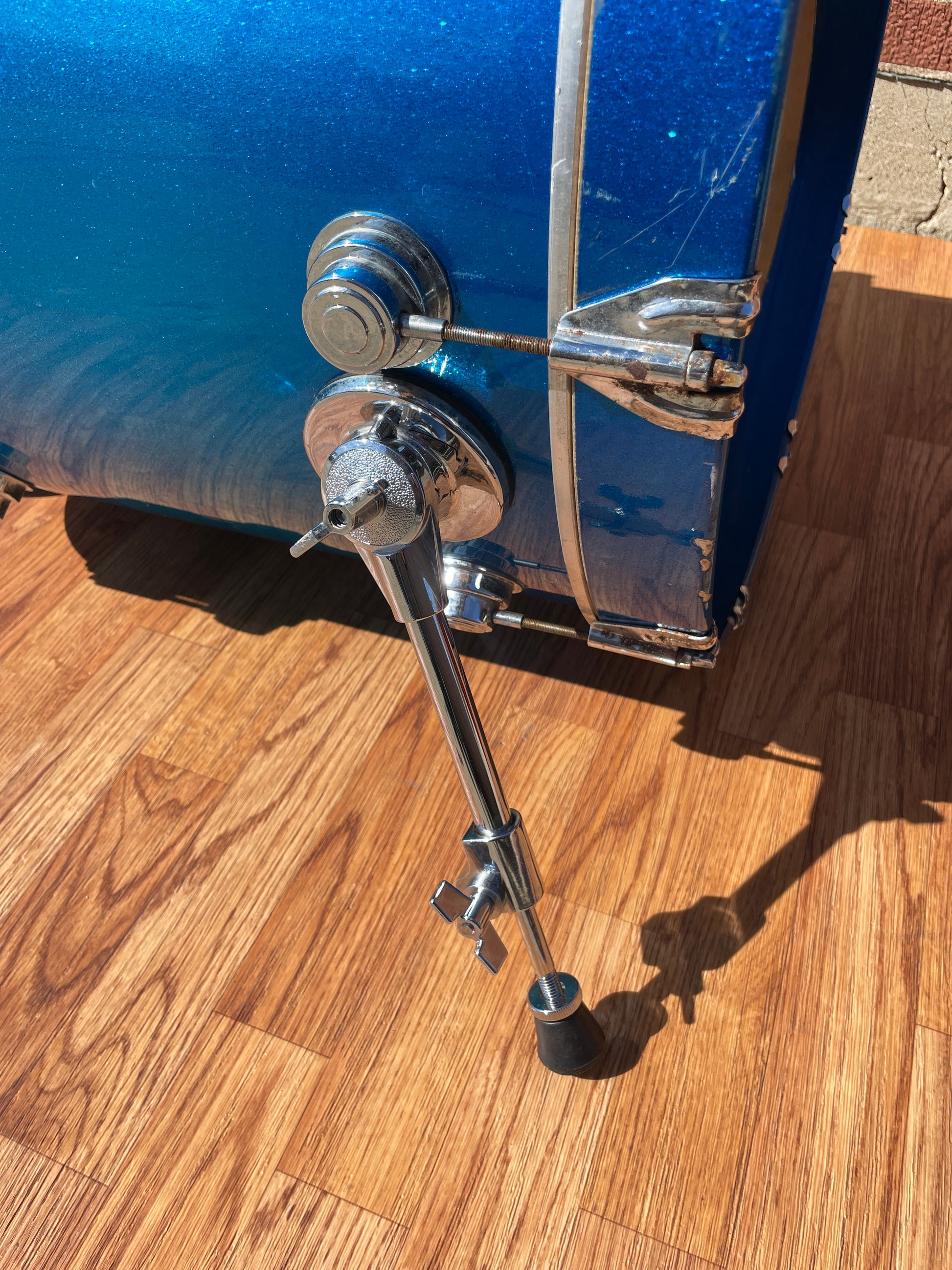 For your kind consideration is this Drum Workshop 18x22 bass drum in a Blue Sparkle Fade. It's in good condition and displays beautifully aside from one small indent, shown in last picture. Most importantly it tunes up with the greatest of ease and sounds fantastic. Enjoy!
