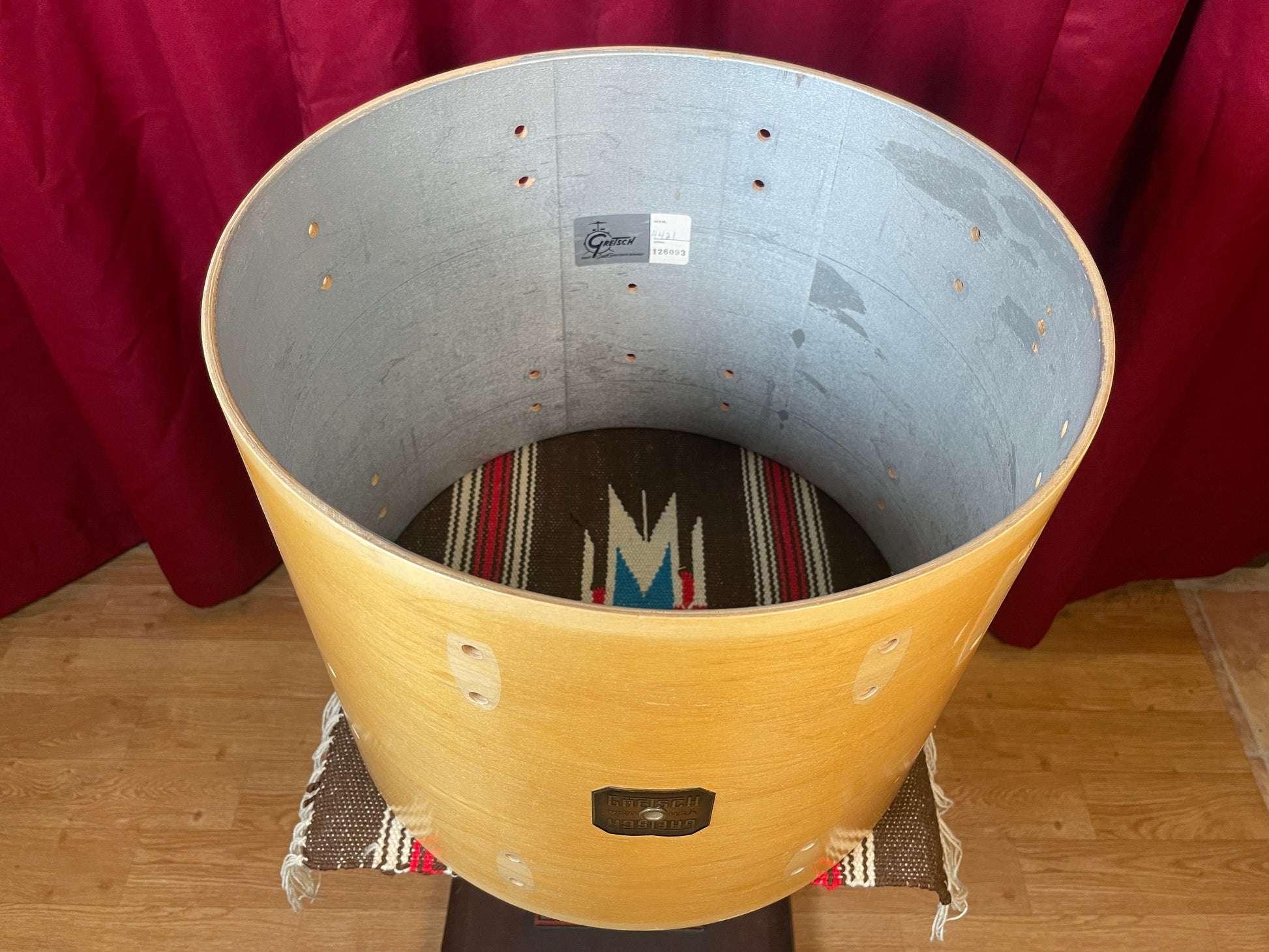 Vintage Gretsch 12x15 Floor Tom Drum Shell Natural Stop Sign Badge Era