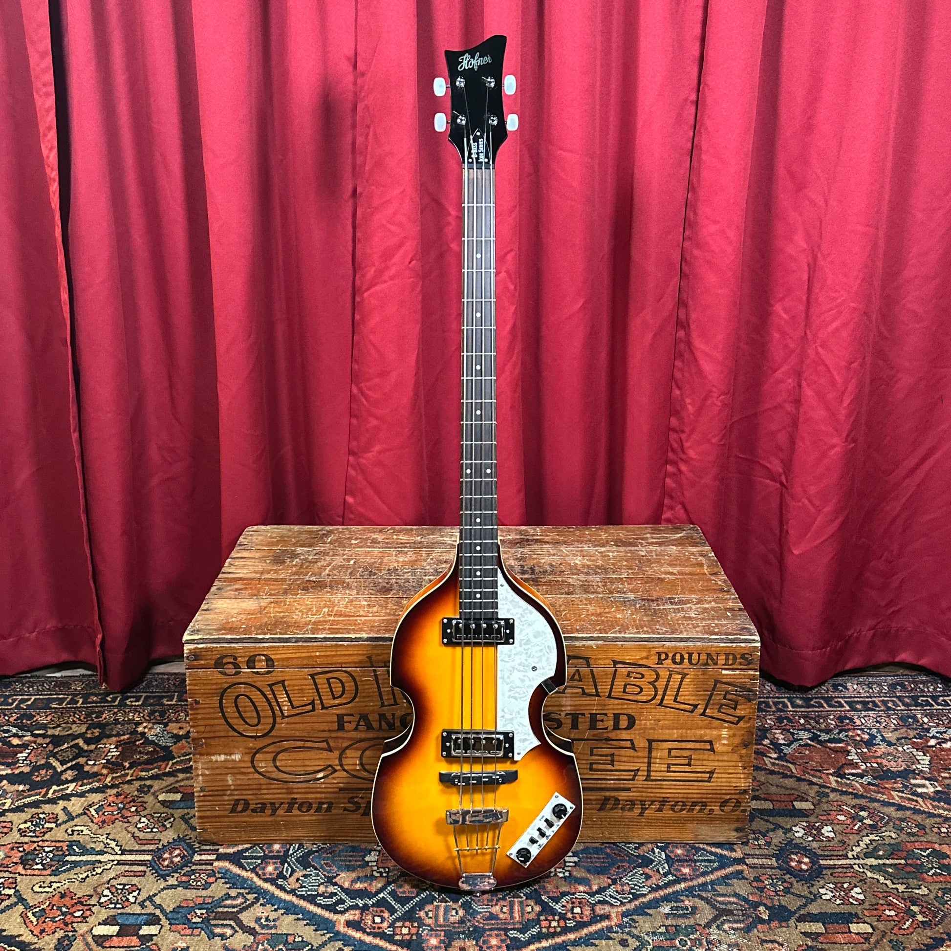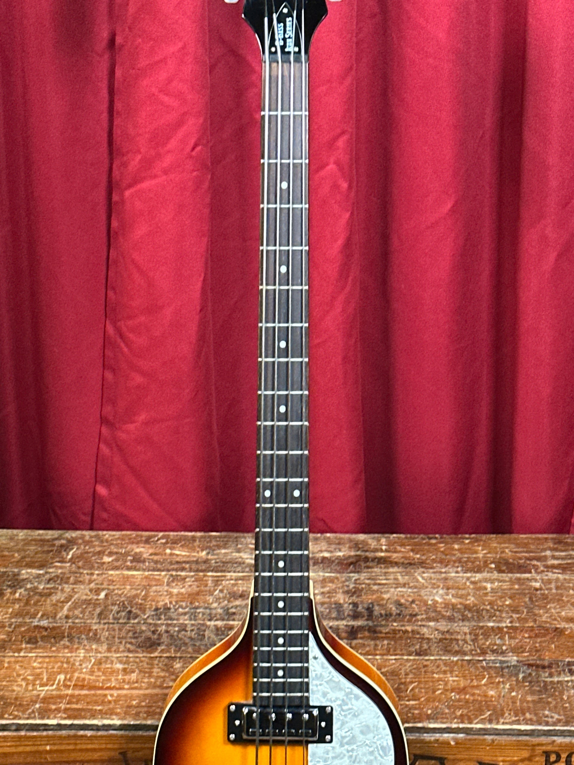For your kind consideration is this Hofner B-Bass Icon Series short scale violin bass in sunburst finish. Modeled after the legendary 500/1 "Violin" bass made famous by Paul McCartney, this lightweight 30" short-scale bass features a fully hollow body with a spruce top and flame maple back and sides, paired with a smooth maple neck and rosewood fingerboard. Dual Hofner mini humbuckers provide rich, mellow tones, while the traditional control panel offers volume and tone shaping options with the Rhythm/Solo switch, and Bass and Treble on/off switches. Comes with the original hardshell case which was sold separately. Setup with a comfy low action measuring .07" at the 12th fret. Weighs in at 5 lbs 7 oz. Enjoy!