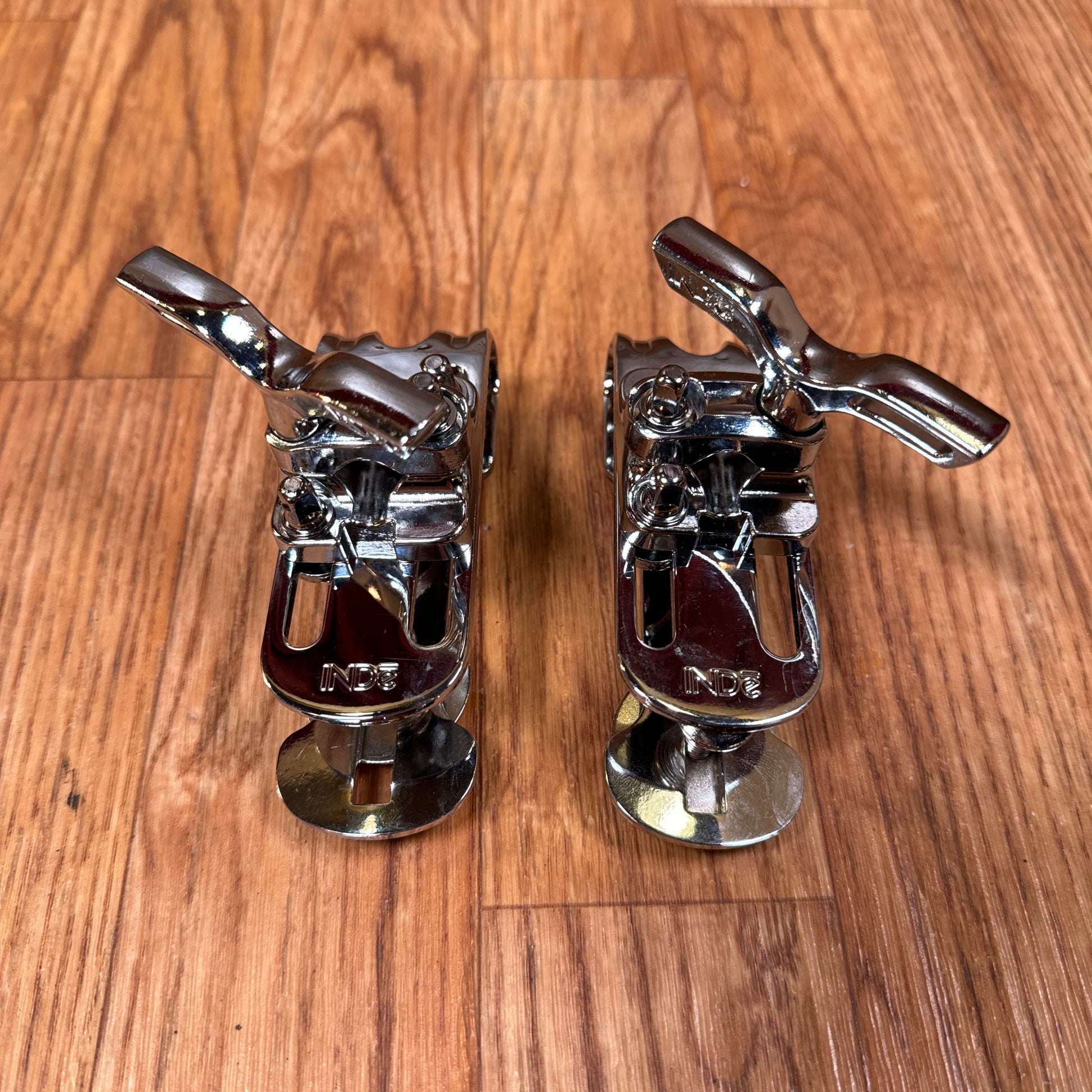 For your kind consideration is this INDe Drum Labs Ultralight Spurs Kit. This set contains the BR2XL brackets which adjust from around 1.5" to 3.2" on center and 10" Ultralight aluminum spurs with memory locks. This is in nearly new condition and has not been previously installed. This bass drum upgrade kit replaces your existing spurs with INDe's Patented suspension mounts and gull wing style spurs with no drilling required. Why spend $150 on a new INDe Drum Labs Ultralight Spurs Kit when you can get this mint condition one for a fraction of the price. Enjoy!