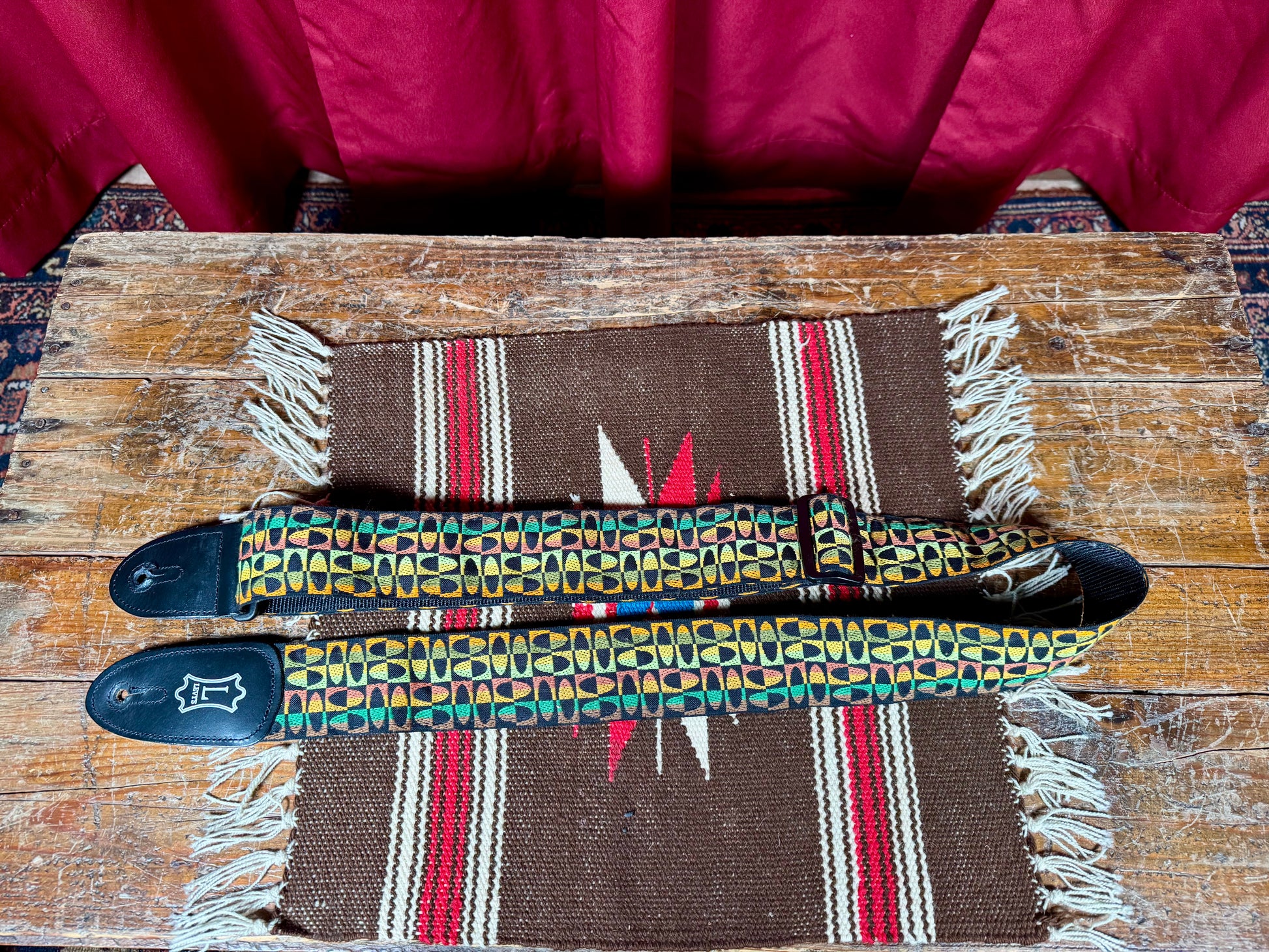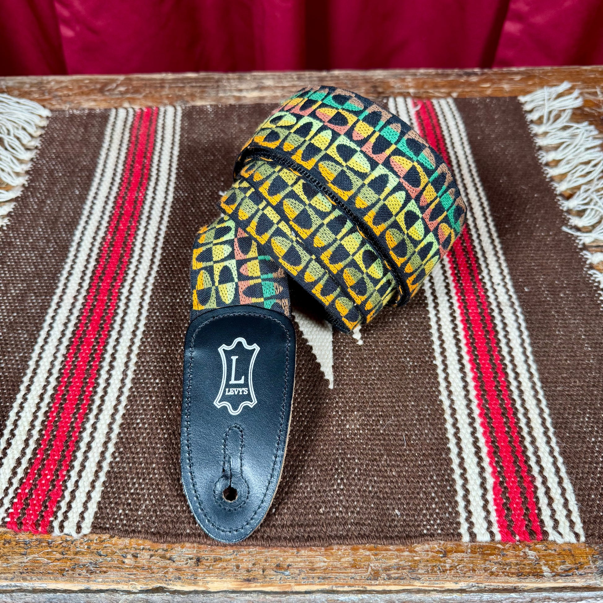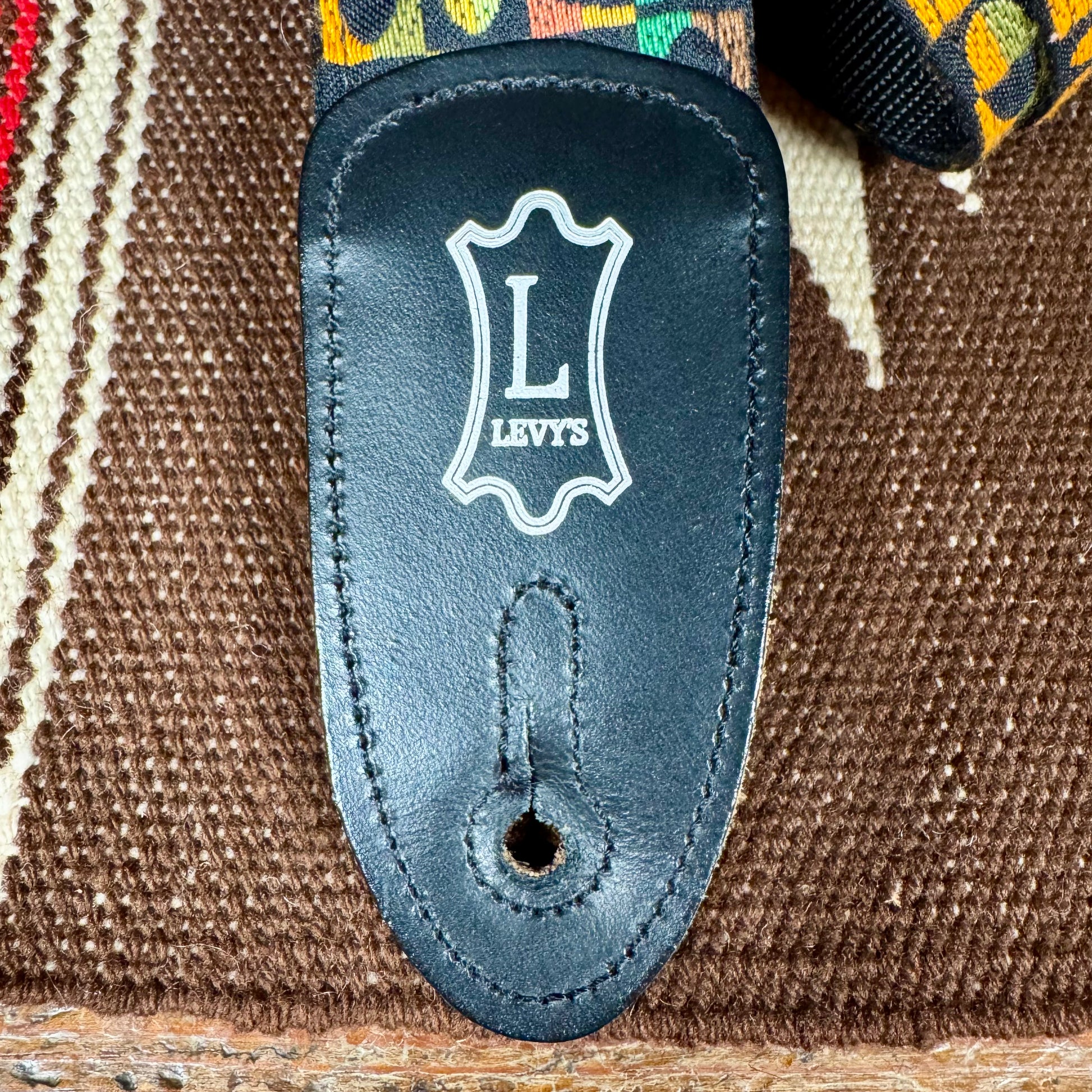 For your kind consideration is this very lightly used and well cared for Levy's guitar strap leather guitar strap. Very fun design. No snags, no marks, and the ends are in great condition. Maximum length is approximately 58". Enjoy!
