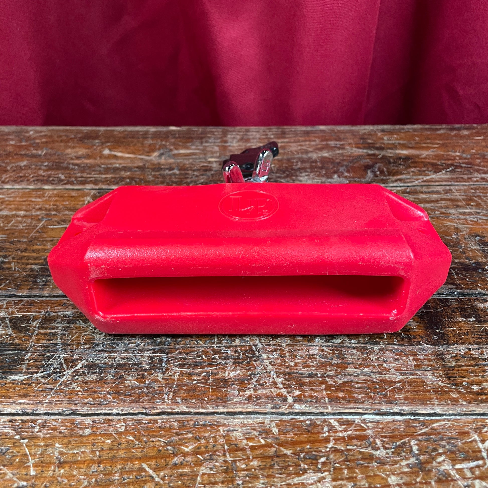 For your kind consideration is this LP Medium Jam Block. The block and mounting bracket are in excellent condition with virtually no play wear. This red LP Jam Block produces a reliable medium-pitched sound. Crafted from the indestructible material Jenigor, LP Jam Blocks produce rich, cutting tone and are built to last a lifetime. A heavy duty mounting bracket that fits 3/8" diameter rods is included. Why pay $39 for a new LP Jam Block when you could have this one for a fraction of the price? Enjoy!