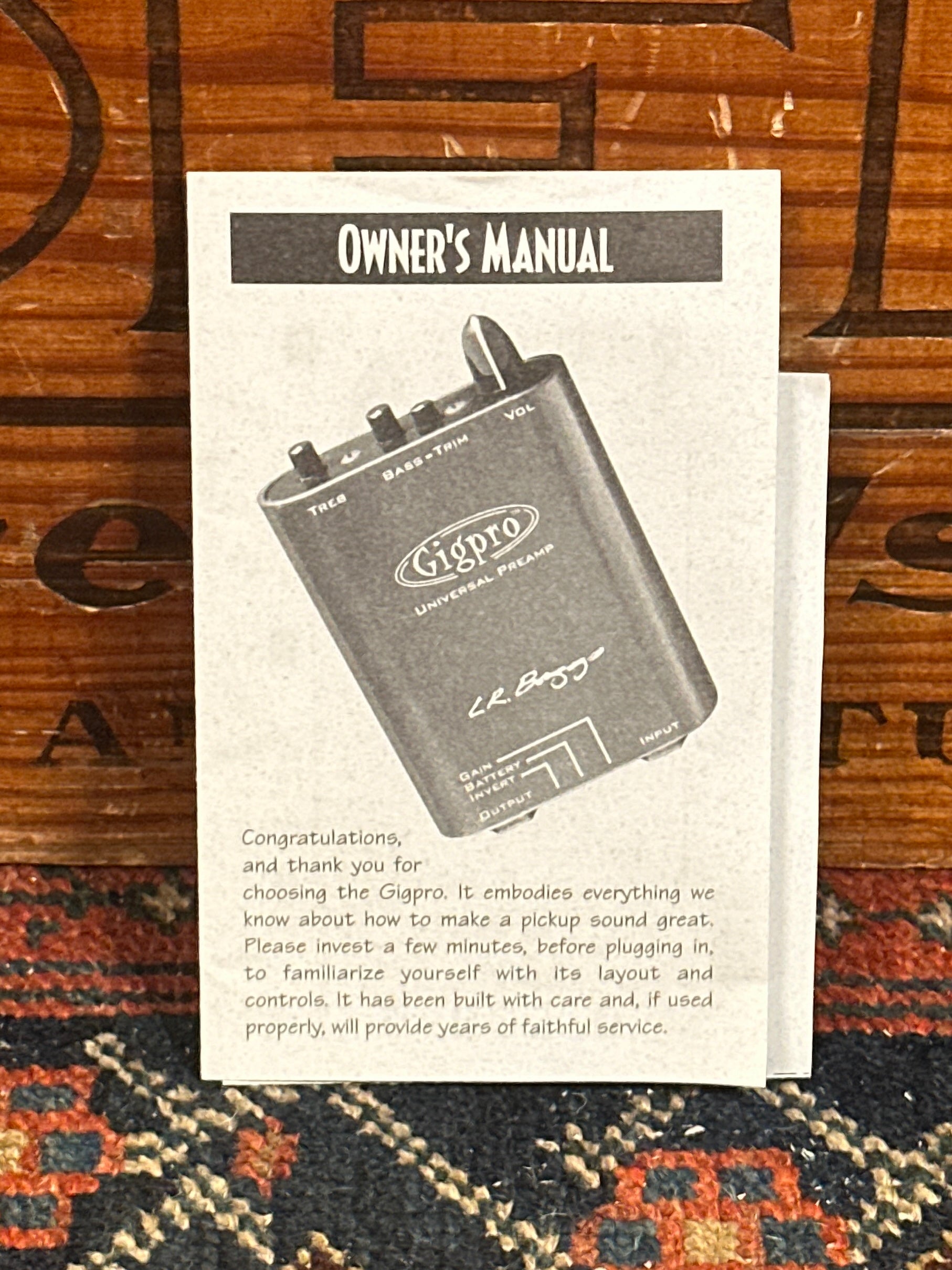 For your kind consideration is this LR Baggs Gigpro preamp. It's in excellent condition with near zero signs of use. This compact preamp clips clips to your belt or strap and works with almost any type of pickup or mini-mic eliminating the need for active circuitry. It uses a Class A input with adjustable gain and quasi-passive EQ modeled after the Para Acoustic DI. The Gigpro will make any pickup sound better and put fingertip control of your sound right at your side. The original manual is included. Enjoy!