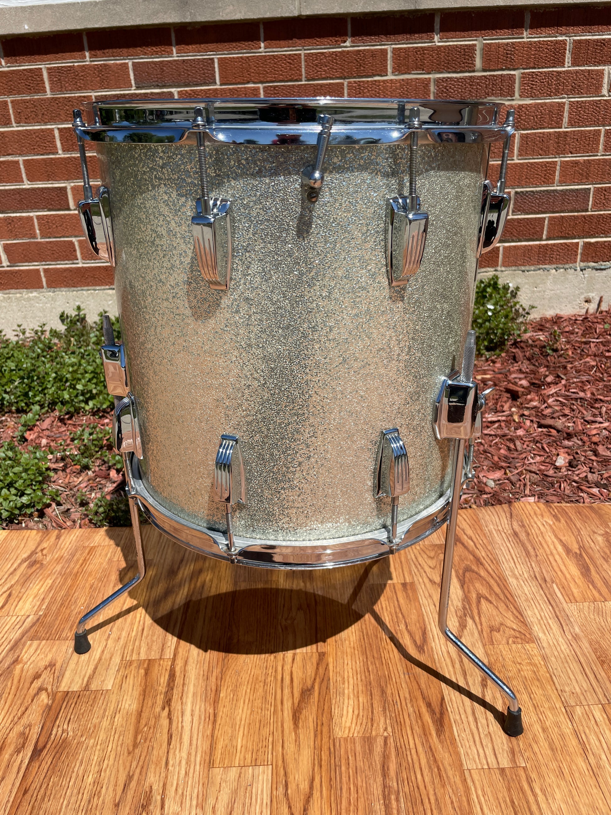 Early 1960s Ludwig 14x14 Floor Tom Drum Silver Sparkle for Down Beat