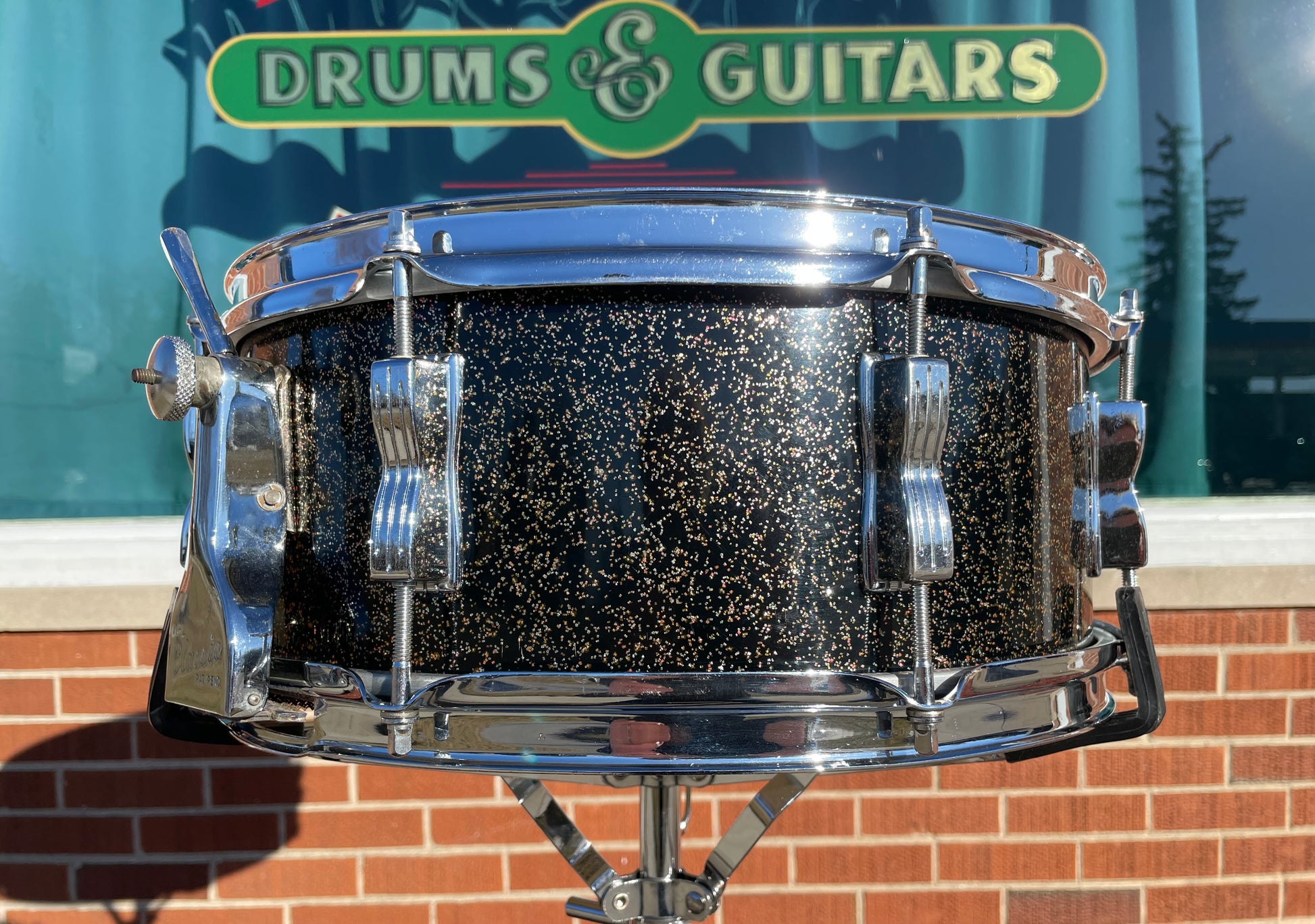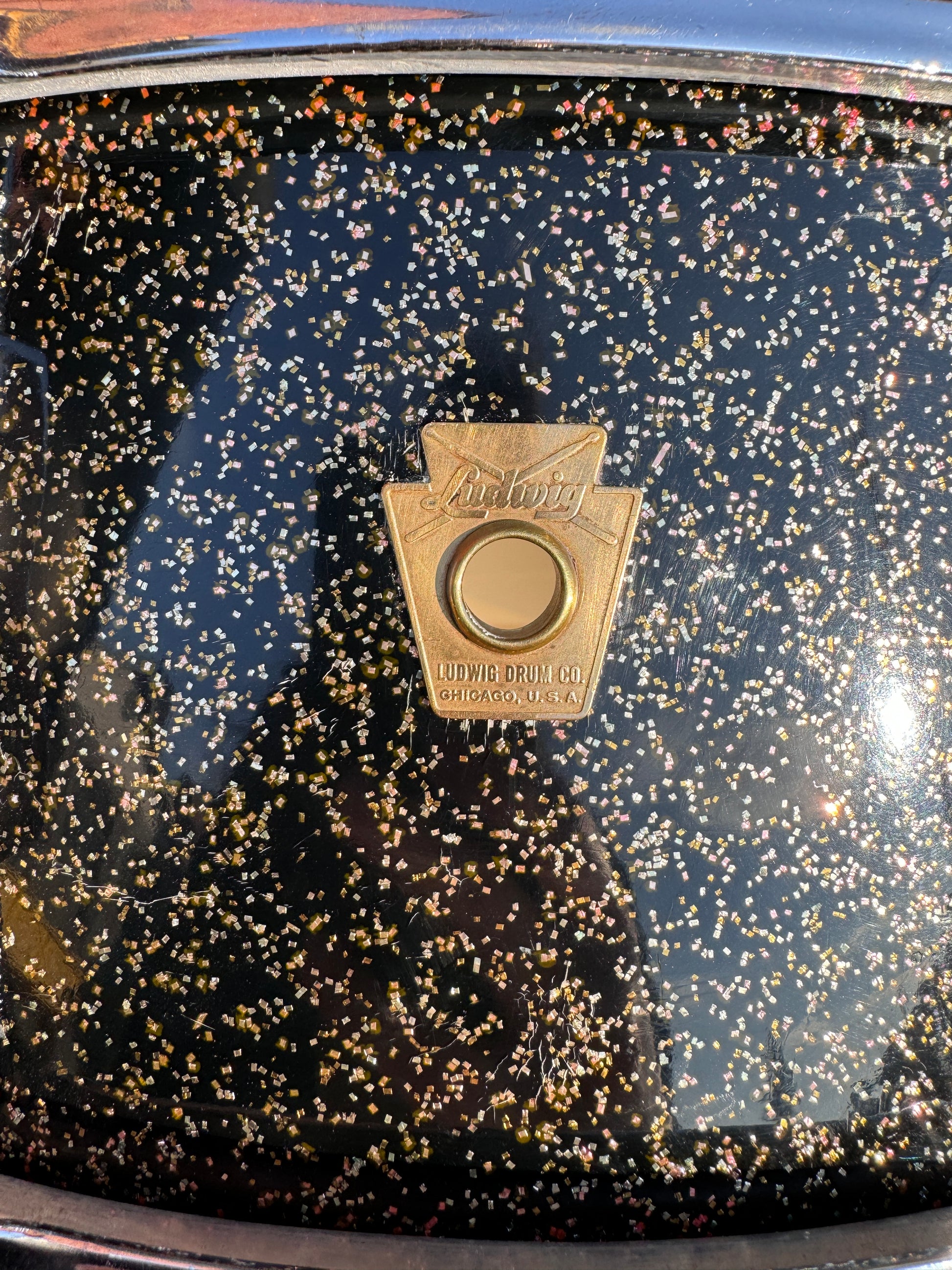 Early 1960s Ludwig 5.5x14 No. 900P Super Classic Snare Drum Black Galaxy Sparkle Pre-Serial COB