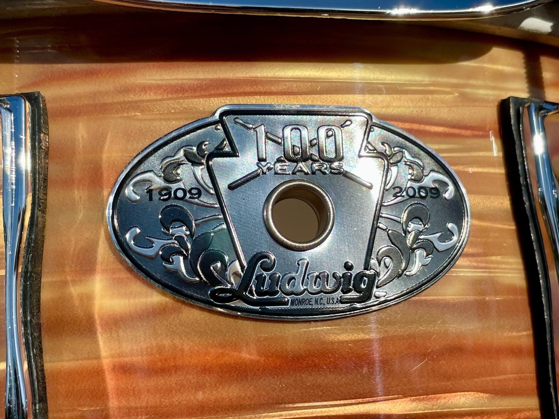 For your supreme viewing pleasure is this NOS (New Old Stock) limited edition Ludwig Classic Maple 5x14 100th Anniversary "1964 Jazz Festival Reissue" snare drum in "Pre-Aged Pink Oyster Pearl" from 2009. It is mint in box, and has never been played or stored outside of it's original packaging. This model was a limited Guitar Center exclusive release with only 250 made, and is #240. This was their nod to the 5x14, 8-lug snares of the 1960s that helped make the Ludwig name legendary. The Classic Maple 7-ply all-maple shell features the clarity and warmth players have come to expect from maple drums, plus the projection and musicality that has maintained Ludwig's reputation for snare drum innovation and excellence. It's sporting a P86 Millennium strainer, triple flanged hoops, and a special 100th Anniversary badge. If you've been wanting to get one of these collector snares, there are none finer than this example, much less with the original box, paperwork, and key. Enjoy!