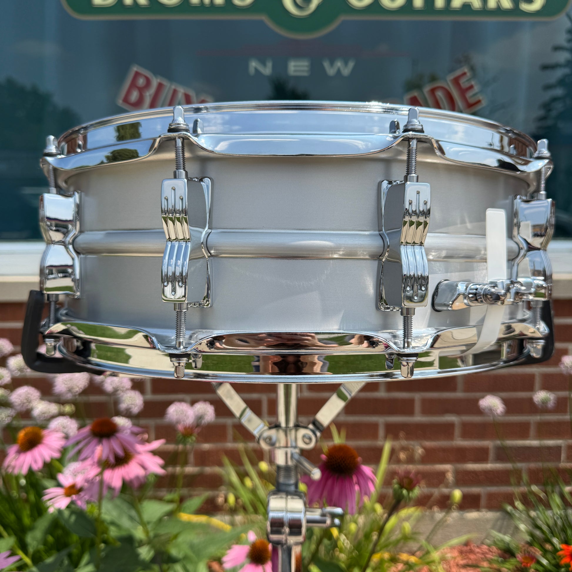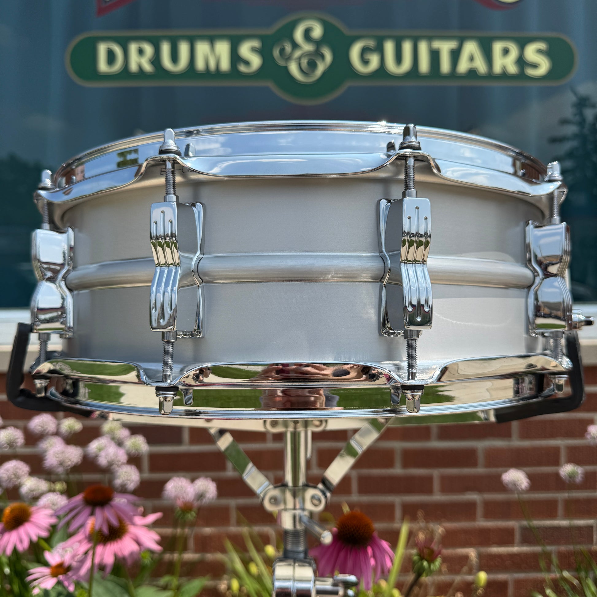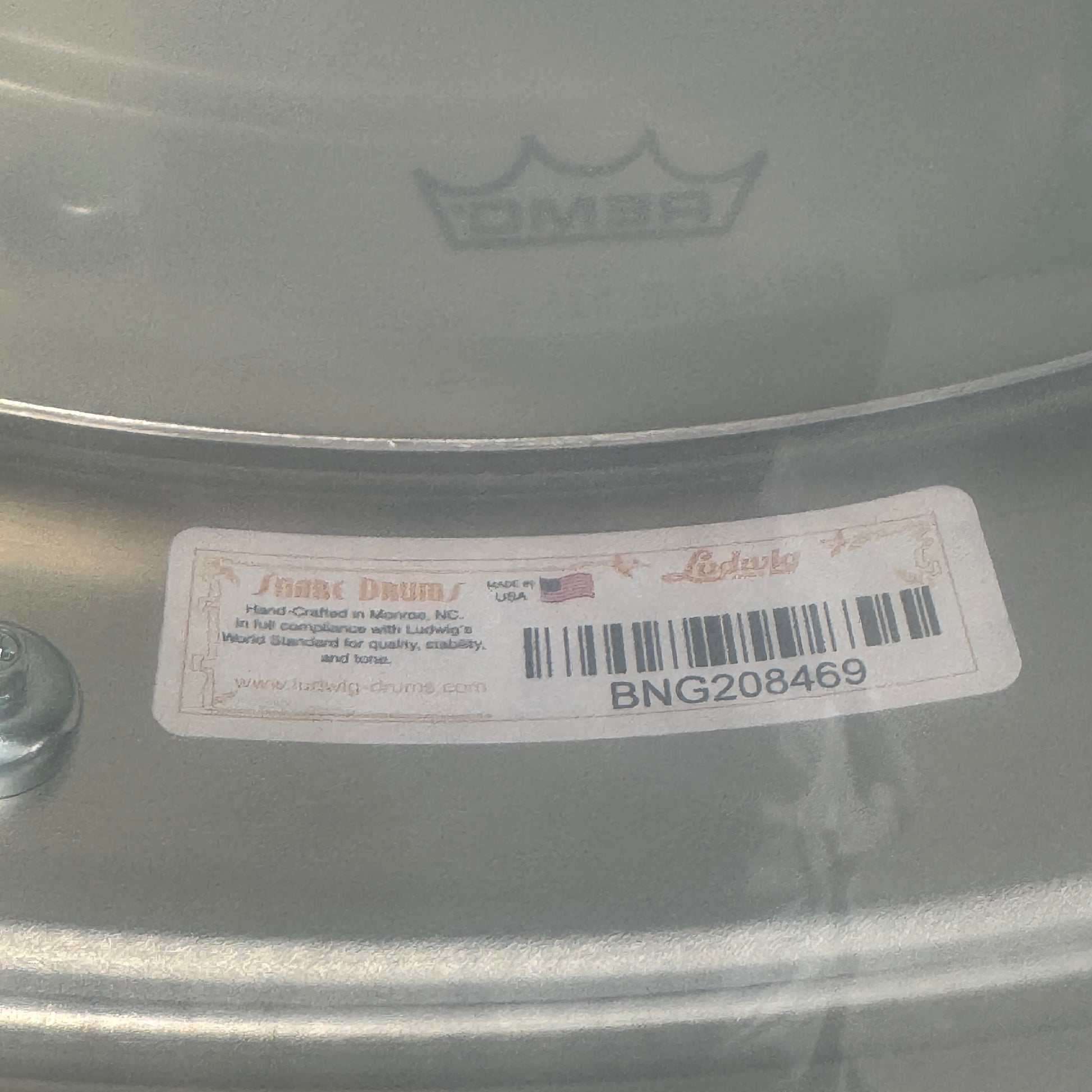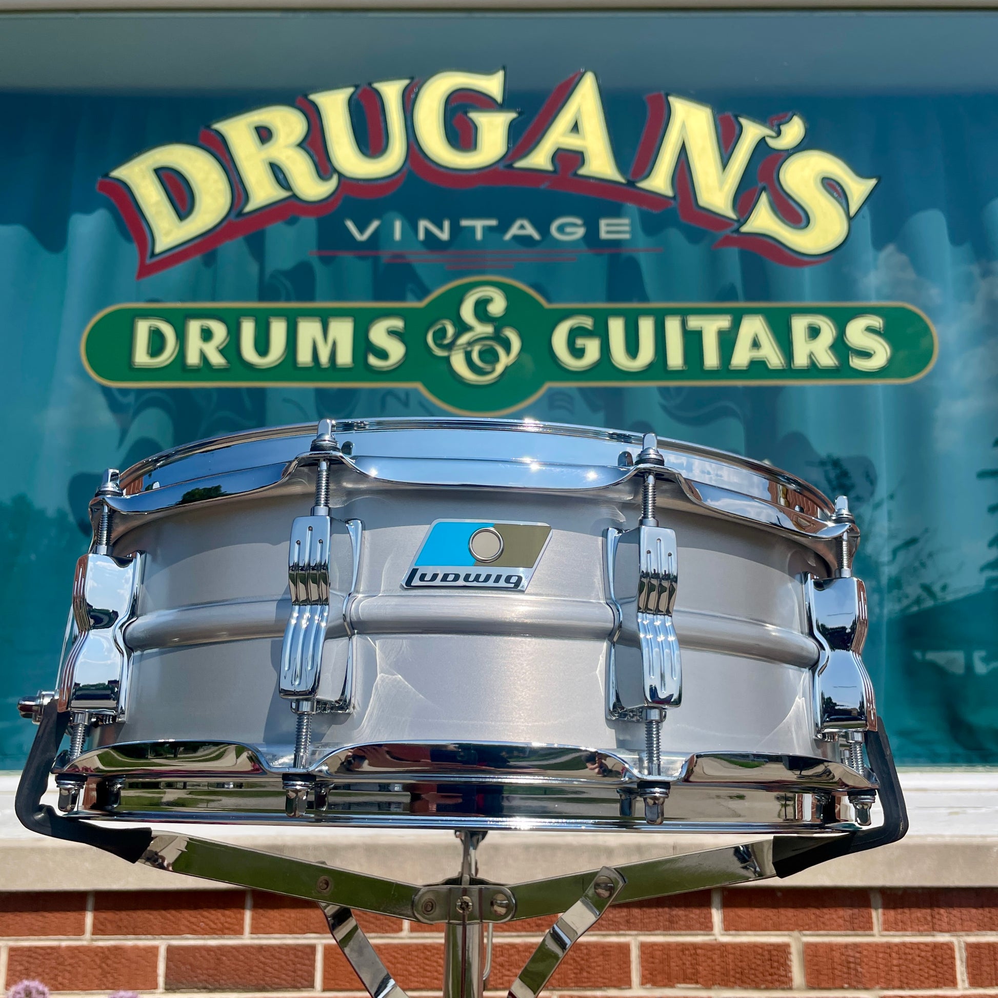 For your prime consideration is this modern Ludwig 5x14 Acrolite Classic snare drum. This drum is in new condition, has never been played, and has the original box. It features a 1.6mm aluminum shell with 45 degree bearing edges, 10 bowtie lugs, triple-flanged hoops, P88 throw-off with a P35 butt plate and 20-strand snare wires, and sports the Ludwig Blue & Olive badge. Why spend $499 on a new 10-lug Ludwig Acrolite when you can have this one for less? Enjoy!