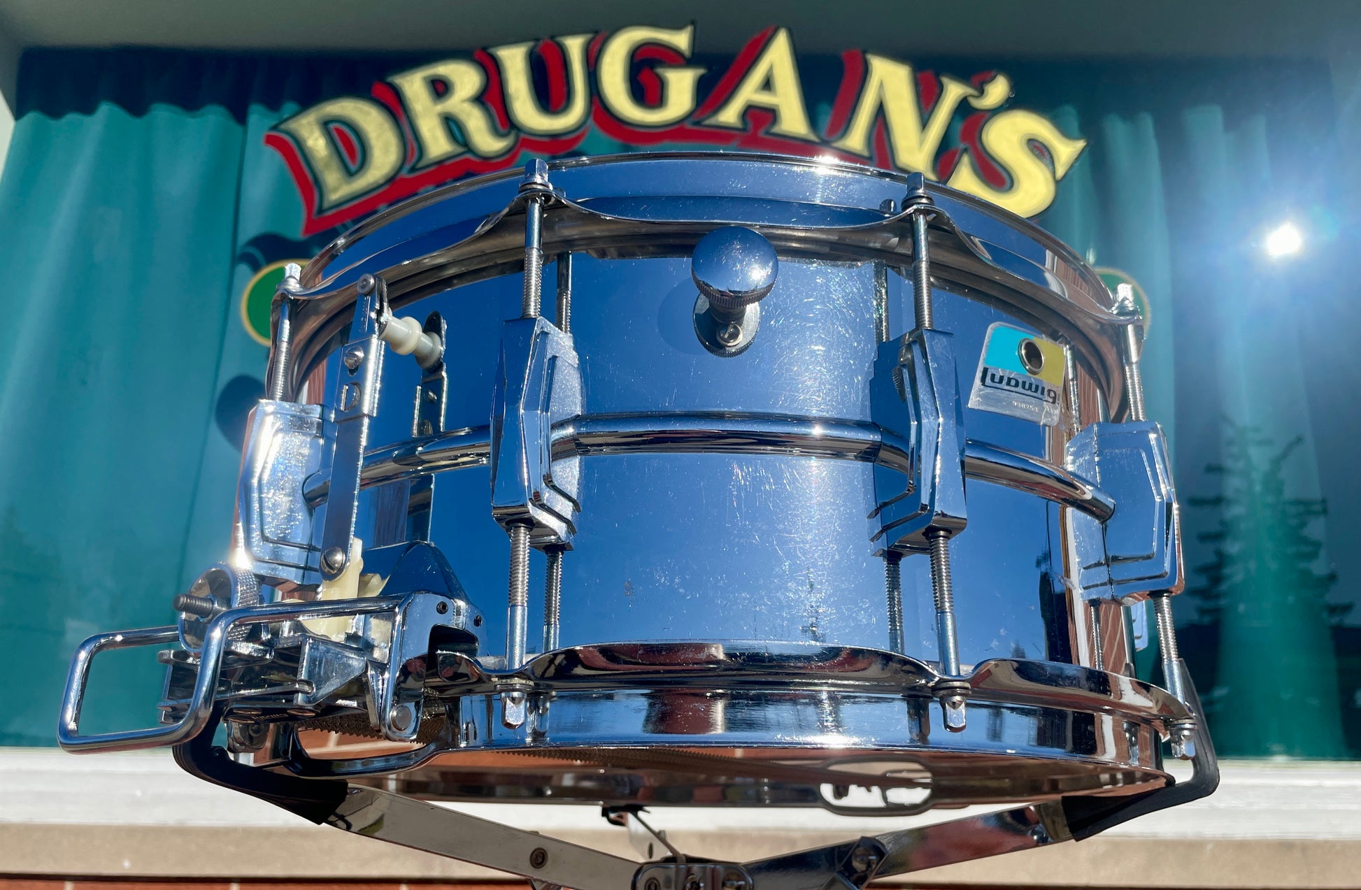 For your prime viewing pleasure is this amazing vintage 6.5x14 Ludwig Super Sensitive snare drum from the 1972. Aside from modern heads, this drum is all original and there are no extra holes or modifications of any kind. It's is in great condition with no pitting, some very light surface scratches on the shell, and a slight bit of aging on a few lugs. The original Super Sensitive strainer operates smoothly, as does the tone control. All of the tension rods and washers are original, as well as the hoops. The pointy blue & olive badge has 6 digit serial # 930XXX and an internal date stamp of 4272. Most importantly, this drum tunes up like a champ and sounds absolutely fantastic with that legendary Ludwig sound. Enjoy!