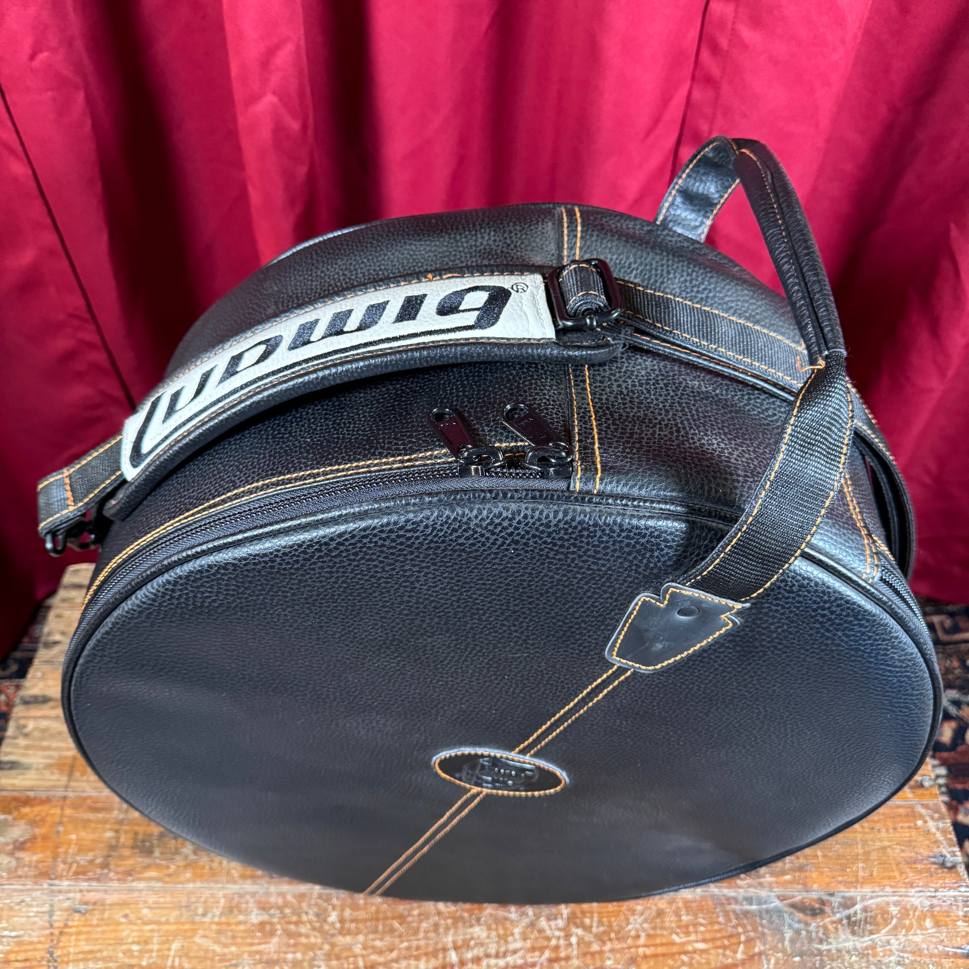 For your kind consideration is this Ludwig Atlas Heirloom snare drum bag. It's in excellent condition with almost no wear and sports the Ludwig 100th Anniversary logo. The bag is padded on all sides with 1" of foam and lined with a plush fleece for protecting finishes with a classy leather-like exterior. Koskin is a water-resistant synthetic that looks and feels like leather, but with a higher level of durability. This case fits up to a 6.5" x 14" drum and comes with a luggage handle and detachable shoulder strap. Enjoy!