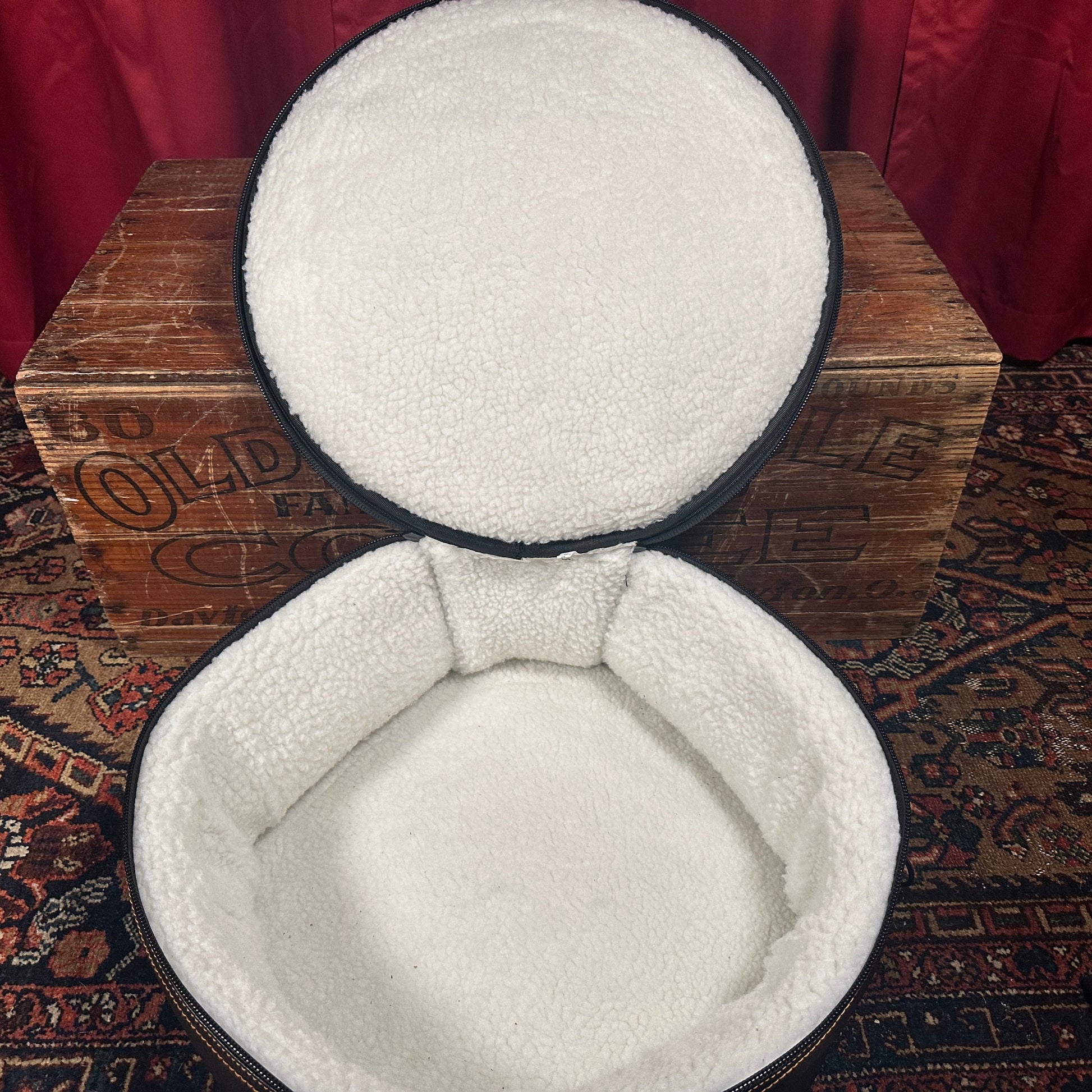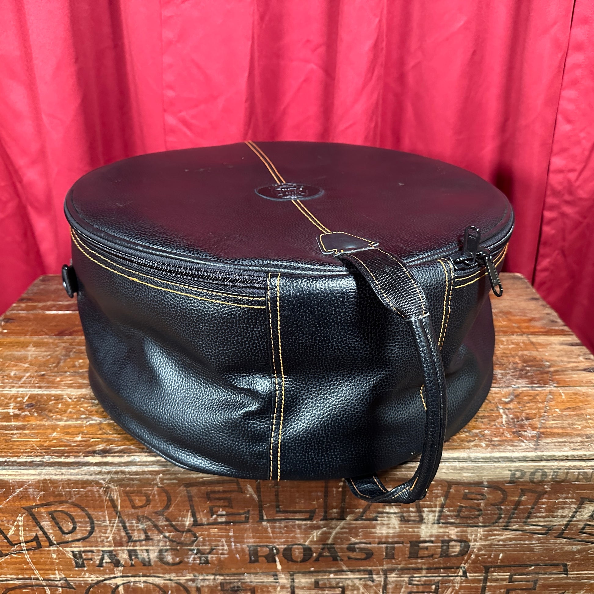 For your kind consideration is this Ludwig Atlas Heirloom snare drum bag. It's in good condition with light signs of aging and sports the Ludwig 100th Anniversary logo. The bag is padded on all sides with 1" of foam and lined with a plush fleece for protecting finishes with a classy leather-like exterior. Koskin is a water-resistant synthetic that looks and feels like leather, but with a higher level of durability. This case fits up to a 6.5" x 14" drum. Missing the shoulder strap. Enjoy!