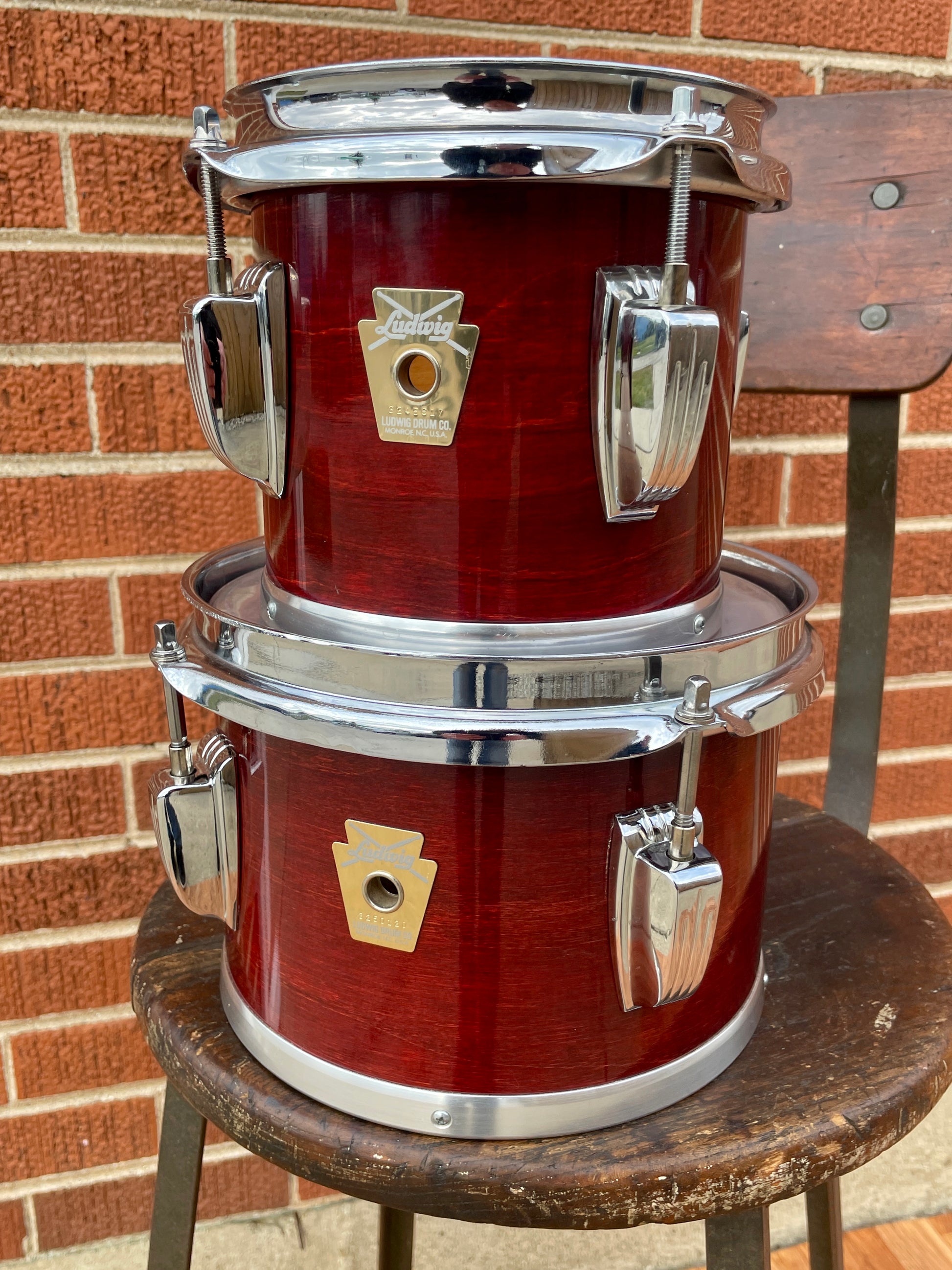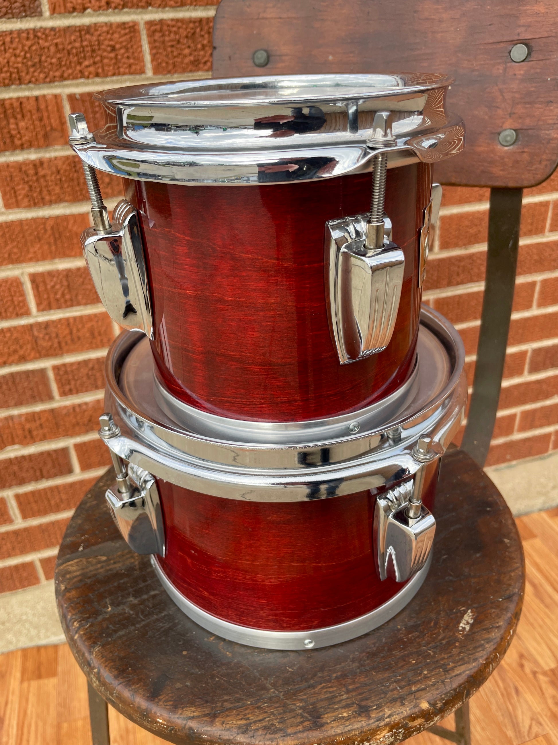 Mid-1980s Ludwig Concert Toms 6" & 8" Maple Shells Mahogany Finish