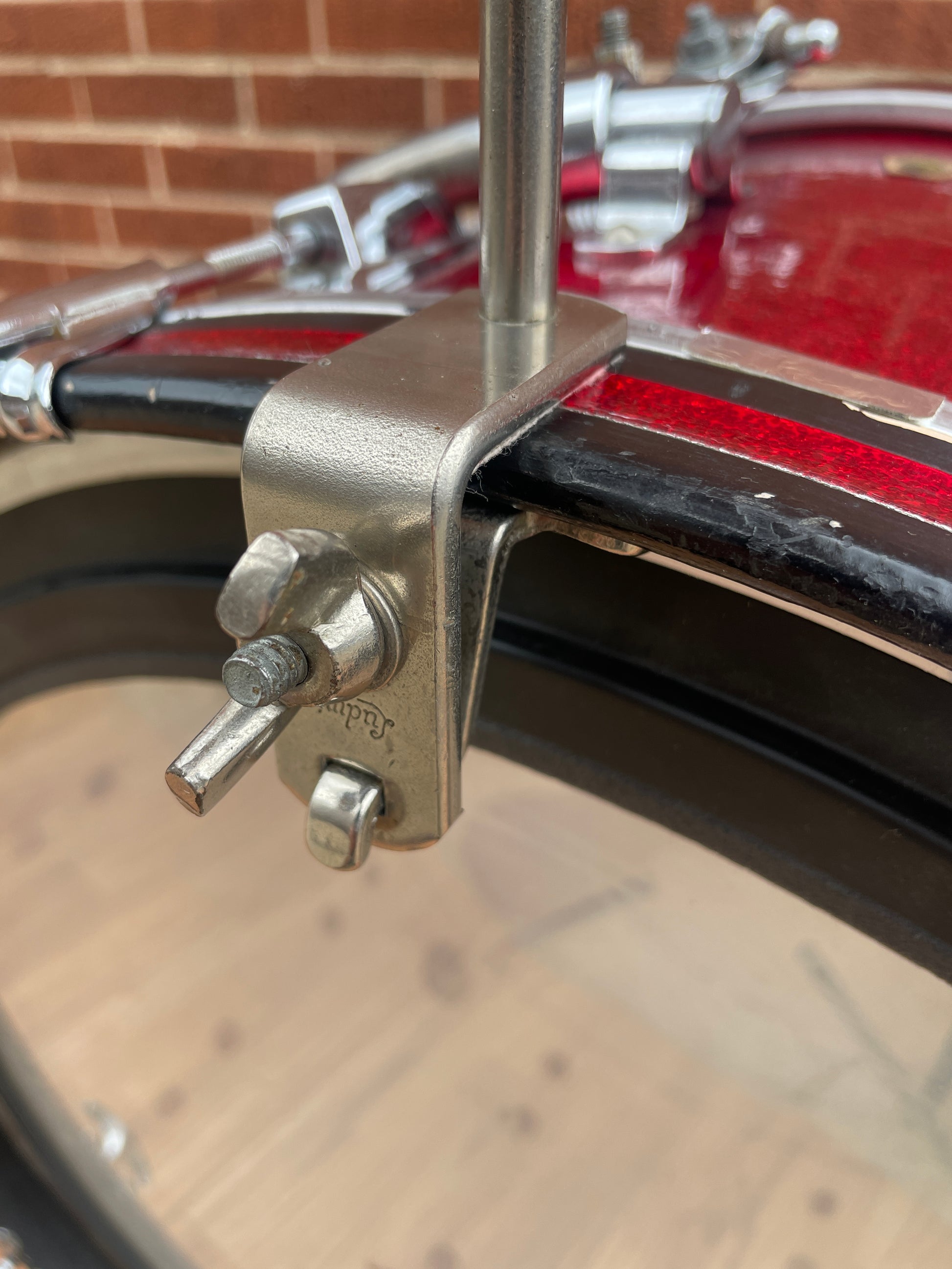 For your kind consideration is this vintage Ludwig No. 129 5" Golden Tone Cow Bell from the 1960s. It's in lovely condition with minimal aging to the bronze plating that gives it the gold finish. The Golden Tone bells have a heavier, harder alloy construction than the other models of the time and have a fully welded seam which helps give them the rich, bright sound they're famous for. An original No. 133 nickel script logo Cowbell holder with U-clamp in very condition is also included. The 6" post gives you enough reach to use this with smaller bass drums and a small piece of felt was added to protect the hoop. This set will look amazing with your 60s Ludwig setup and would be at home in even the finest of collections. Enjoy!