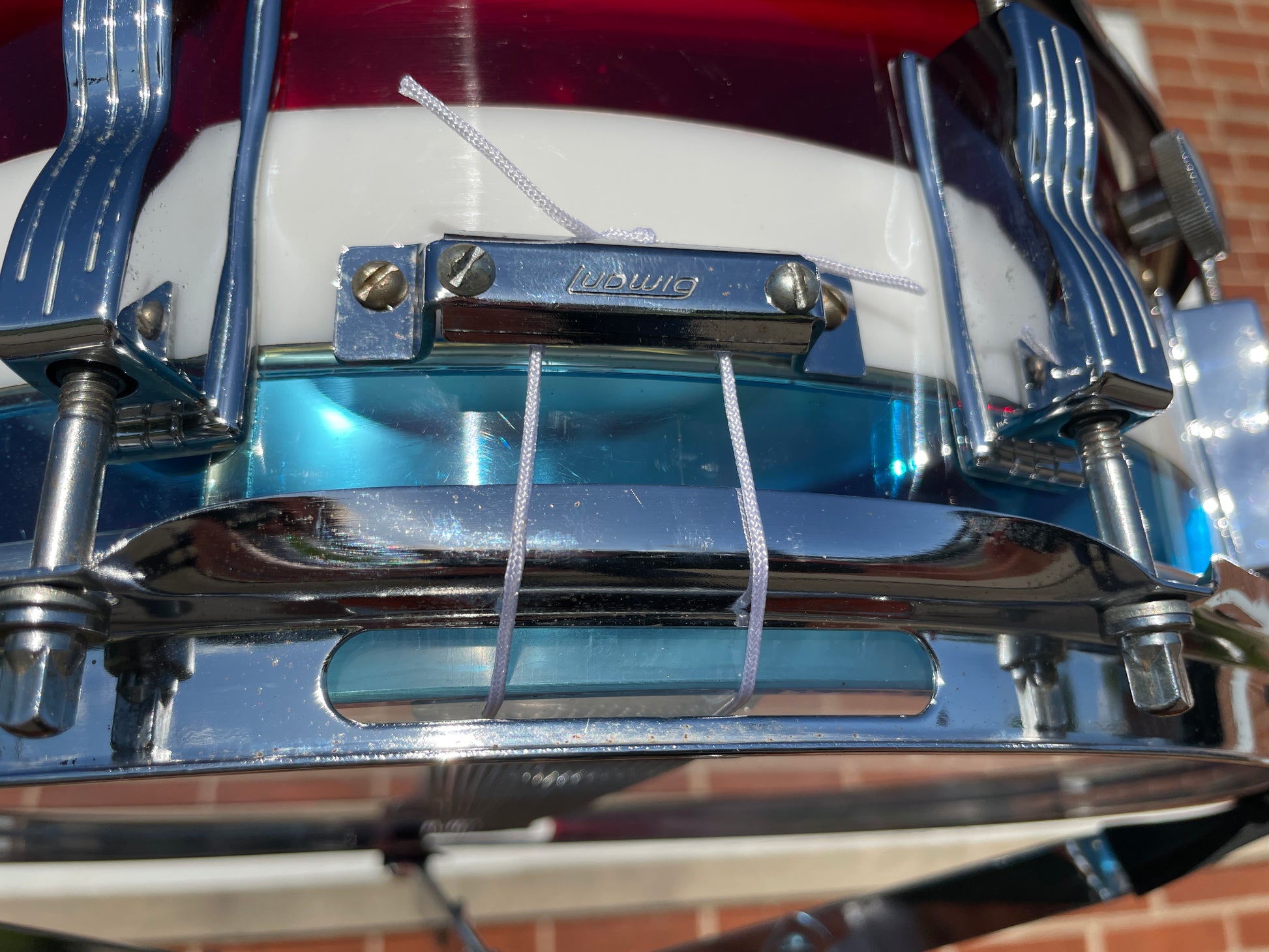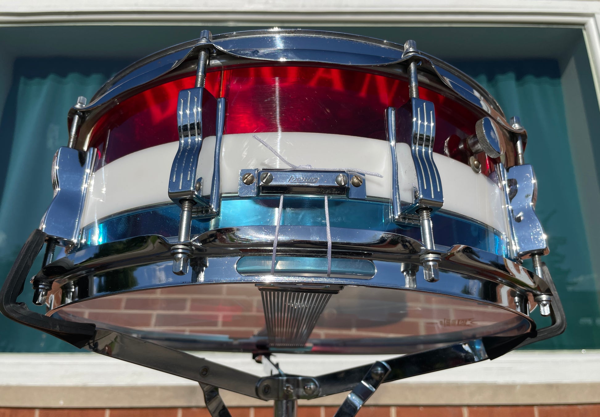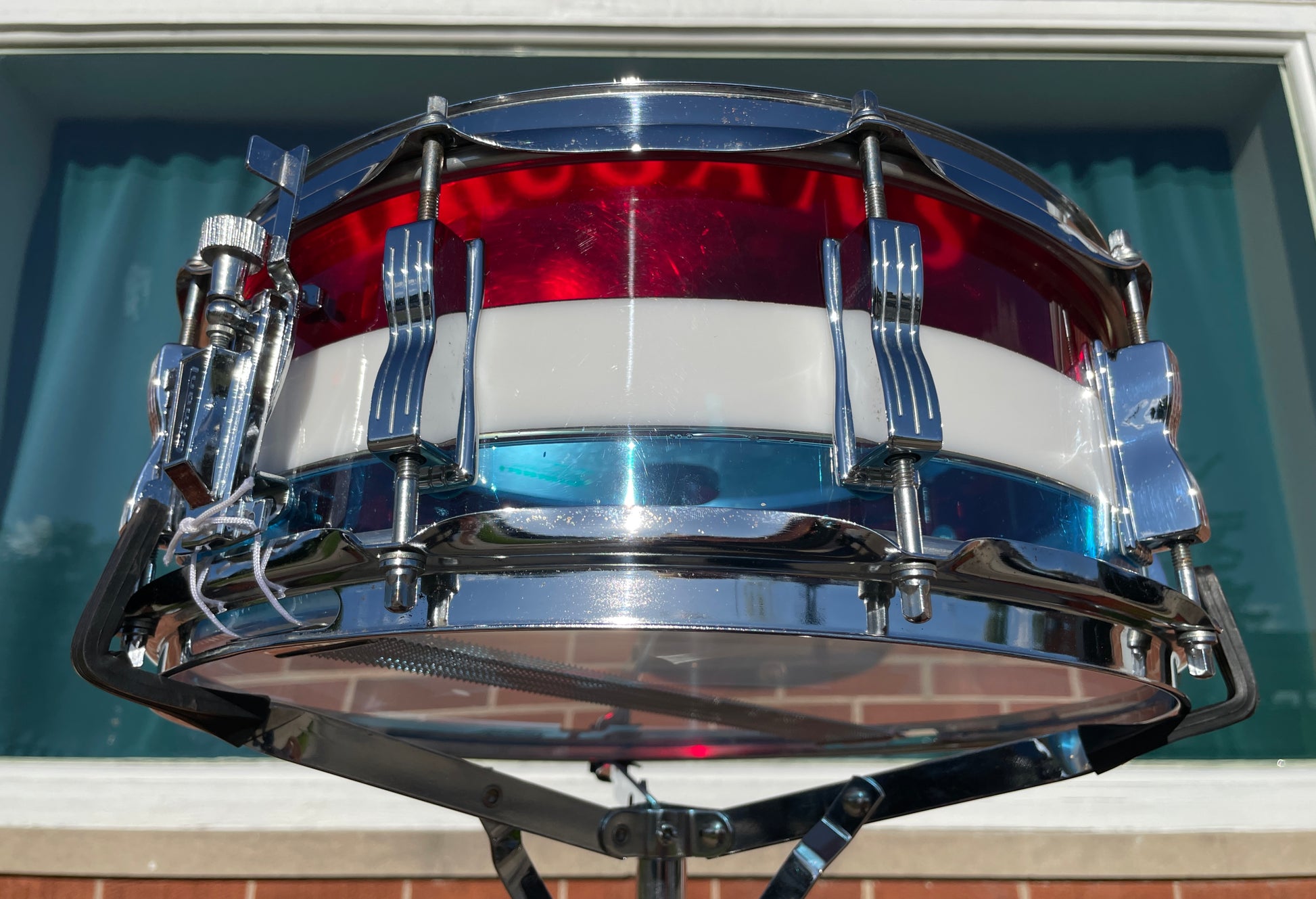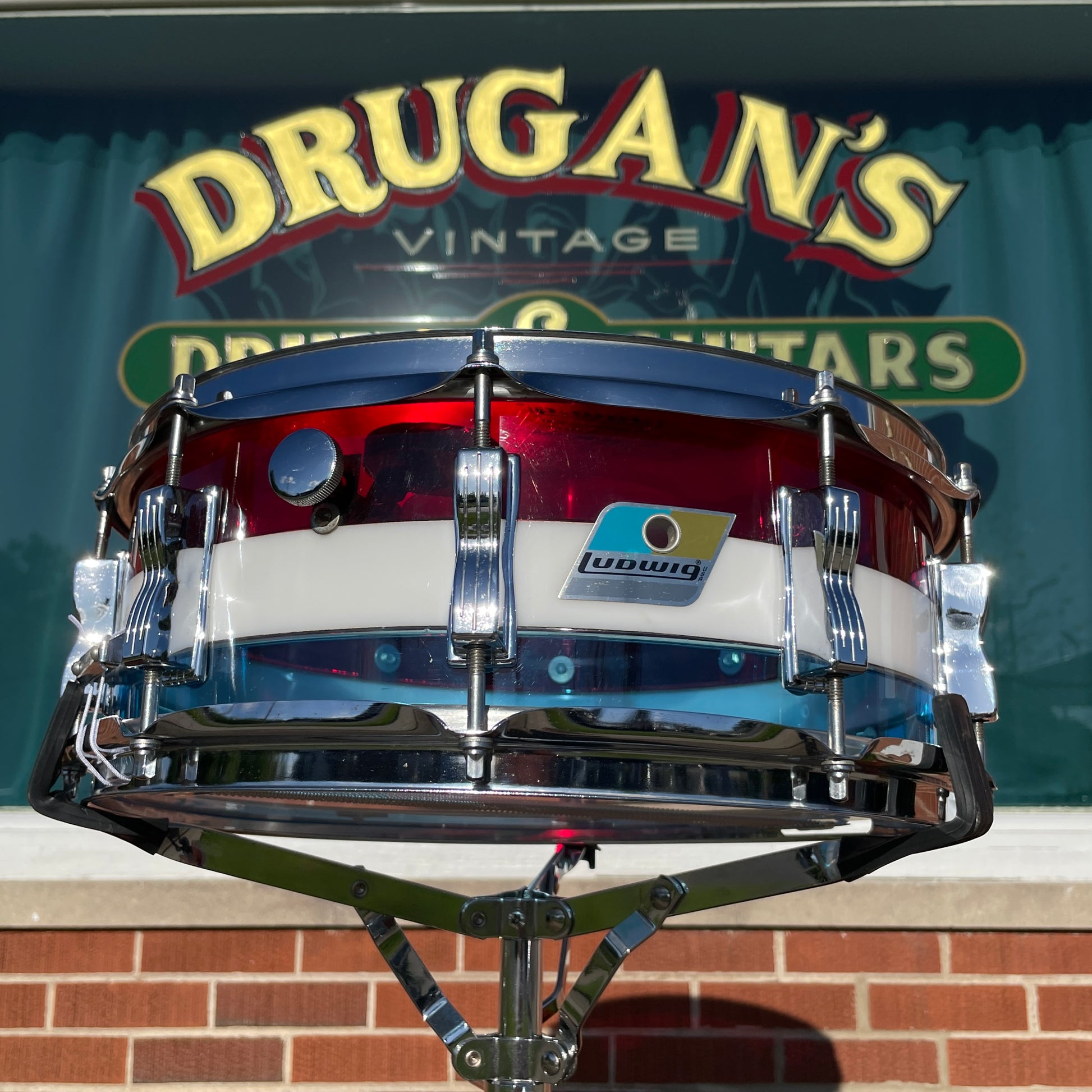 1970s Ludwig Vistalite 5x14 Snare Drum Bicentennial Red White And Blue