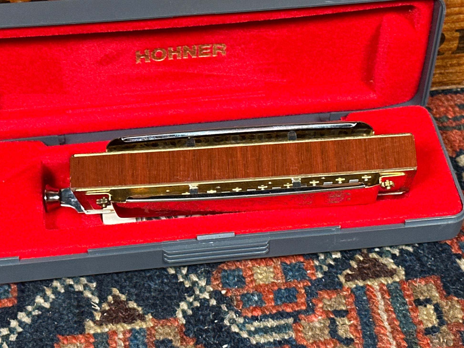 For your kind consideration is this Hohner Chromonica 260 chromatic harmonica in the key of C. It is in excellent condition and includes the case. It is a 10 hole, 40 reed harmonica and is the smaller sibling to the 270 model. Enjoy!