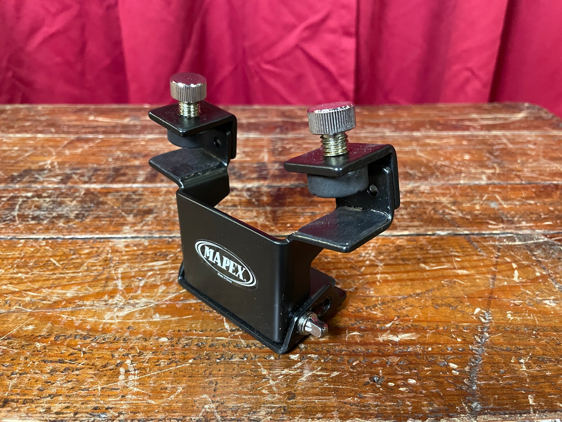 For your kind consideration is this Mapex MBL909 hoop mounted bass drum riser. It's in excellent condition with minimal play wear. The Mapex adjustable Bass Drum Lift gives the player back some of the low frequencies absorbed by any floor, and provides the ability for the pedal beater to strike the center of the head when using smaller bass drums. This is designed to raise small bass drums 2 inches off the ground and is easy to setup and install. Enjoy!