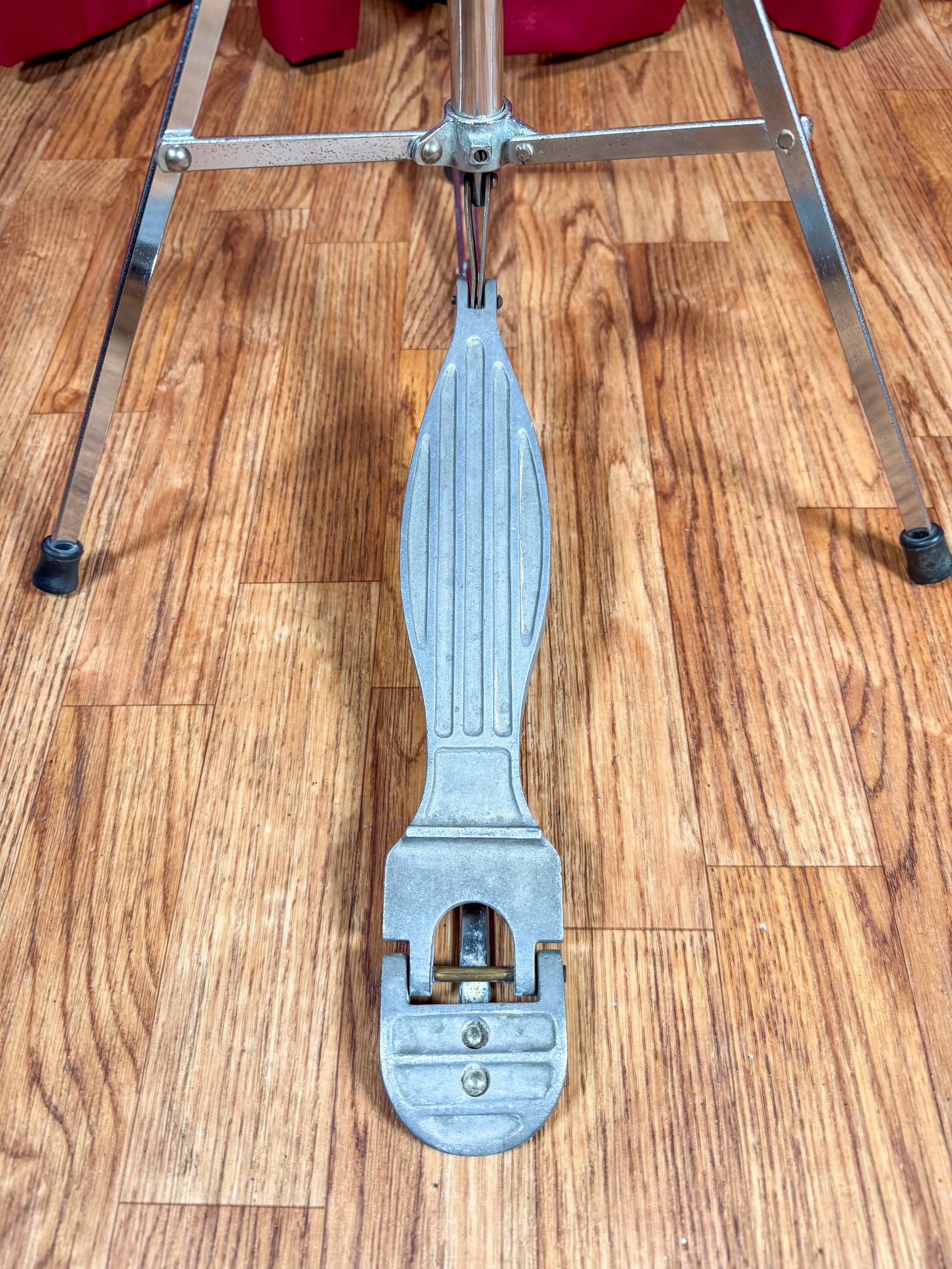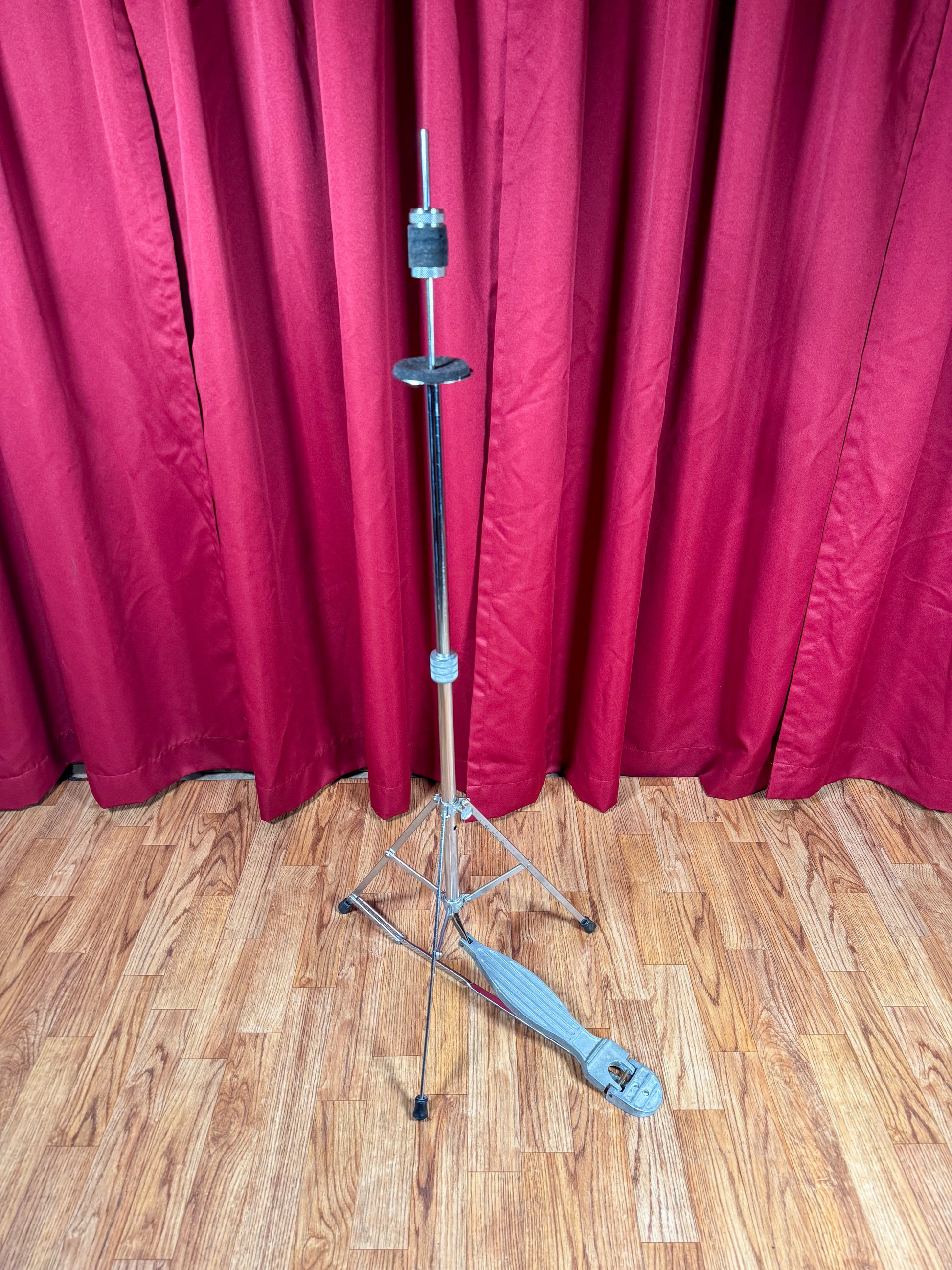 For your kind consideration is this Nick Manoloff 3-leg hi-hat stand. Nick Manoloff was primarily known for manufacturing slides for slide guitar, but his craftsmanship is evident in this stand. It's in great condition with light wear. The unique 3-leg with pedal hinge design disperses the weight perfectly so you won't have your hi hat stand toppling over with the slightest touch. It's durable but lightweight, making it great for gigging. Enjoy!