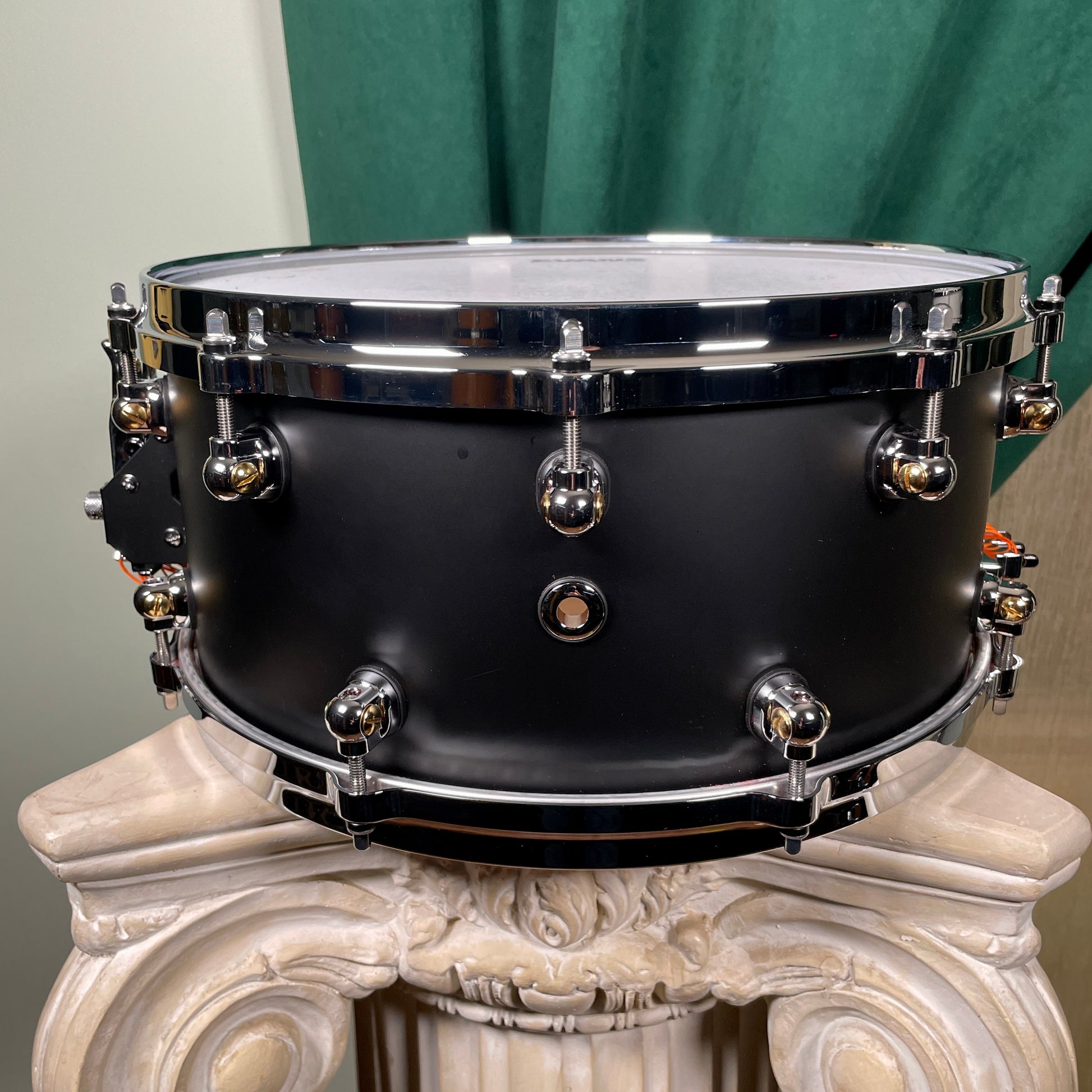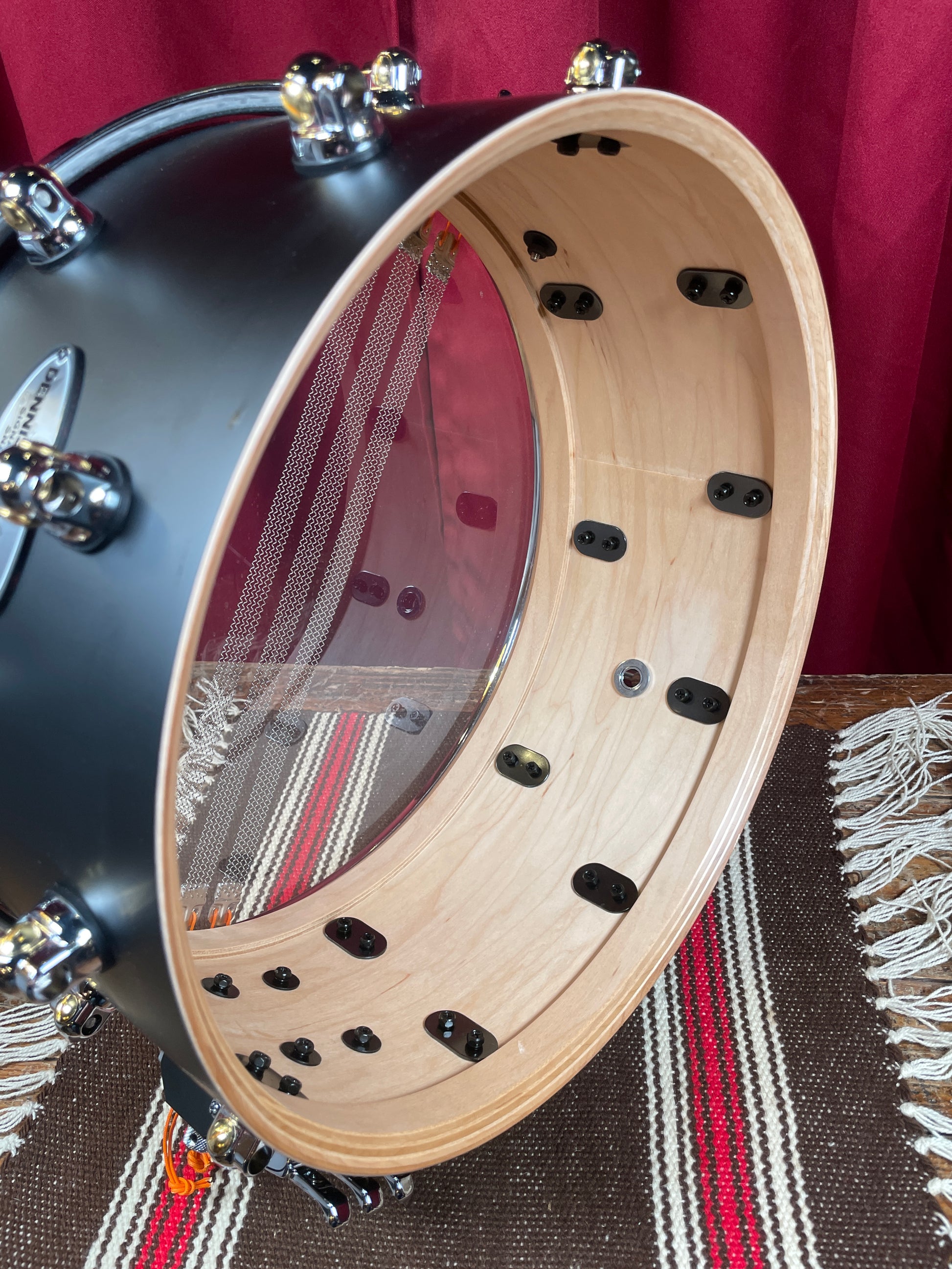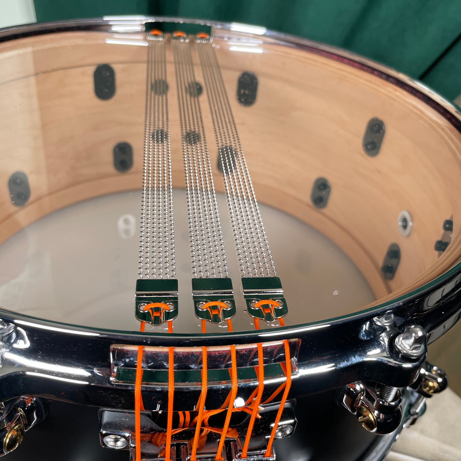 This signature drum has a 4 ply maple shell with 4 ply reinforcement rings. It is outfitted with 10 lugs on the batter head and 8 lugs on the resonant head. Additionally, this unique drum features the SR300 Philharmonic Strainer, which has three individually tunable snare wires and throw offs. Sculpt your sound with ease by toggling through the different snare configurations.