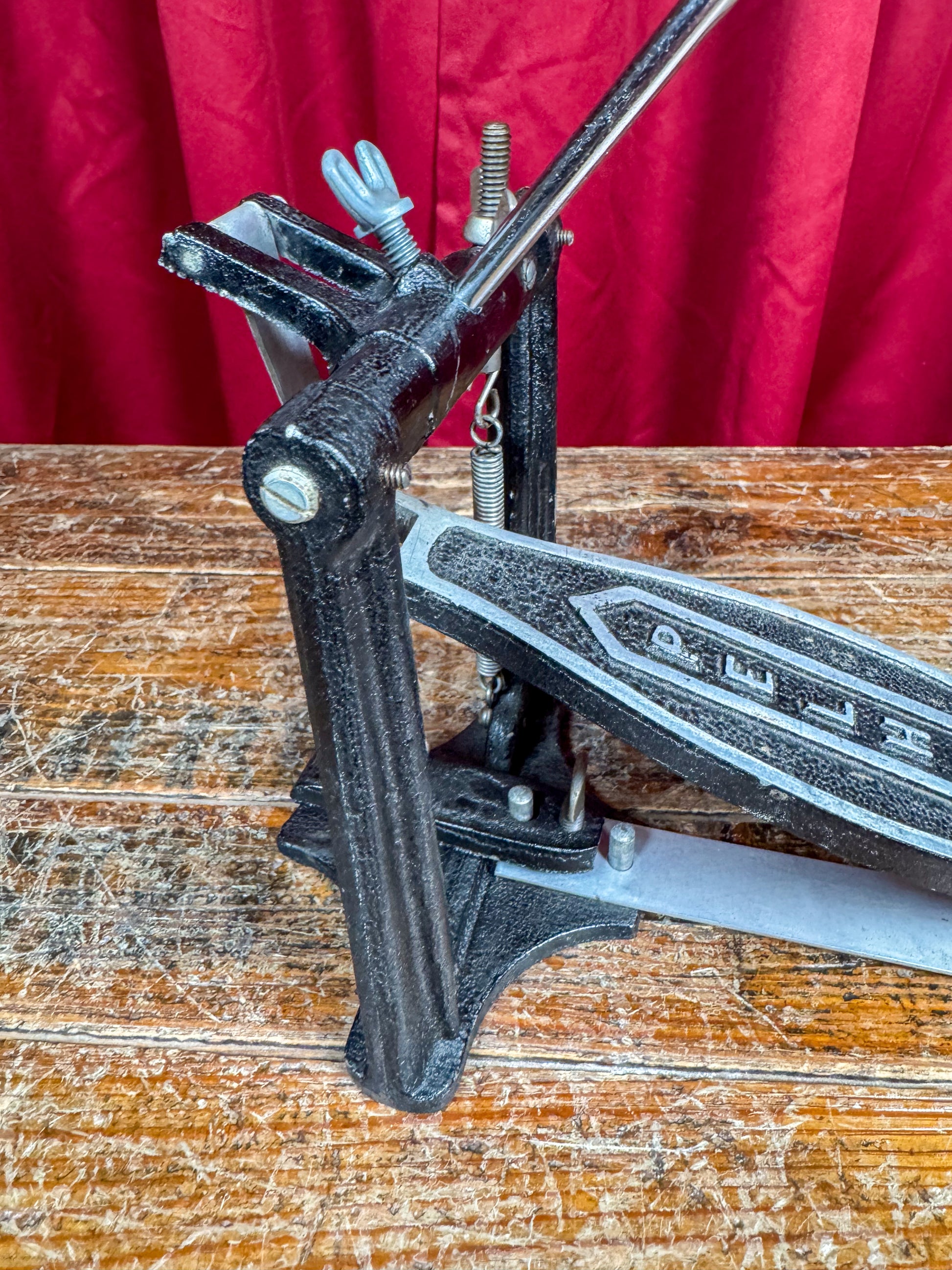 For your kind consideration is this vintage Pelham bass drum pedal. The Pelham company was short lived, there is not much information about the history of this pedal. It's in very good condition for its age with some normal wear on the finish, and is fully functional. The single spring action is smooth and it works well. The beater is firm and in great shape, lots of life left in it. Enjoy!