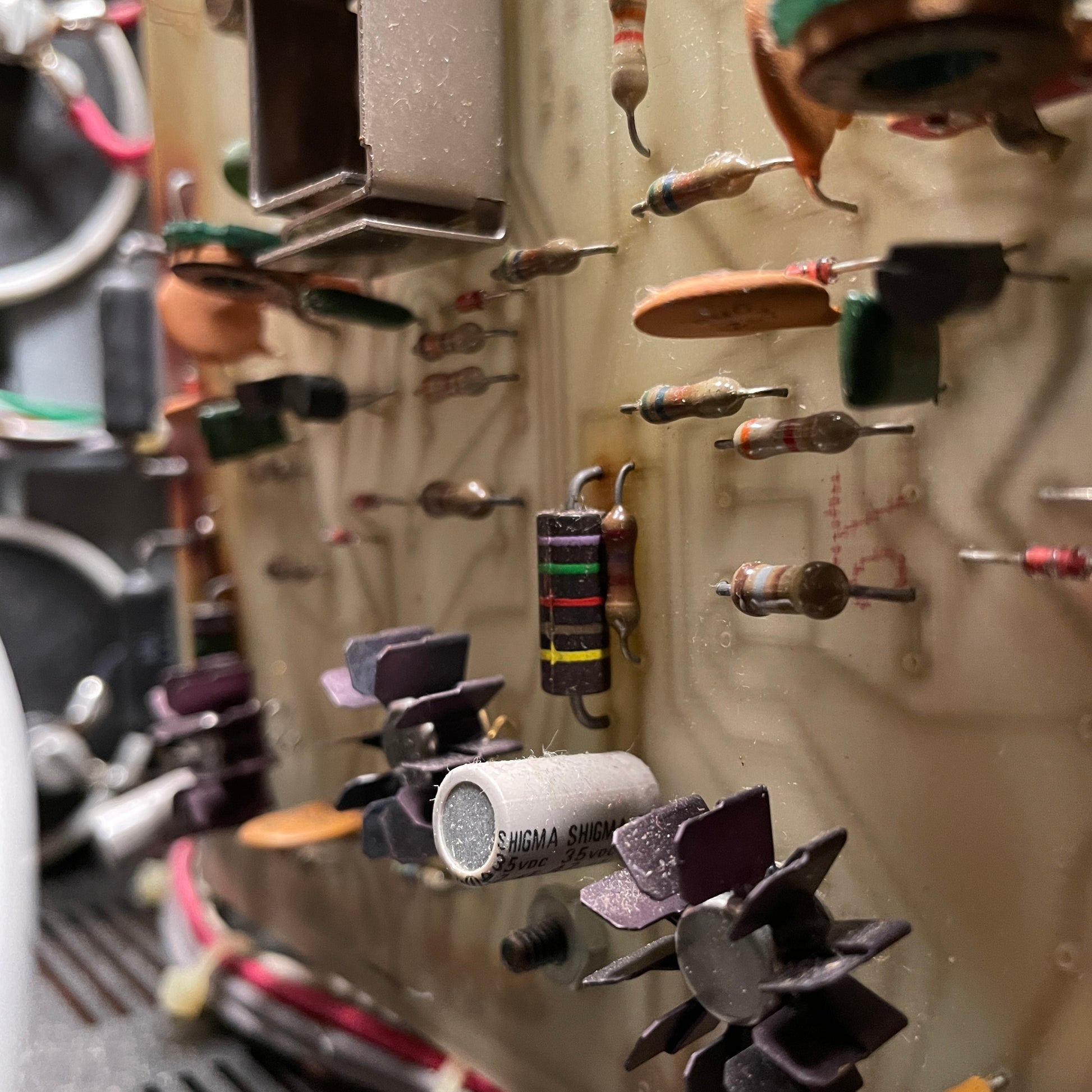 For your kind consideration is this Phase Linear 700B Series Two stereo power amp. It's in great condition overall save areas behind the rack ears where the chassis was marred removing the old handle screws, as shown in photos (not visible from front). New handles have been installed. There's a few minor scratches on the front also shown in the photos. The LED metering lights are nice and bright. This powerful vintage unit has been fully tested, is functioning perfectly, and is ready for your listening enjoyment.