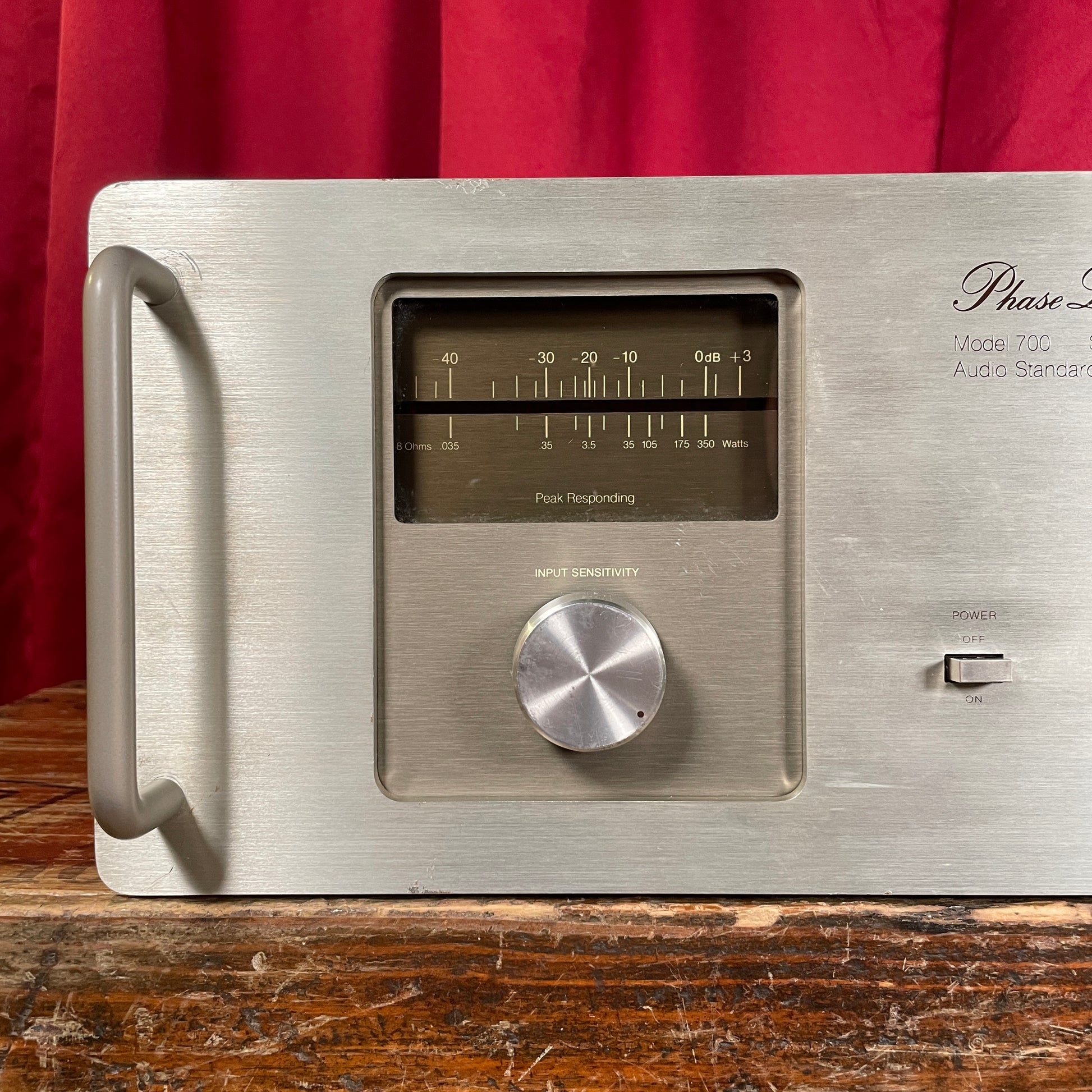 The 700 Series Two was introduced in 1978 and reflected the design approach of A. P. Van Meter, Phase Linear's new design manager. More attention was paid to the 700's aesthetics; the unit was undeniably handsome. Functionally, the VU meters were replaced by red LED meters, with a single volume control under each meter. Performance included 360 watts per channel, reduced THD and IMD and other improvements.