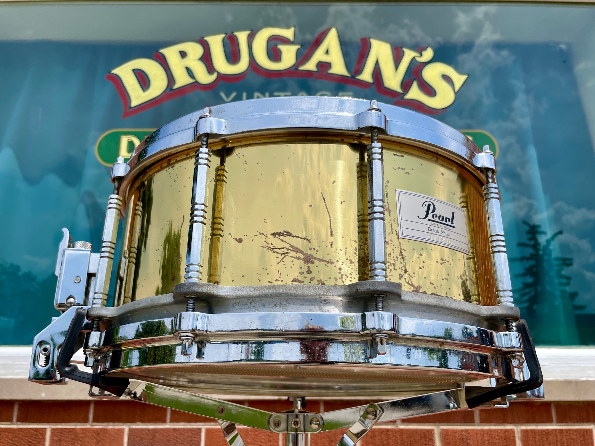 1980s Pearl 6.5x14 Brass Free Floating Snare Drum B-914D