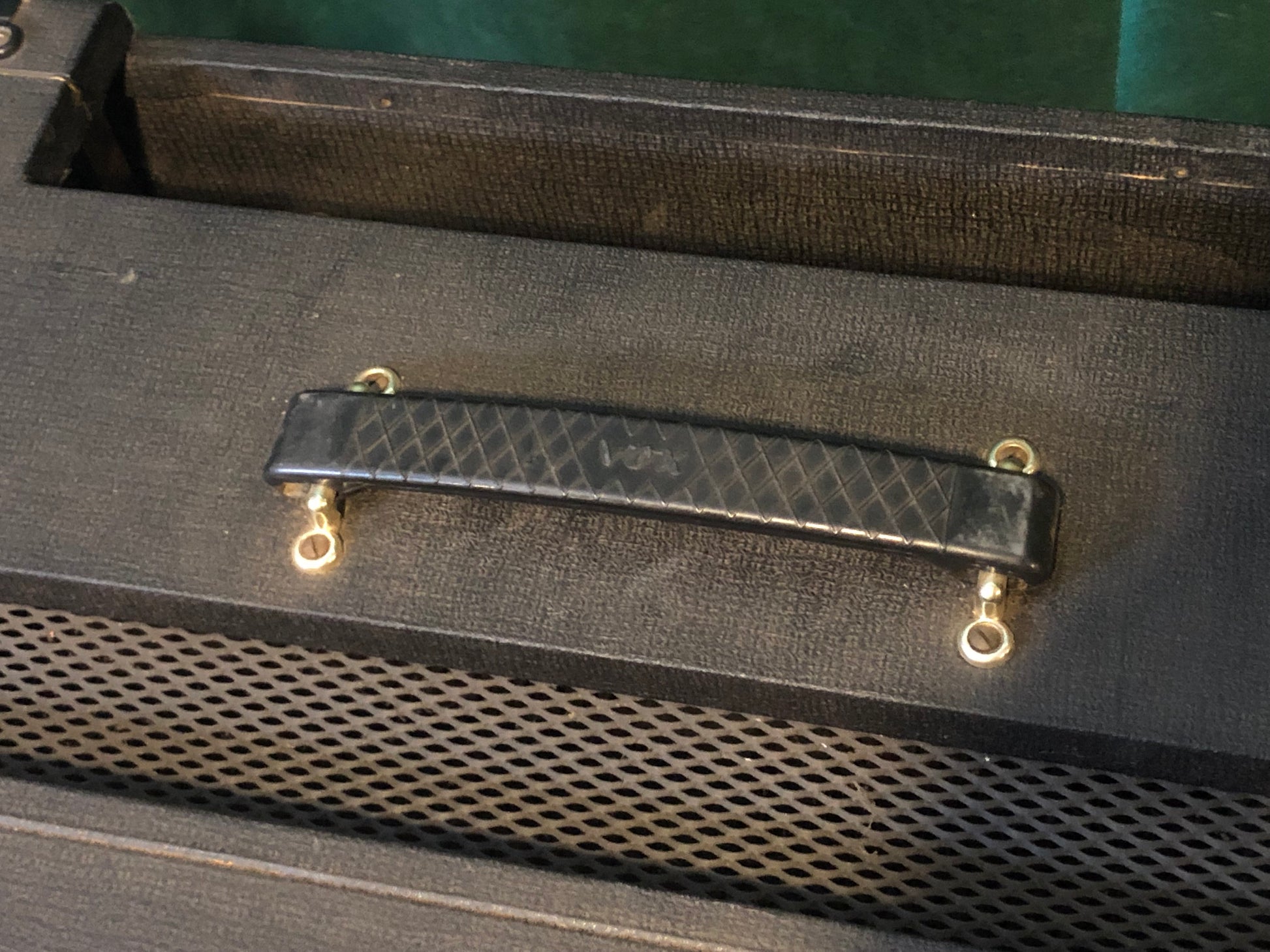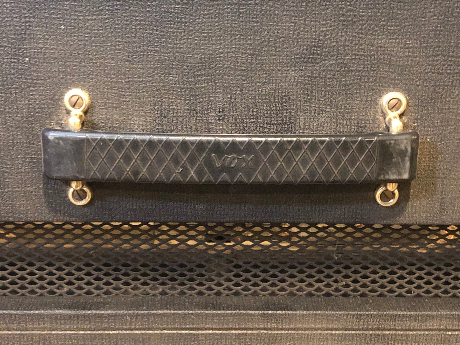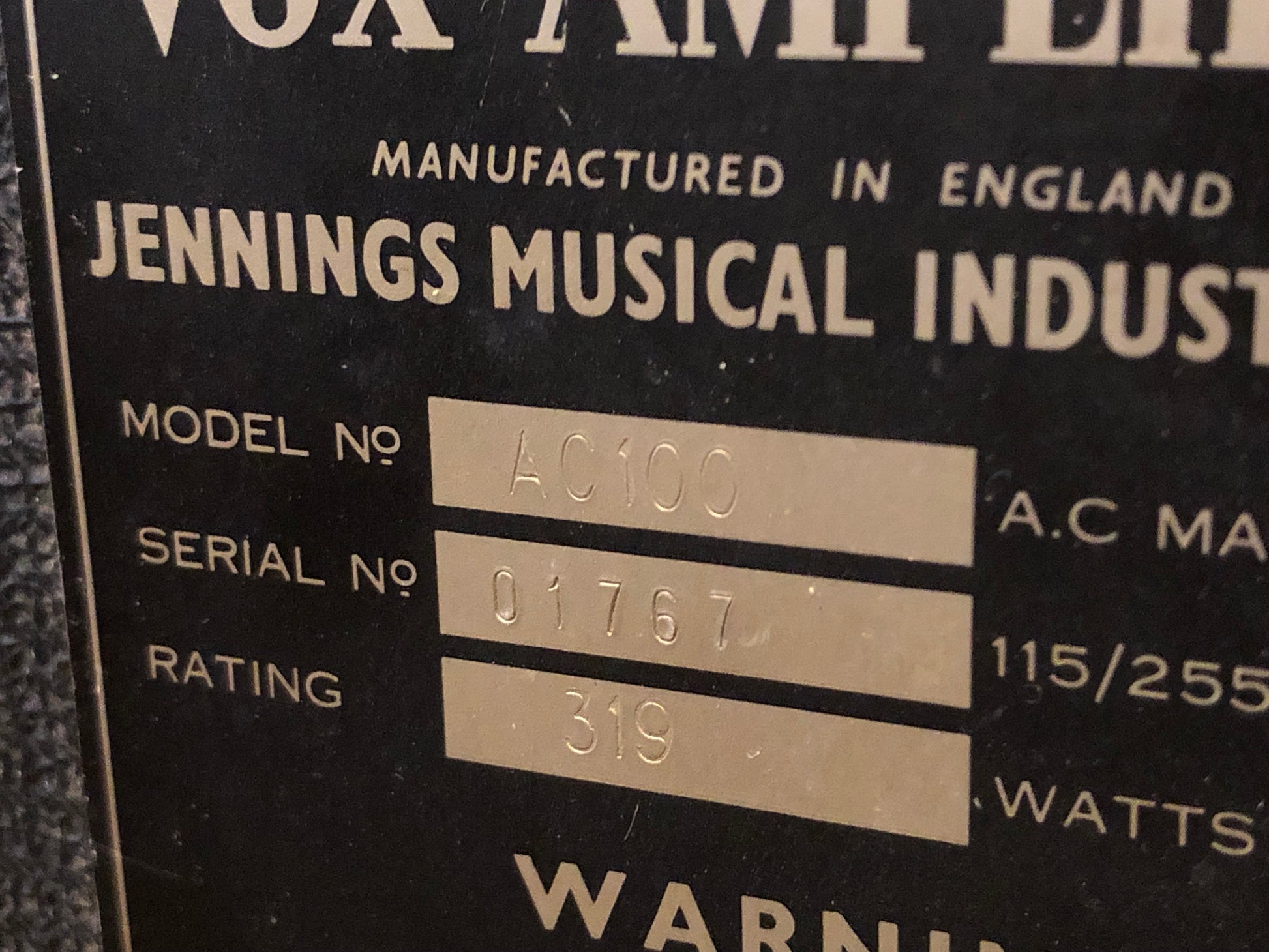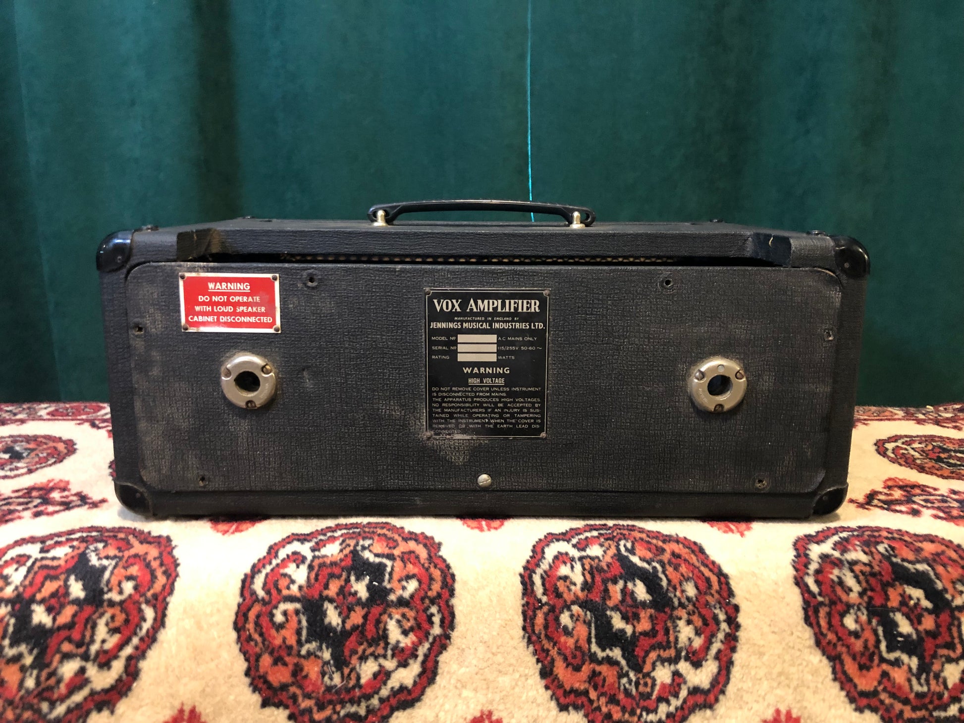 For your viewing pleasure is this vintage Vox AC100 head-shell from the 1960s. This is the earlier small box version. These amps are extremely rare, if you have the chassis, this is your chance for an original sleeve. Overall, the box is in great condition with no tears in the grill cloth, corners are in great shape, the piping on the front top is missing, but is still there on the back top. The feet look original. The back panel has the original serial number plate with a number of 170XX, and both of the original jack sockets are in place. There is only one screw holding the back panel on and it appears that one ferrule has been replaced. The original handle is complete and in great condition. All of the metal vents are in place as well as the original Vox logo. This rare, original box is calling your name. Enjoy!