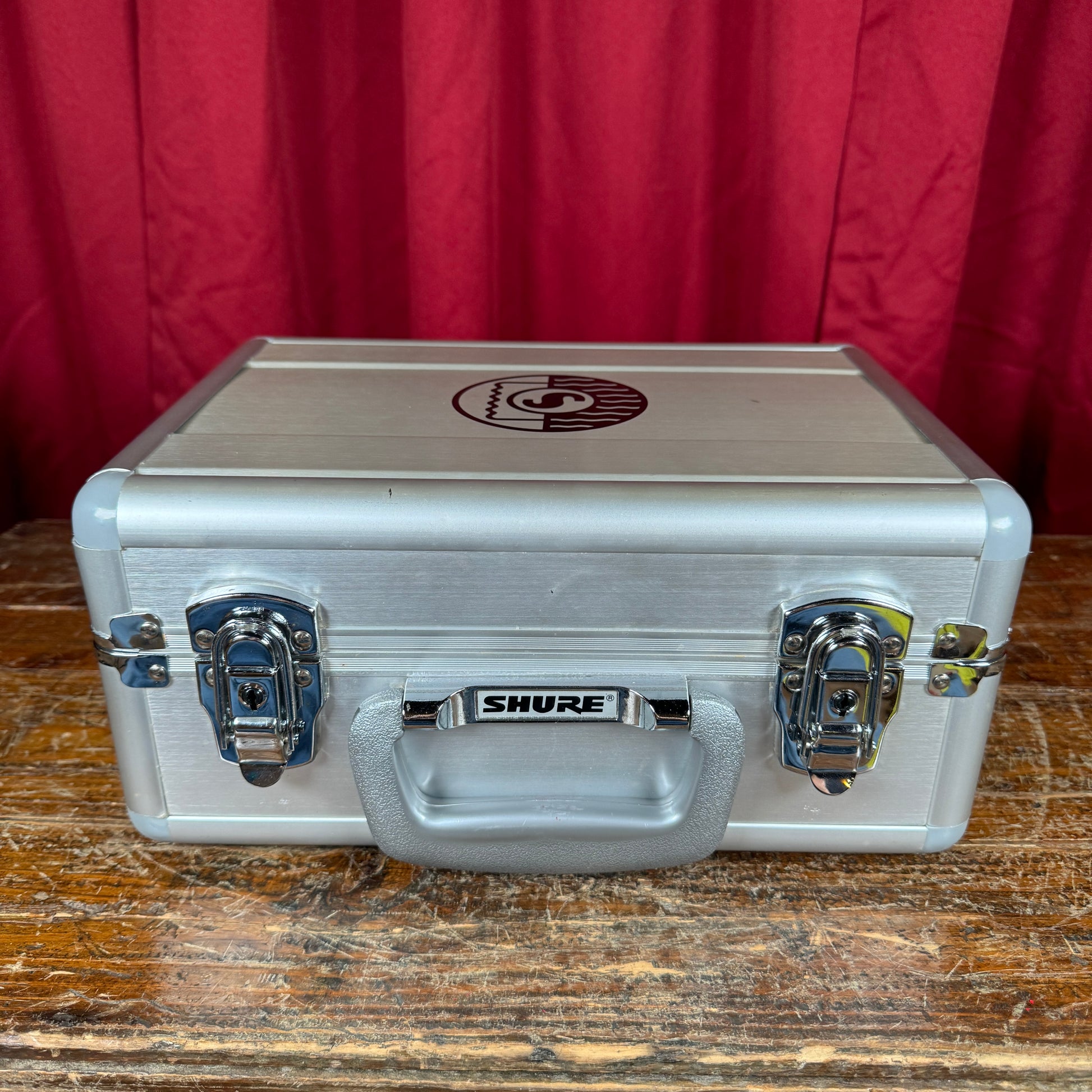 For your kind consideration is this Shure A32SC locking aluminum case for a KSM32 condenser microphone. It's in excellent cosmetic condition with just a few slight scratches and a tiny bot of red tape reside on the textured part of the handle. The keys and a microphone stand adapter are included. These retailed for $113 new, but you can get this barely used one at a fraction of the price. Enjoy!