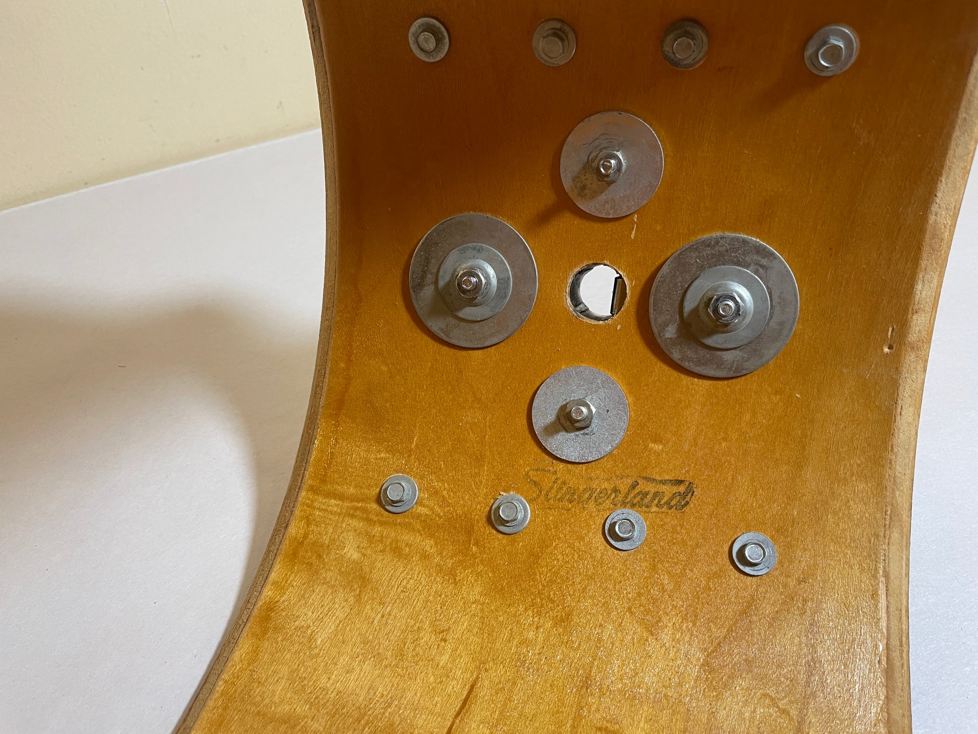For your kind consideration is this Slingerland 9x13 tom shell from the 1970s. It's been refinished in a brown stain. No hoops, tension rods, muffler, or heads. Original badge, lugs, and mount. Good condition with some scuffs and dings. See other listings for matching 9x13 in same finish. Enjoy!