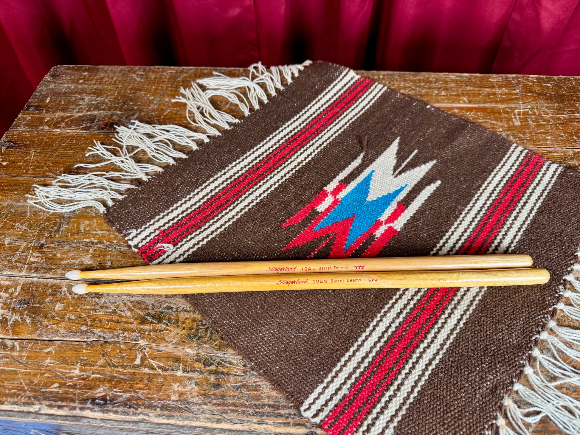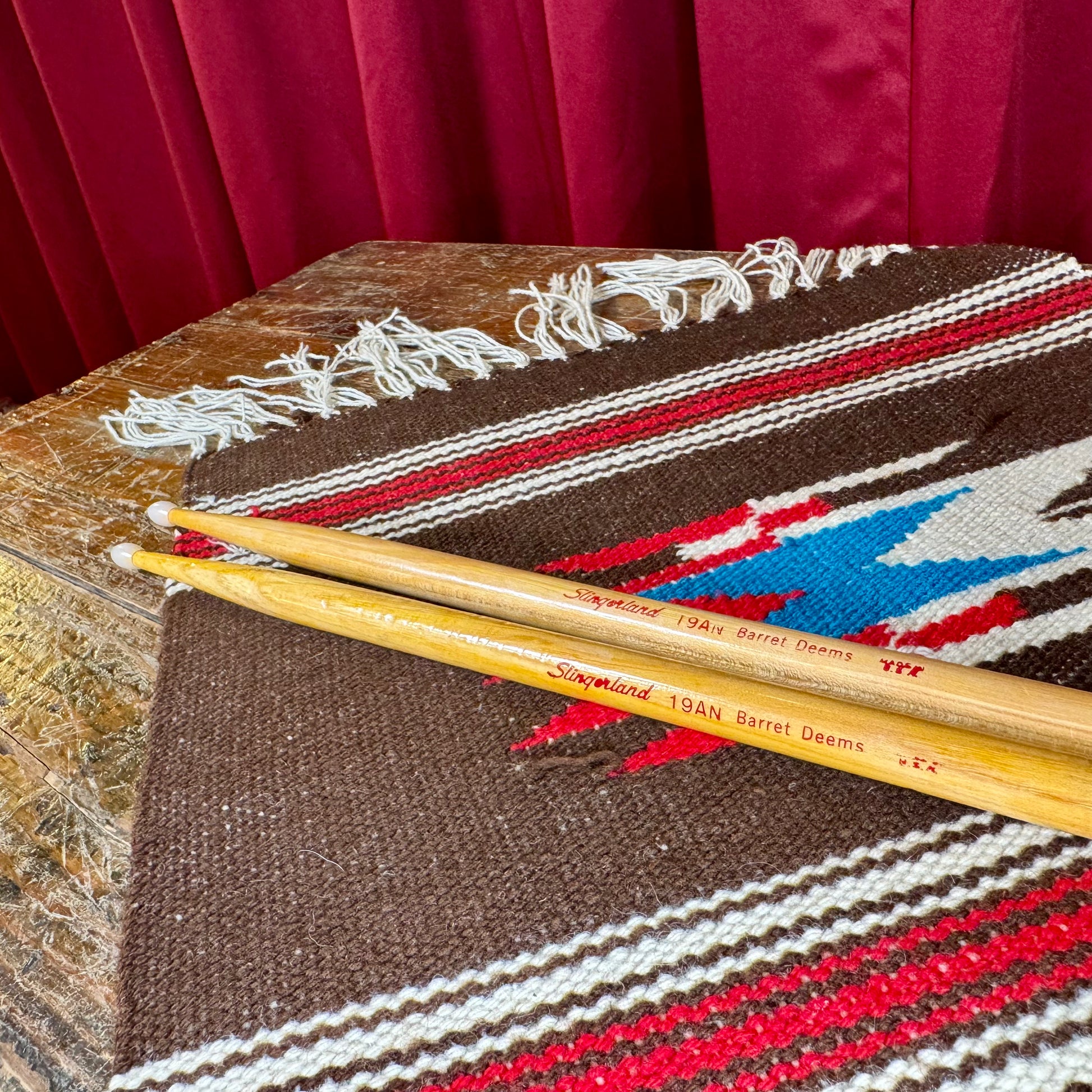For your kind consideration is this very gently used pair of Slingerland drum sticks. This is the 19AN Barrett Deems nylon tip model and measure 16" in length. Great collectors item with a absolutely minimal amount of wear. Enjoy!