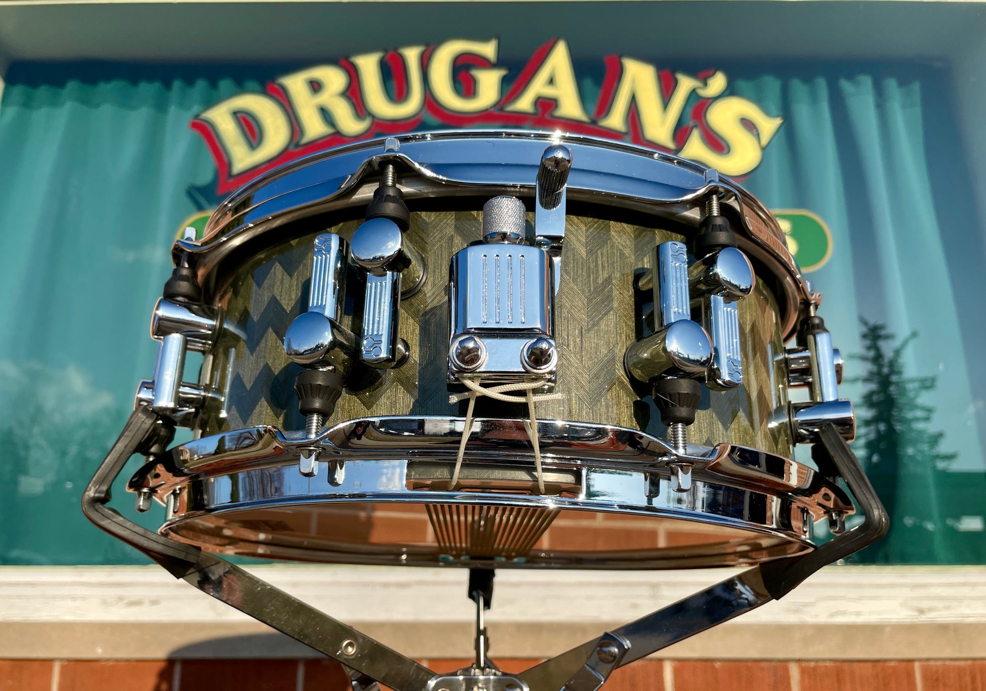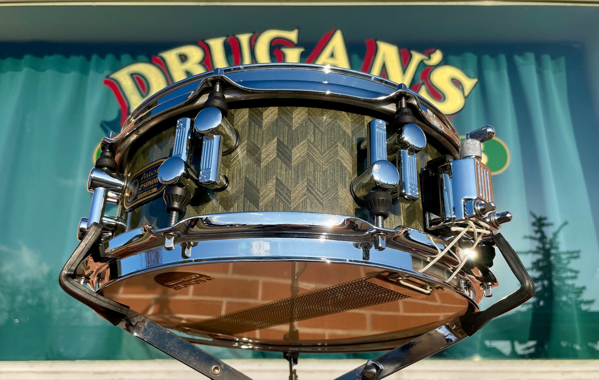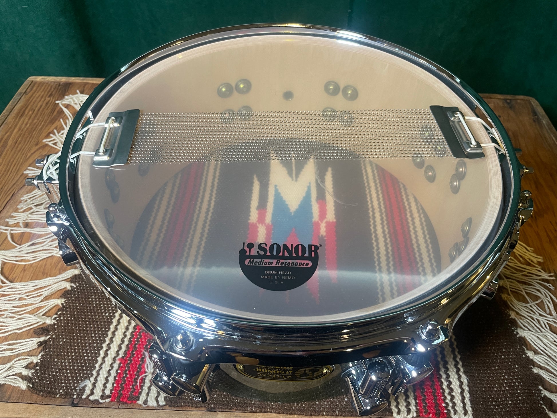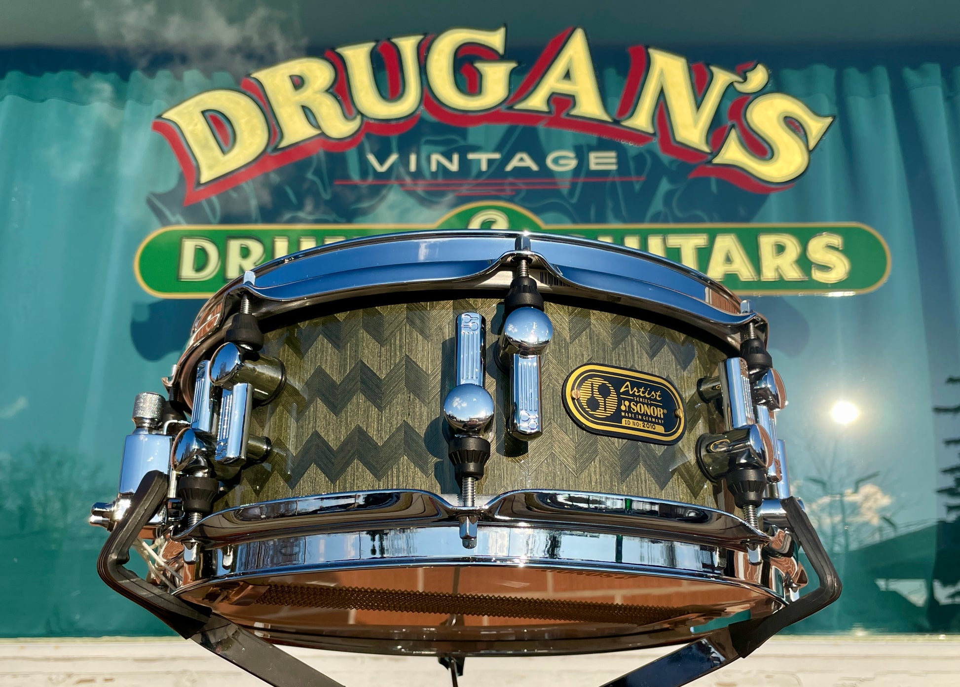 For your supreme viewing pleasure is this lovely Sonor Artist series 5x12 snare drum with a very unique finish wrap. It's in nearly new condition with little use. This drum would equally be at amongst the finest of collections, studios, or stages. It's a fantastic sounding drum with a nice, focused attack. Enjoy!