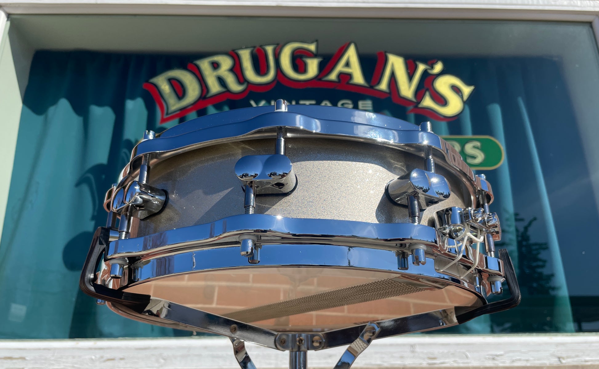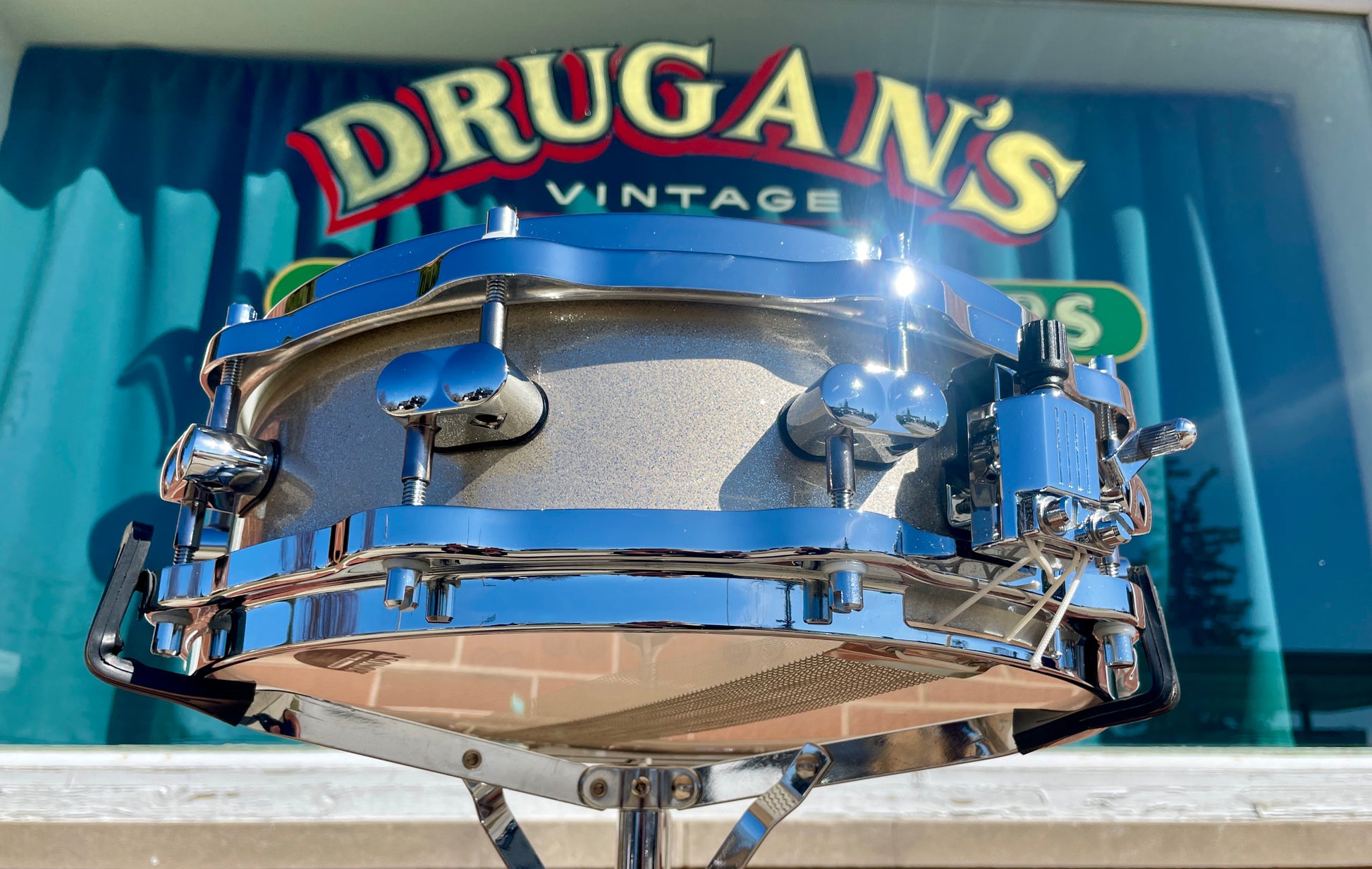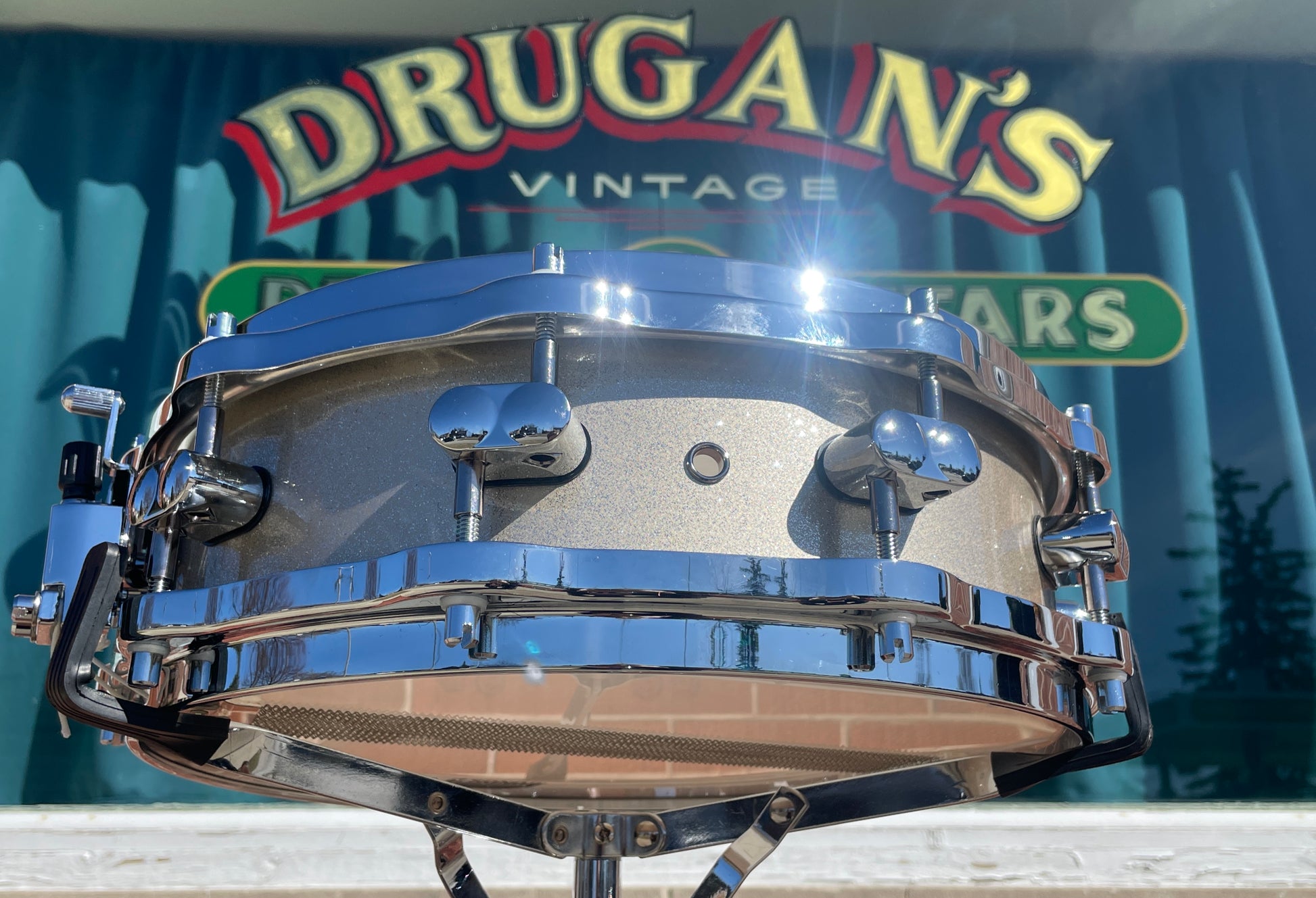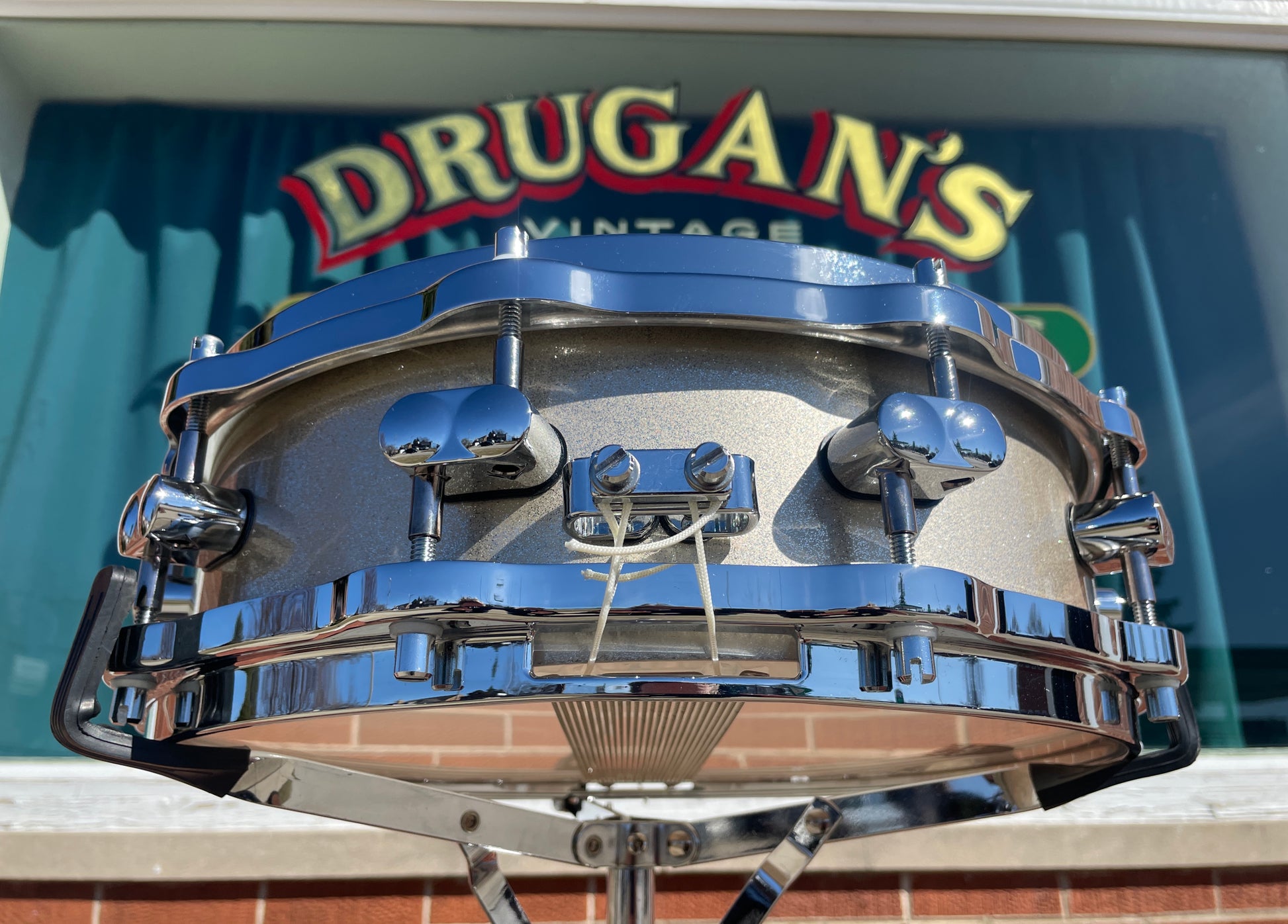 For your supreme viewing pleasure is this Sonor Delite Series 4x14 snare drum in Silver Sparkle. It's in fantastic, well cared for condition and displays beautifully. There are no extra holes or modifications, and the bearing edges are true and original. Most importantly it tunes up with the greatest of ease and sounds fantastic. Enjoy!
