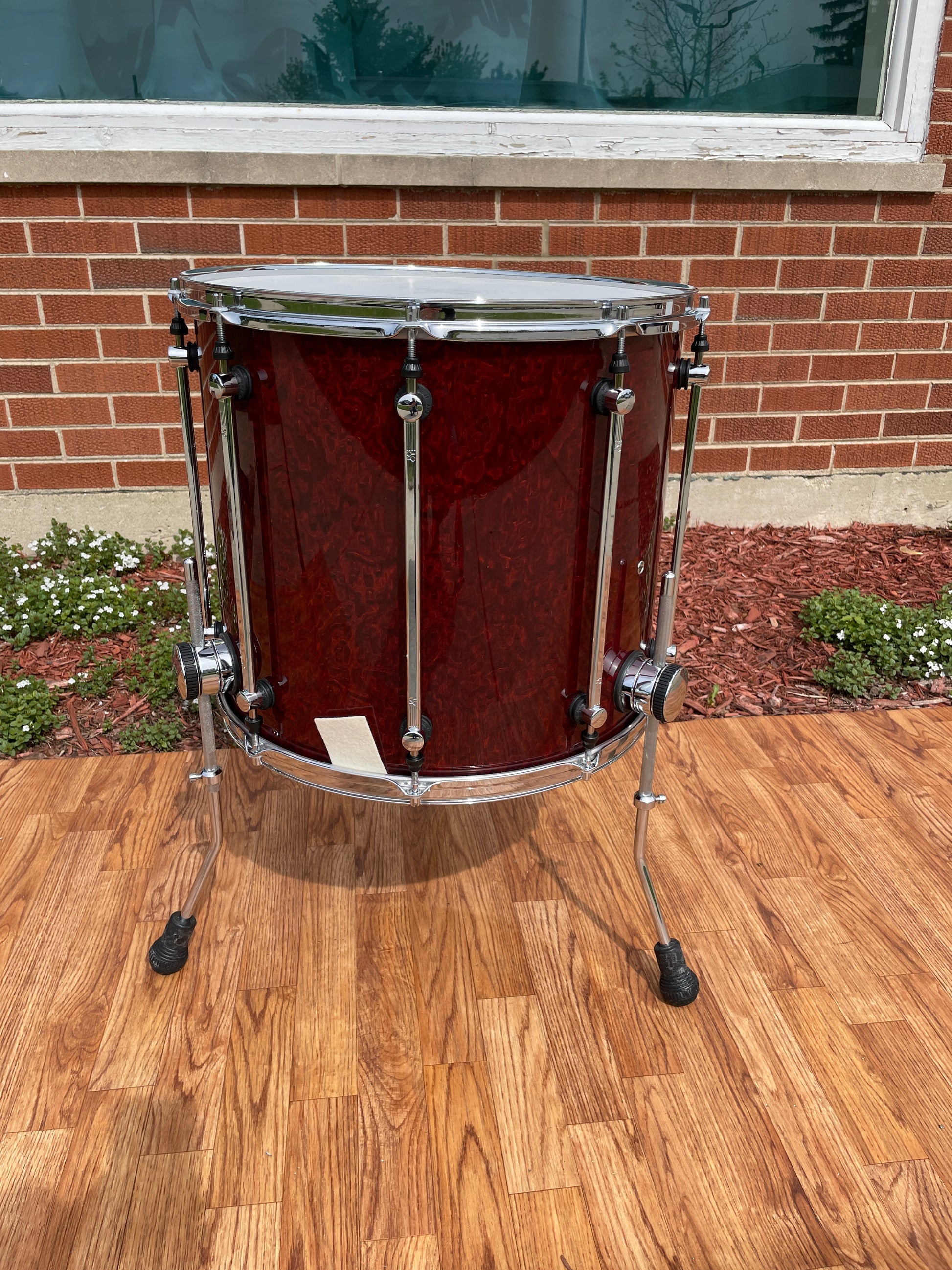 For your kind consideration is this 18" Sonor Designer Series floor tom in Stain Red. It's in nearly new condition, has seen almost no use, and comes with the original box. Bottom head was changed to a bass drum head for a more muffled sound. This tom has been waiting to complete your set. Most importantly, it tunes up with the greatest of ease and sounds fantastic. Enjoy!