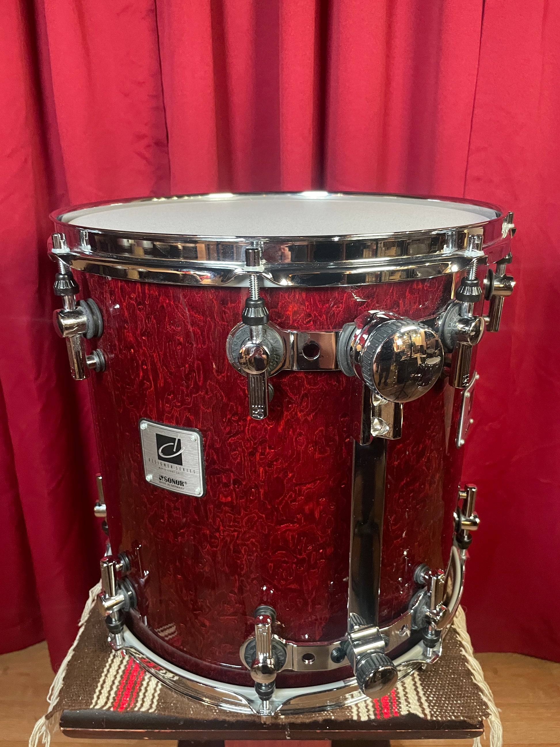 For your kind consideration is this 14" Sonor Designer Series floor tom with an 14" depth in Stain Red. It's in nearly new condition and displays beautifully. All original, including the heads. This tom has been waiting to complete your set. Most importantly it tunes up with the greatest of ease and sounds fantastic. Enjoy!