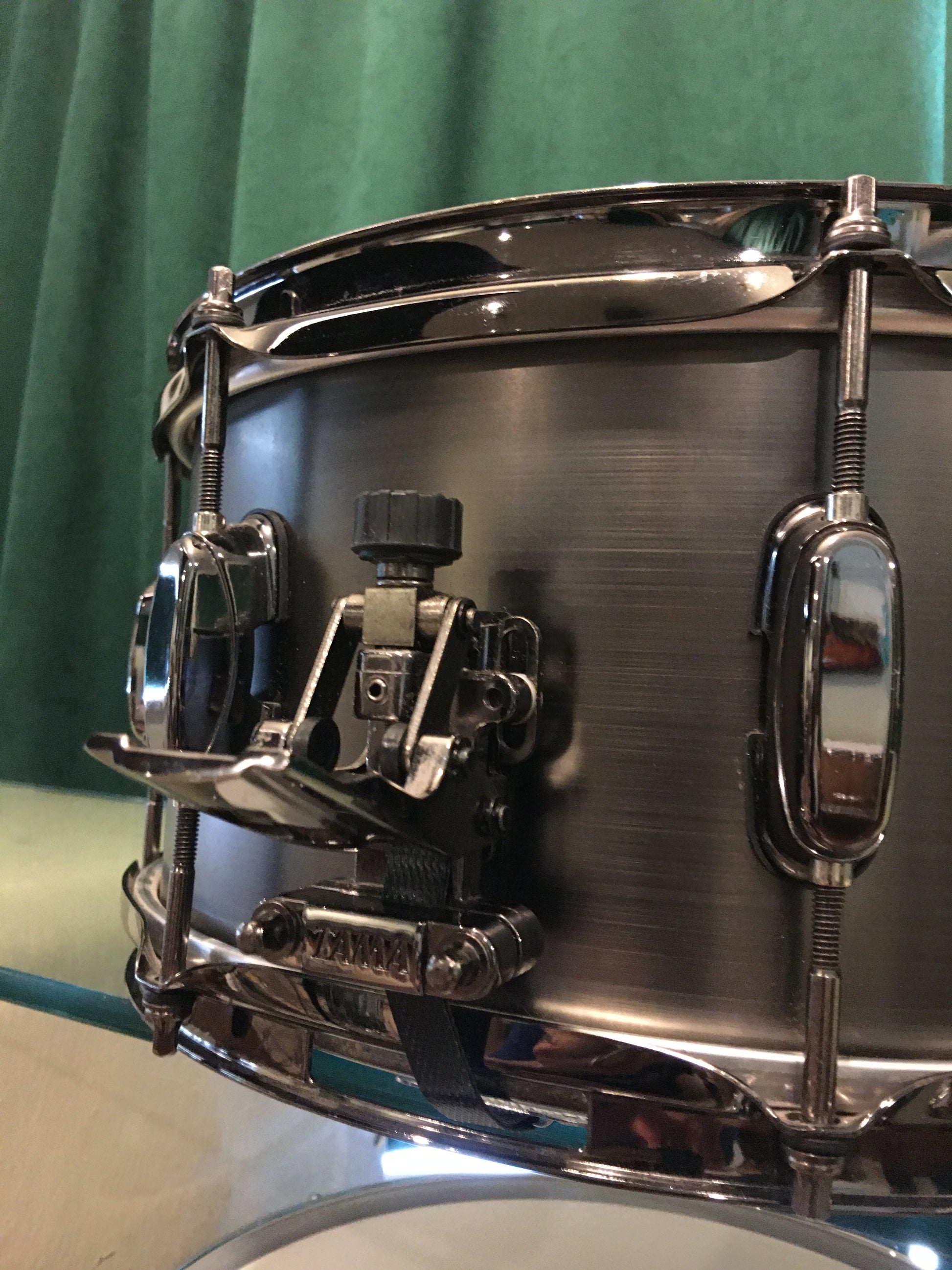 For your viewing pleasure is this clean Tama Metalworks 6.5x13 snare drum in brushed black nickel with gunmetal black hardware. It has seen very light use and is in great shape. There is some normal wear to the black nickel plating on the hoops. Comes with original high quality Tama Starclassic wires, original Tama Evans Hazy 300 snare side head, and newer Remo coated Ambassador batter side head that has tons of life left. It sounds great and really cuts through in a mix. Ready to play right out of the box. Enjoy!
