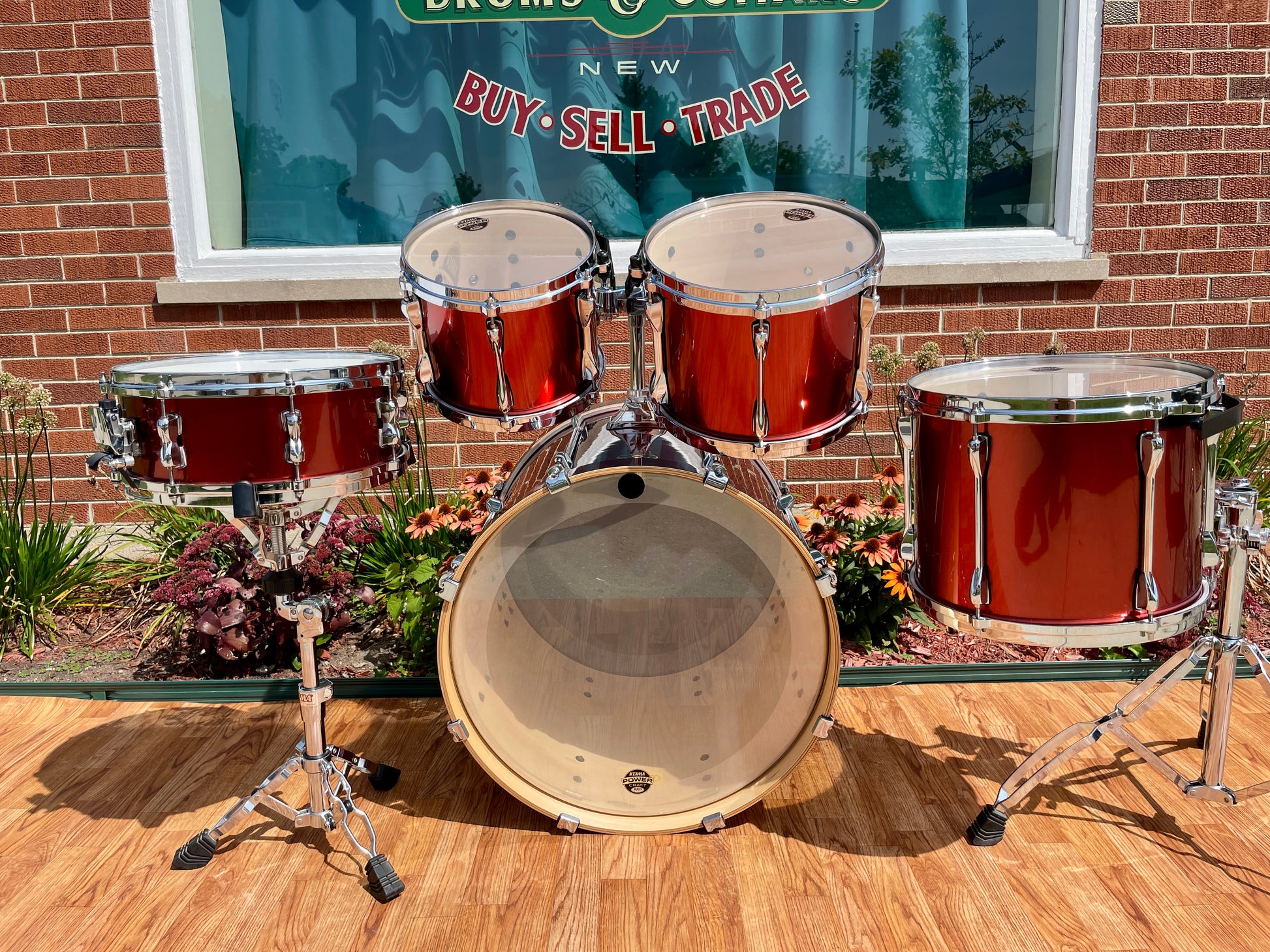 For your kind consideration is this Tama Superstar SK52F drum set in Copper Mist Metallic finish from 2007. This well taken care of set is in beautiful condition with only very light wear. All original down to the Power Craft heads and snare wires. These Superstar drums feature 6-ply 6mm Birch/Basswood shells on the toms and snare and 7-ply 7mm on the bass drum. The birch inner plies offer strong projection and an aggressive open sound. The basswood inner ply and bearing edges bring out the great response and powerful resonance of the shells. They also feature the same Star-Cast mounting system and zinc die cast hoops found on Starclassic drums of the era along with the Superstar Sound Bridge high tension, low mass lugs. The original MTH90DAS tom adapter and MC61 multi-clamp are including for mounting the hanging floor tom and the MTH900M tom holder is included for the bass drum tom mount. This is a phenomenal sounding set that tunes up with the greatest of ease. Also included at this price is the original HR5WN Roadpro hardware pack which includes a HS70WN snare stand, HC72WN straight cymbal stand, HC73BWN boom cymbal stand, HH75W hi-hat stand, and an HP200 bass drum pedal. Add a throne, sticks, and cymbals and you've got everything you need to start playing today. Enjoy!