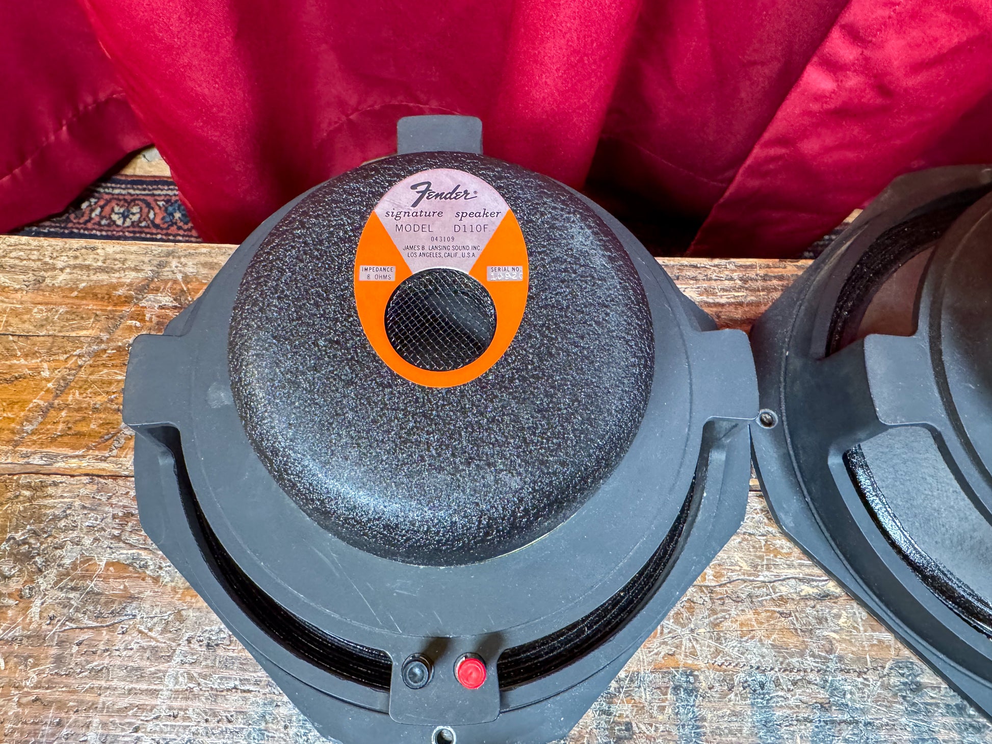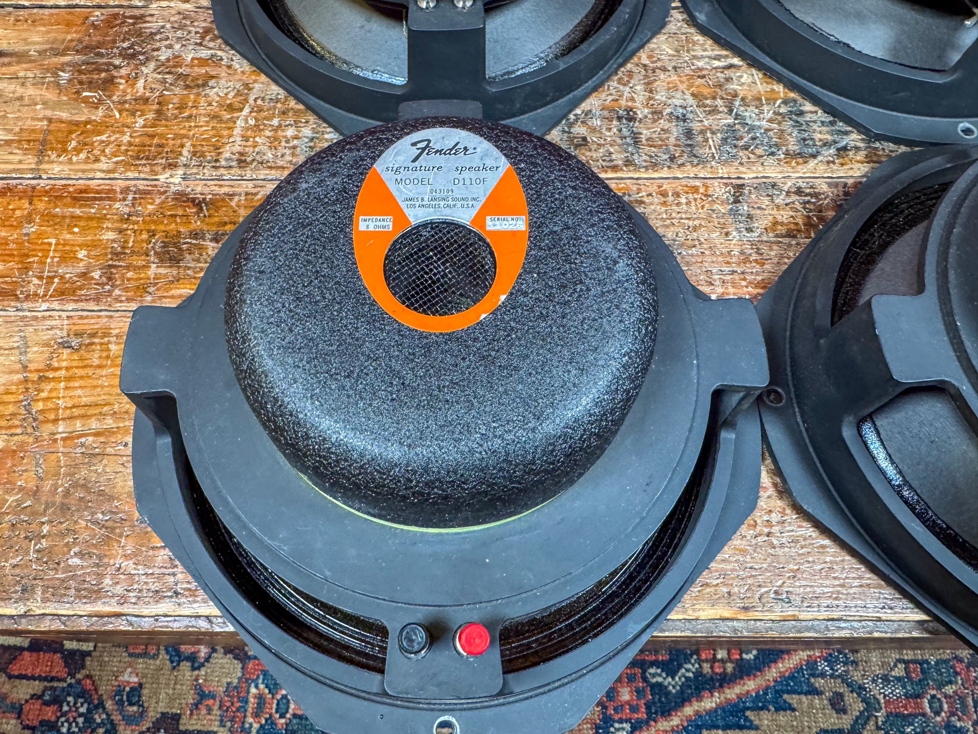 For your kind consideration is this vintage quad of 10" JBL Fender branded D110F speakers. These speakers will be right at home in your Fender Super Reverb, Princeton, or Champion, and are coveted for their brightness and clarity when playing with clean tone.