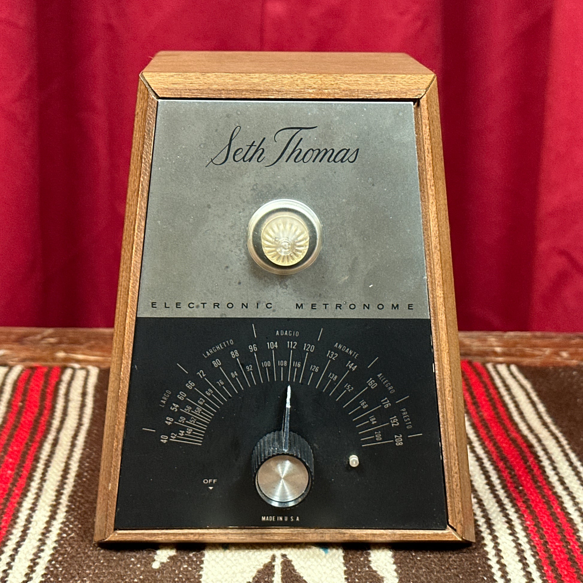 For your kind consideration is this vintage Seth Thomas model E962-000 electronic metronome. It's been tested and works without issue. Original power cord and tube. The range is 40 to 208 bpm. Enjoy!