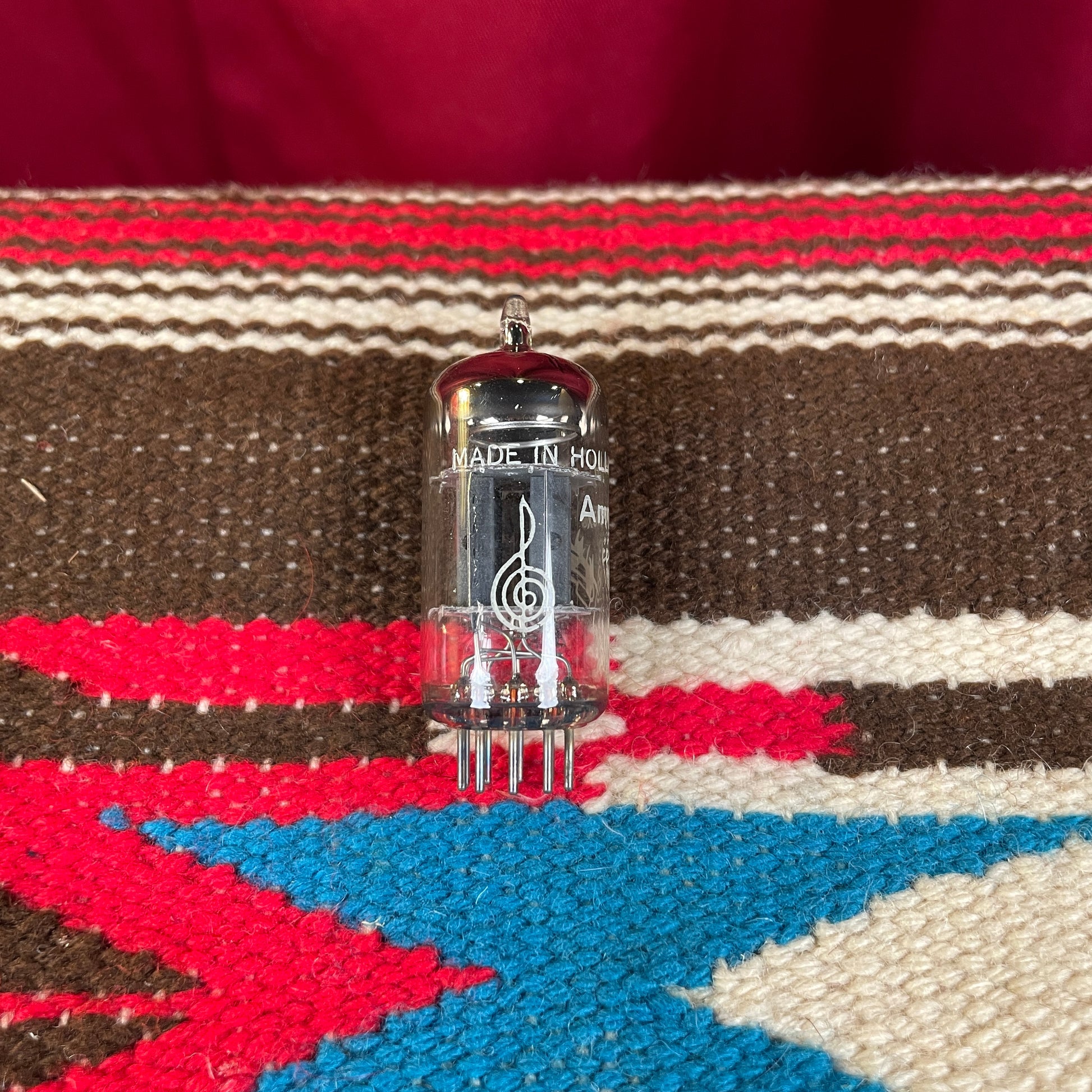 For your kind consideration is this vintage Amperex Bugle Boy 7025 (12AX7, ECC83) preamp tube made in Holland. It has the grey ladder plates, halo getter, strong ink, and the pins are in good condition. The codes read I65 and Δ1K3 and another code that reads 203. Enjoy!