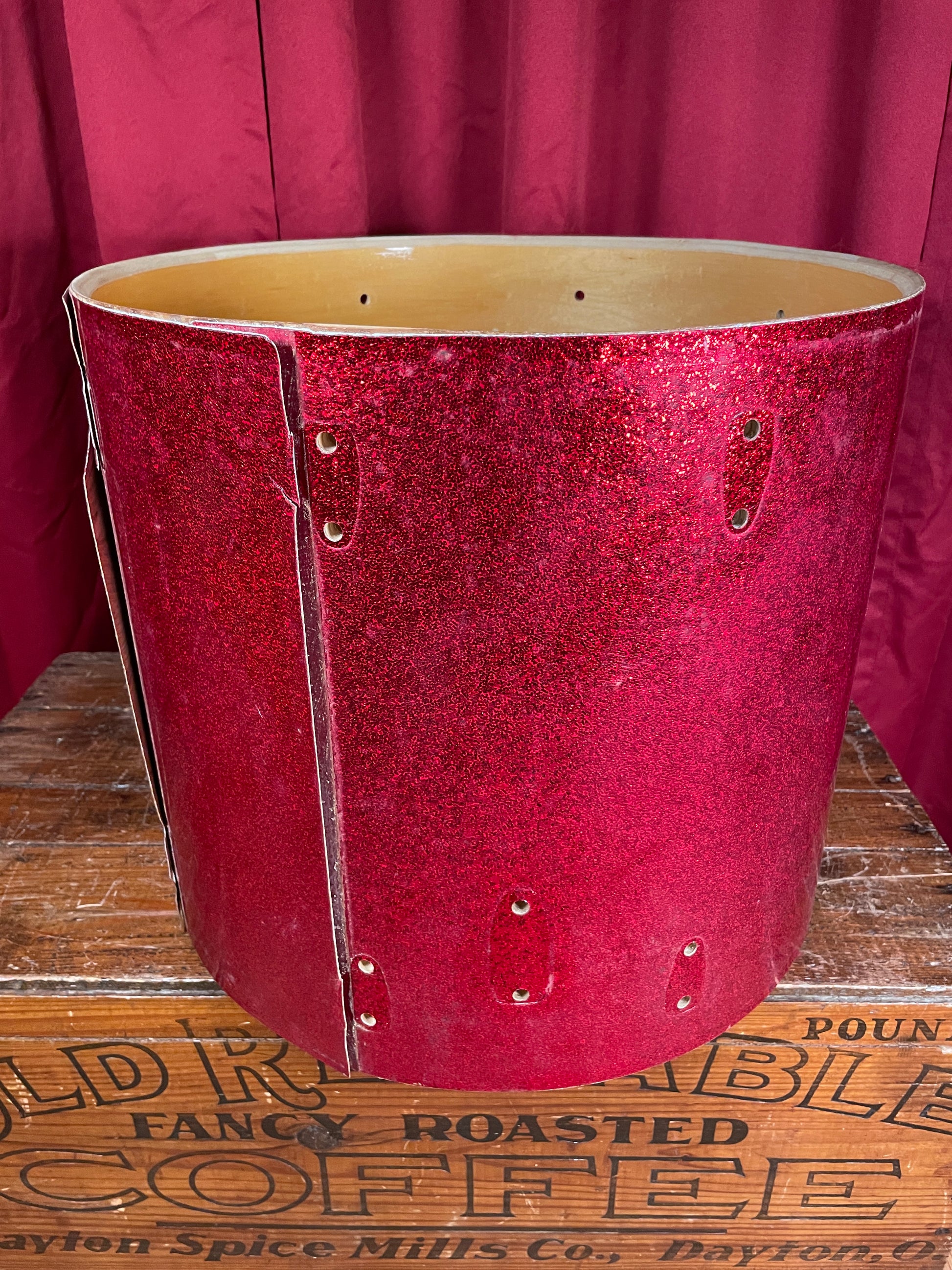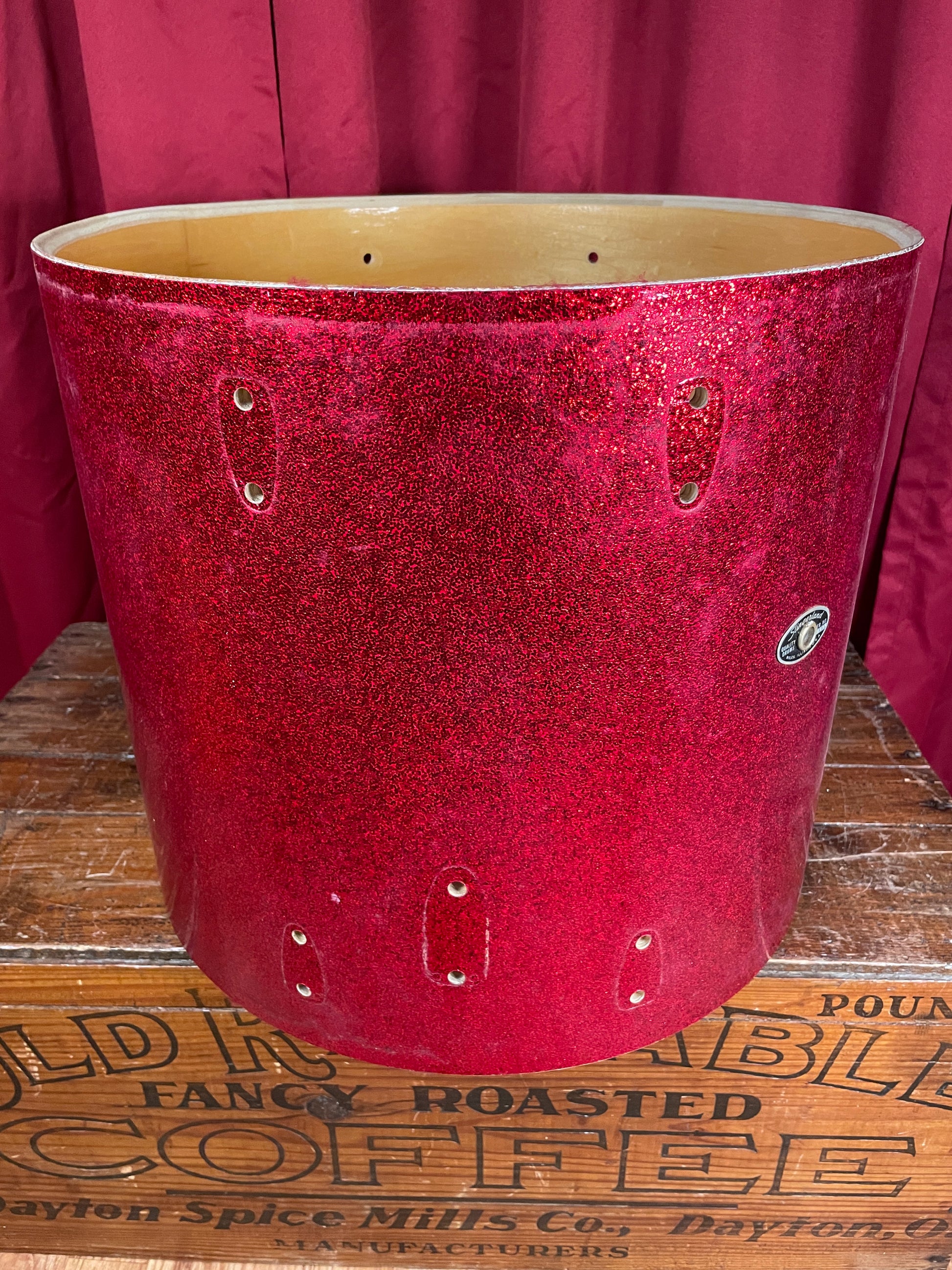 1970s Slingerland 16x18 Floor Tom Drum Shell Red Sparkle 5-Ply