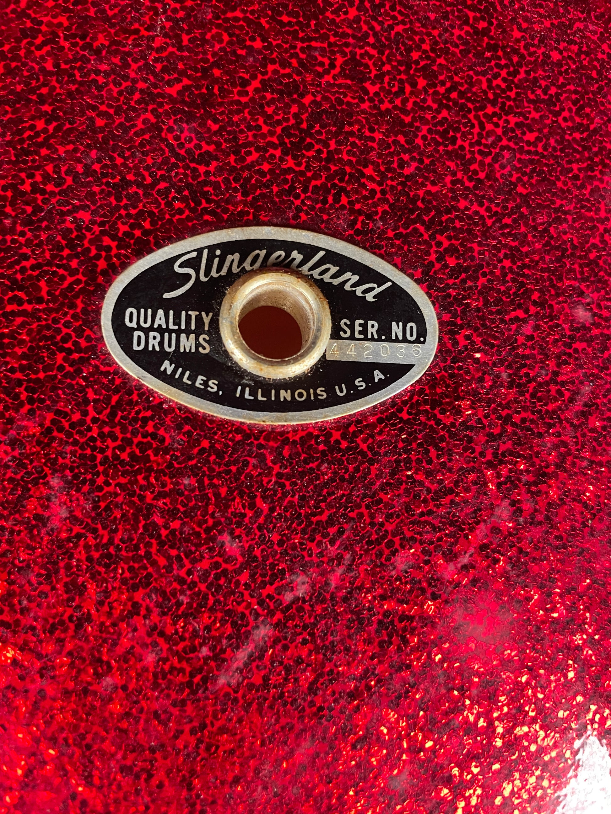 For your kind consideration is this vintage Slingerland 16x18 floor tom drum shell. This 18" diameter 5-ply shell is in great condition with a lovely clear interior. The edges are in good condition and modern heads fit well as shown in the photos. The red sparkle wrap will either need to have the seams glued or this shell could be rewrapped to match the rest of your 70s Slingerland drum project. Enjoy!