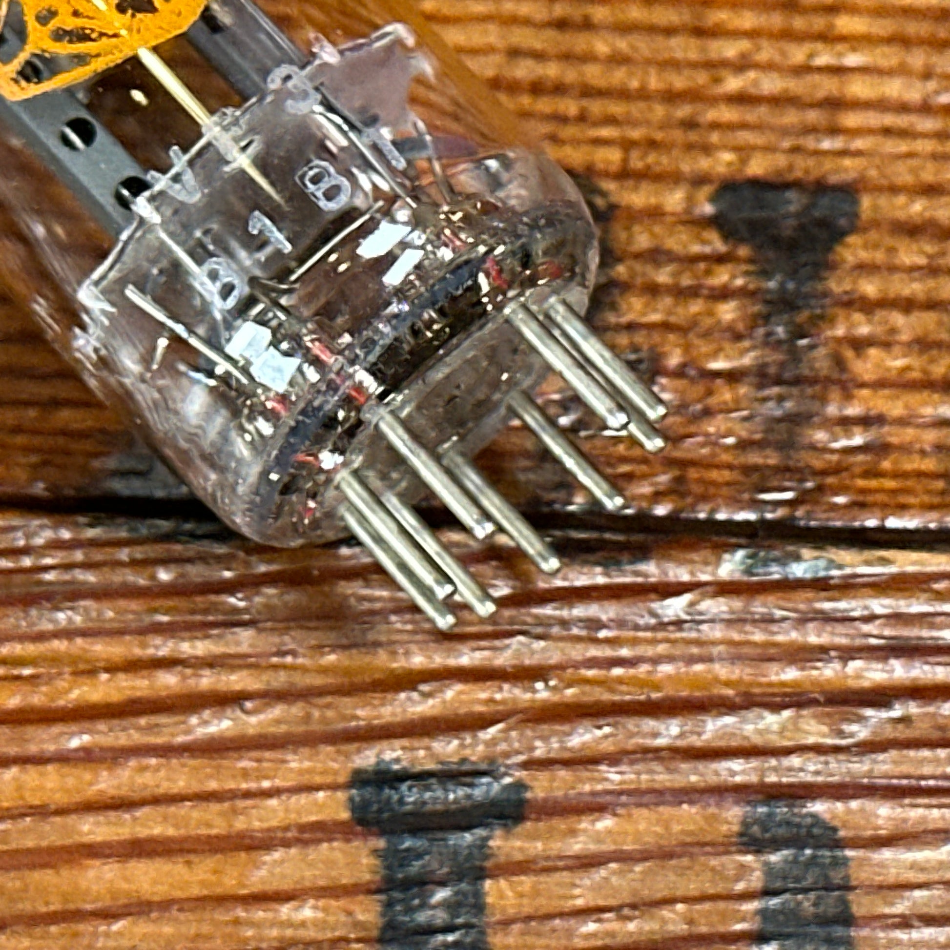 For your kind consideration is this vintage Amperex 12AT7 preamp tube. It has the orange ink and globe logo with a code of VF3 B1B1, being made at the Mullard Blackburn factory in England. Tests NOS and both sides are balanced. Enjoy!