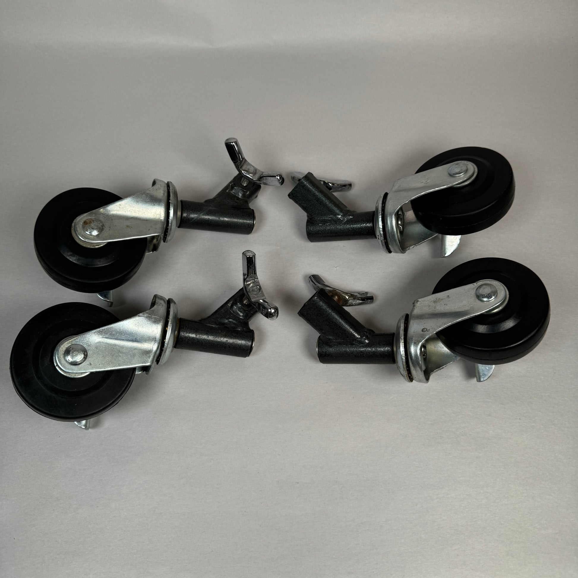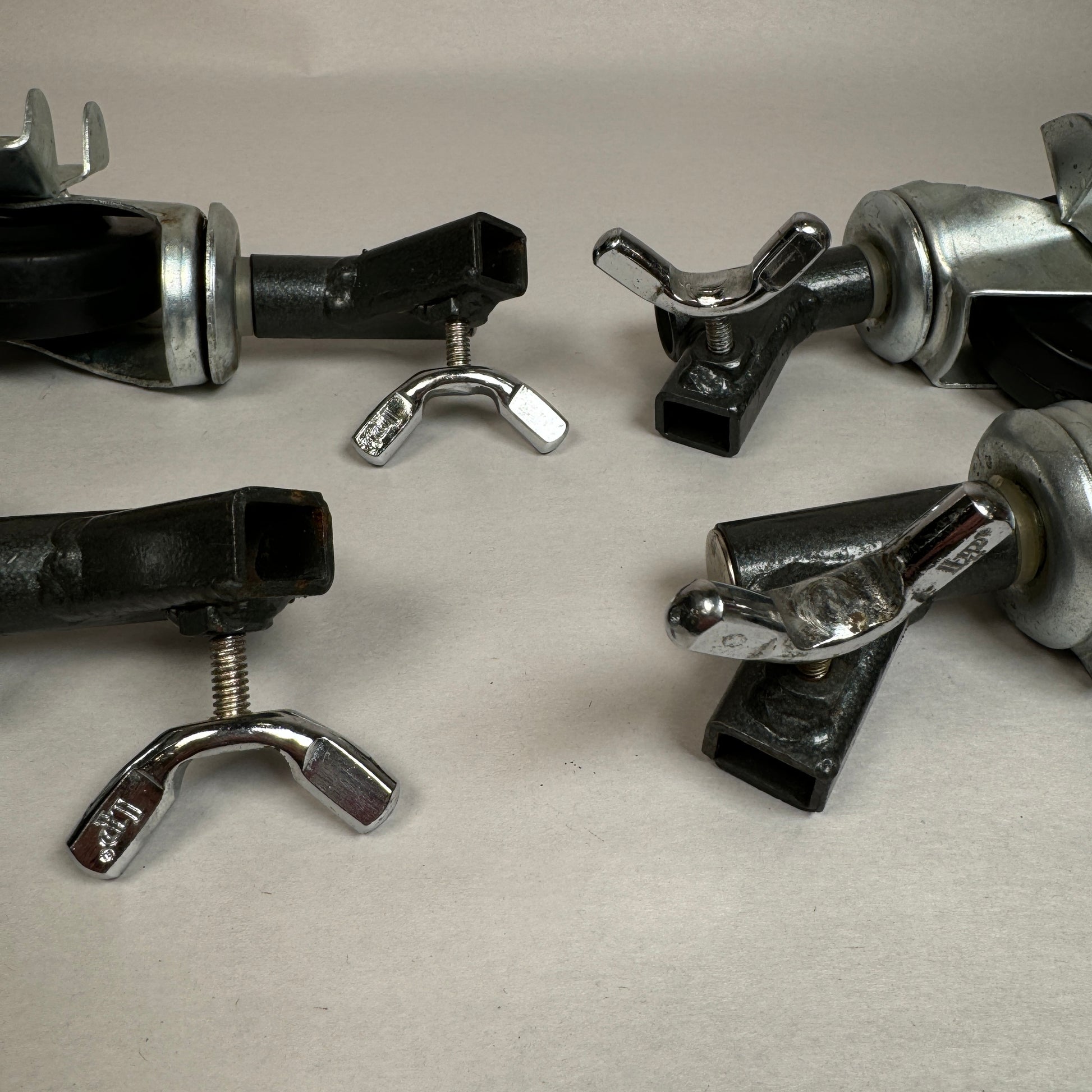 For your kind consideration is this set of 4 LP Percussion Table Casters. They're in great working condition with light signs of age. These heavy duty wheels are designed to enhance the mobility of your LP760A Percussion Workstation. They have 360-degree rotation that enables smooth, flexible movement and a brake mechanism to lock your table in place when you're ready. Why pay $179 for a brand new chrome set, when you can get these used ones at a fraction of the price. Only need one of these as a replacement? See our other listing to buy a single caster. Enjoy!